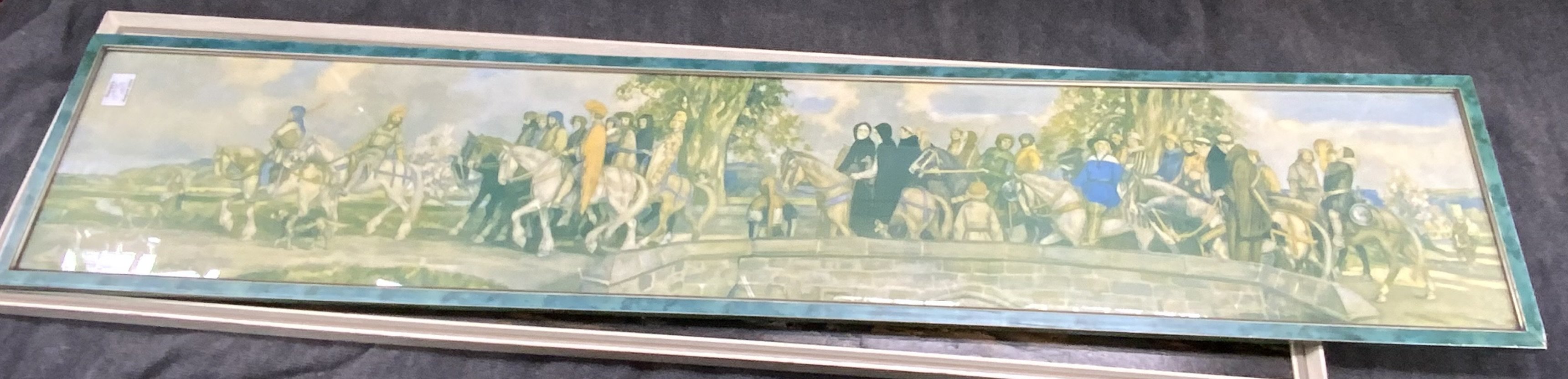 A framed Oil painting of London by Edward Elliott together with a framed print of Canterbury Pilgrims by Stephen Reid. (D)