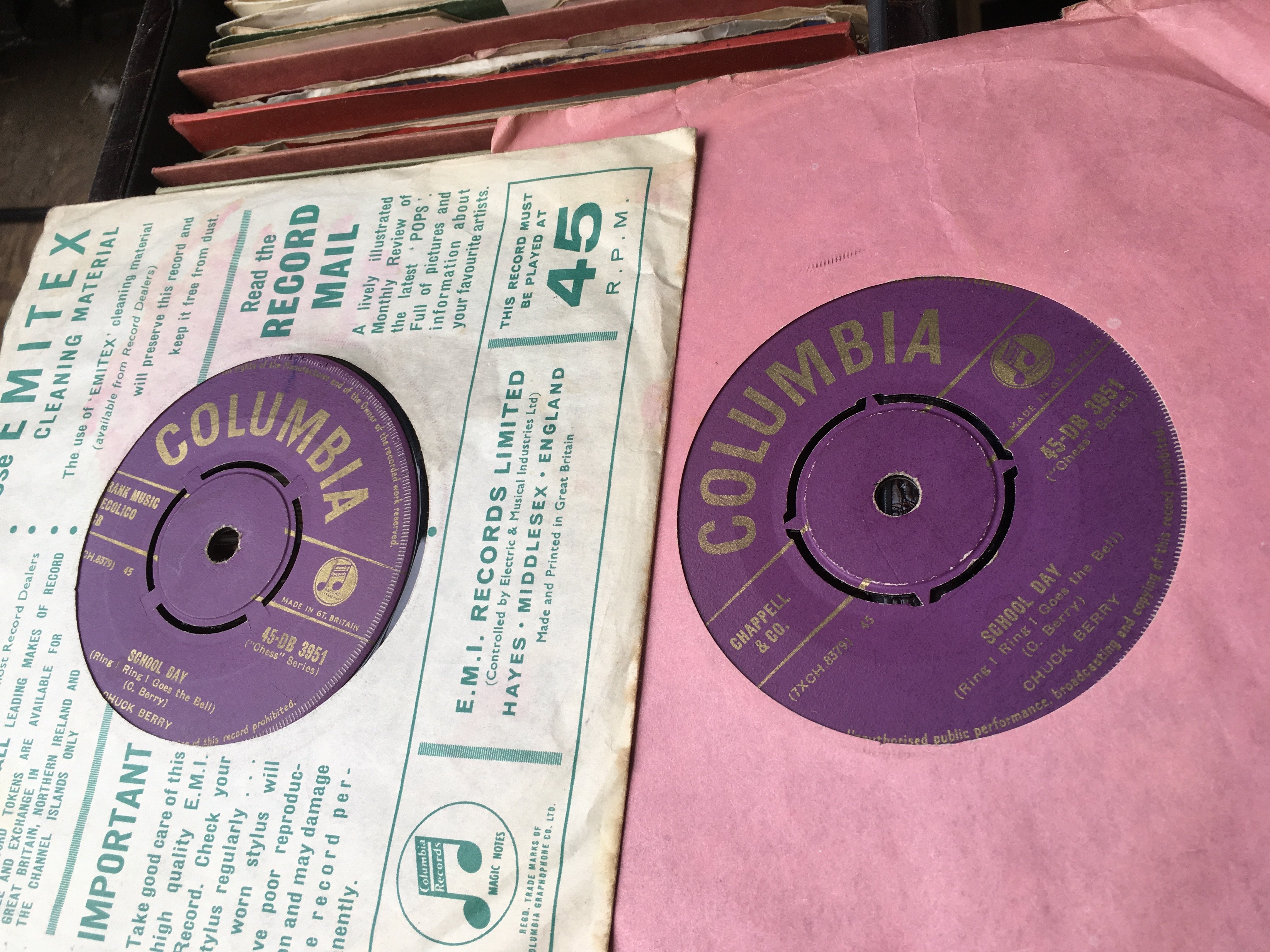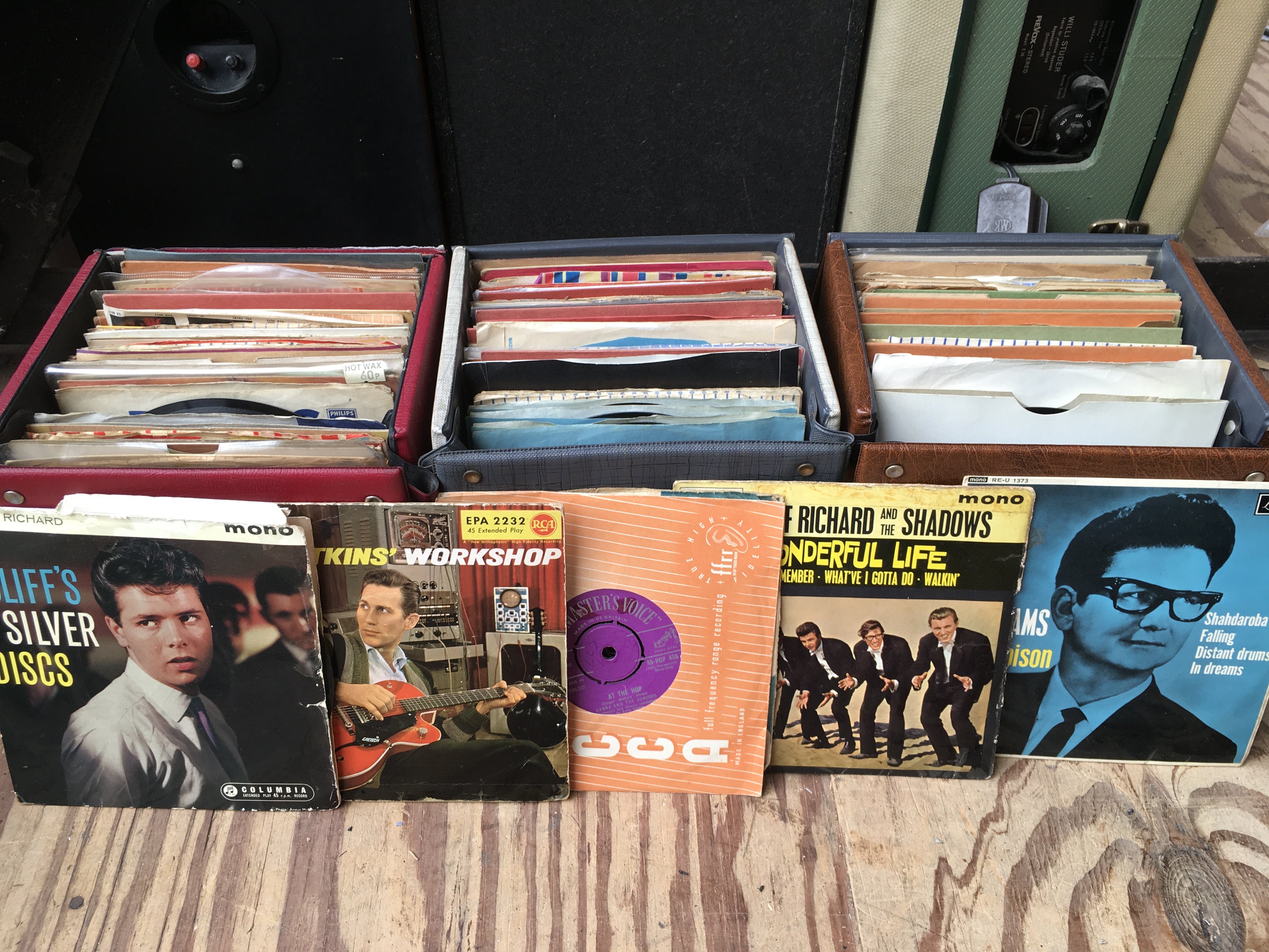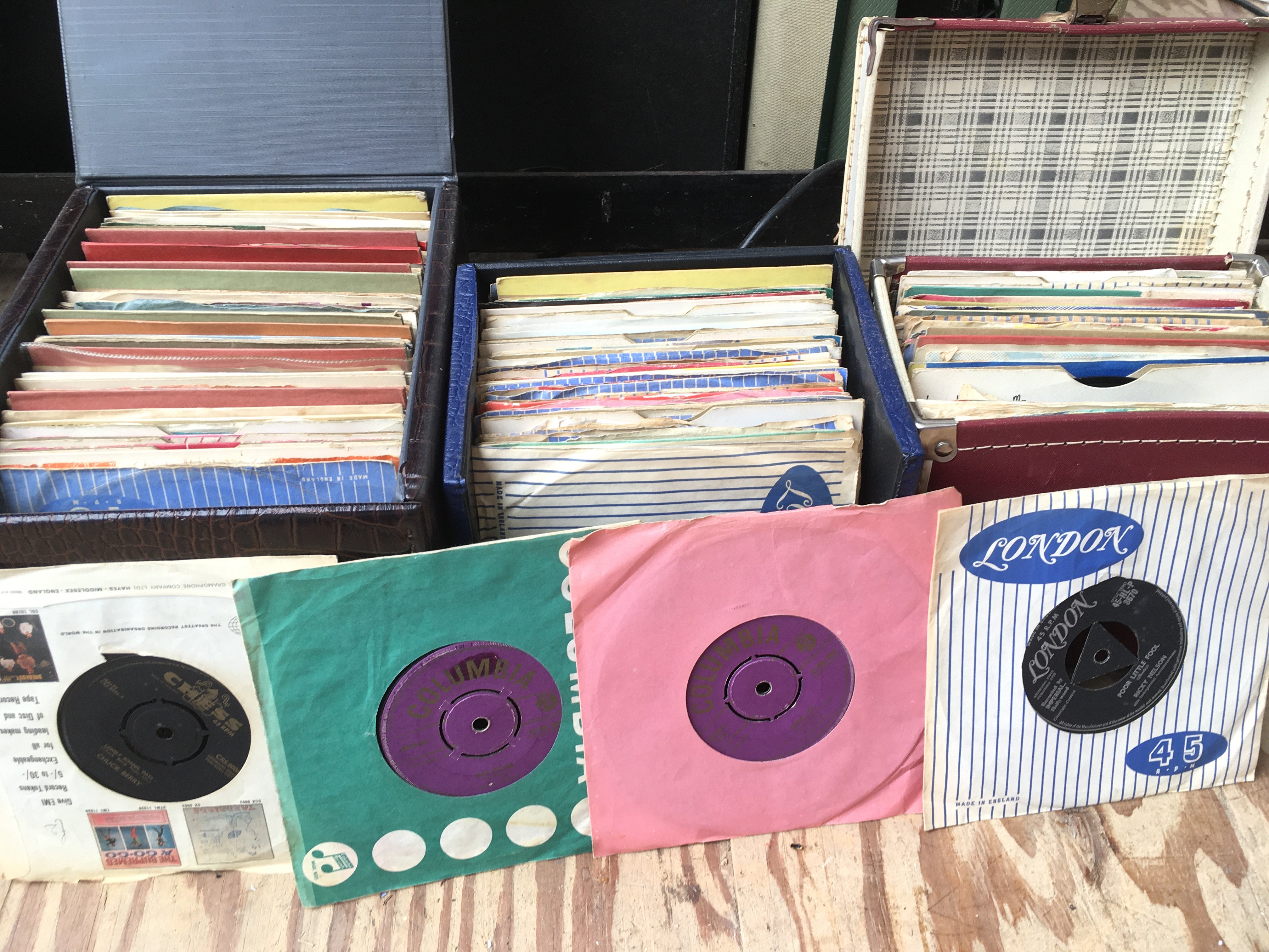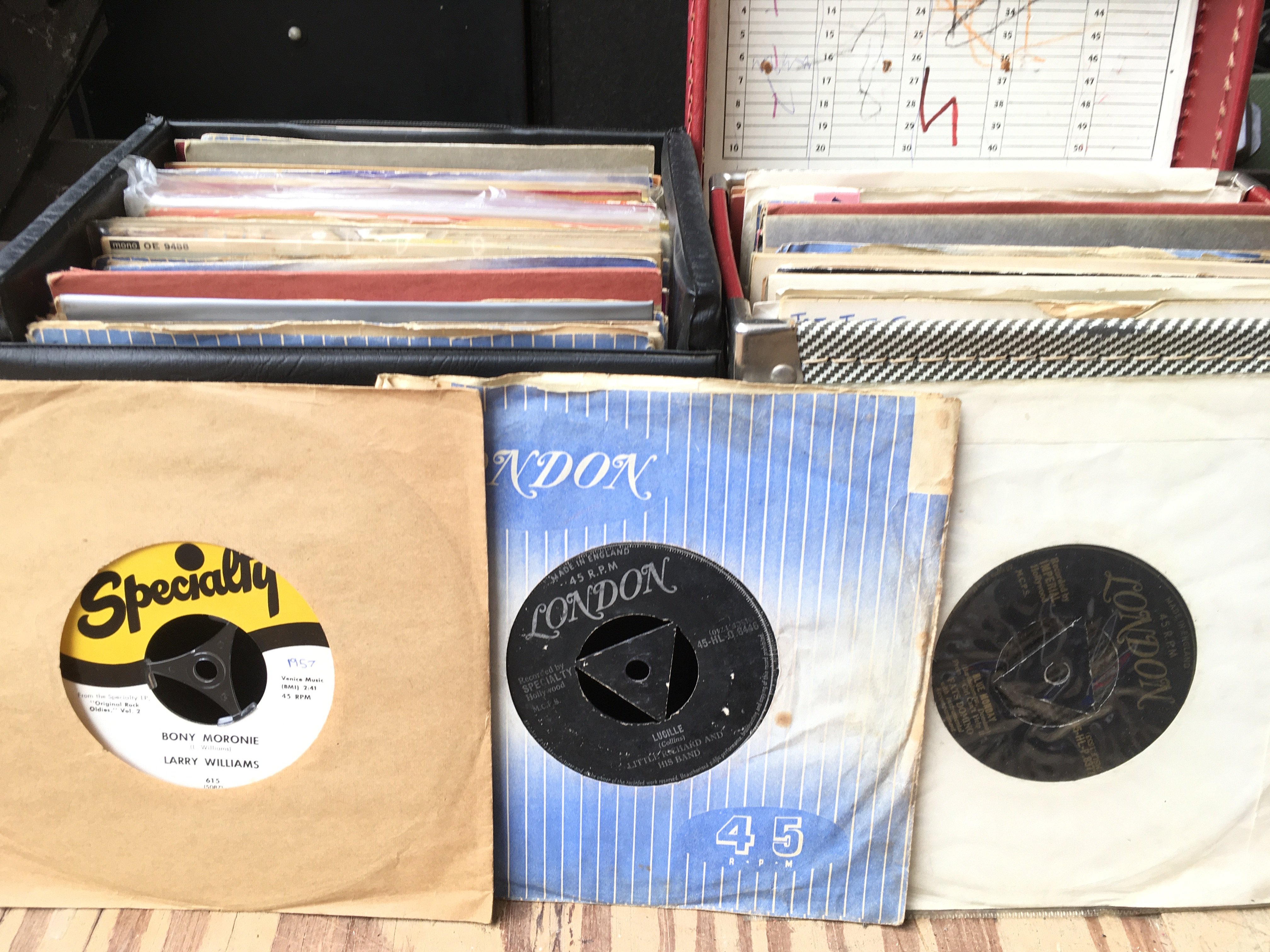 Eight record cases of rock n roll, rockabilly, soul and Western Swing 7" singles and EPs.