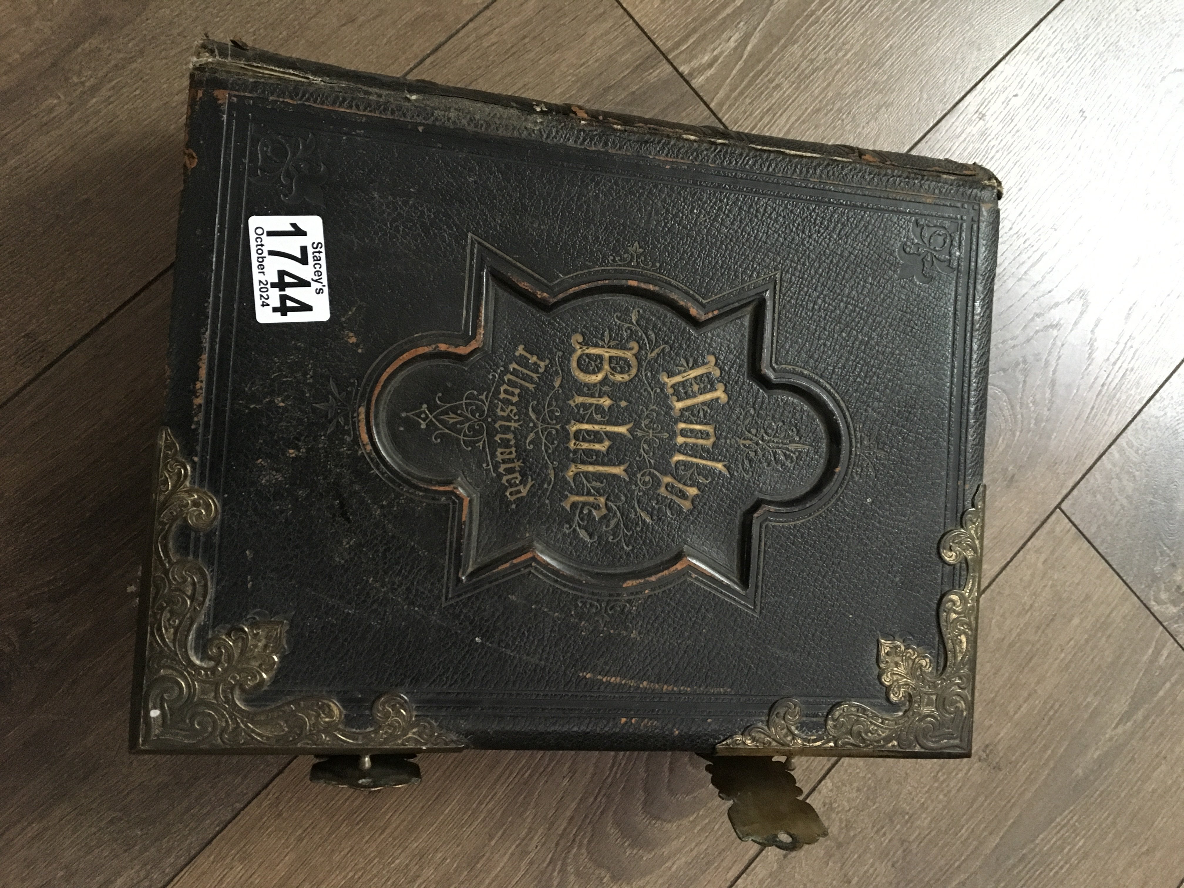 A leather and brass bound Bible