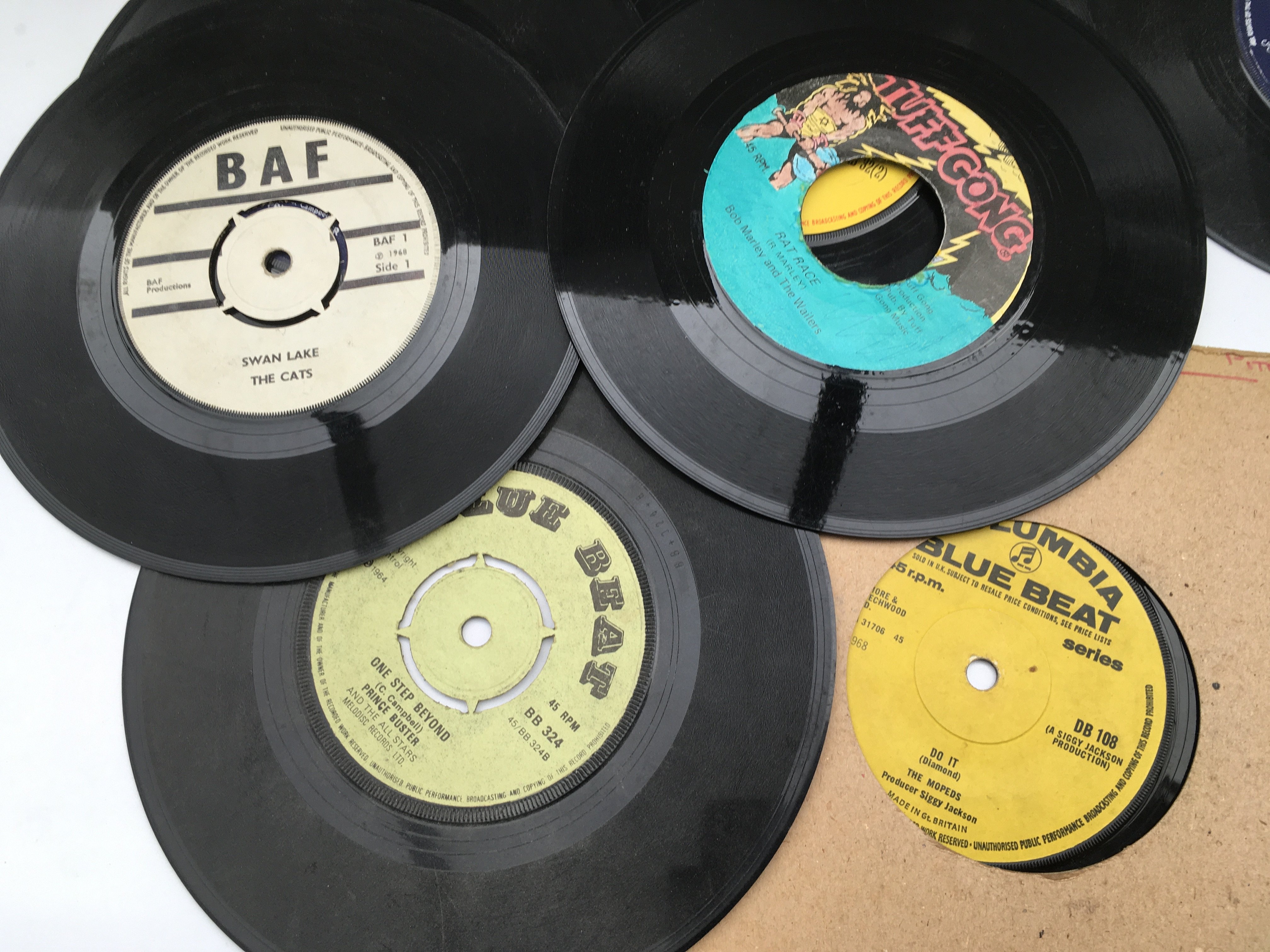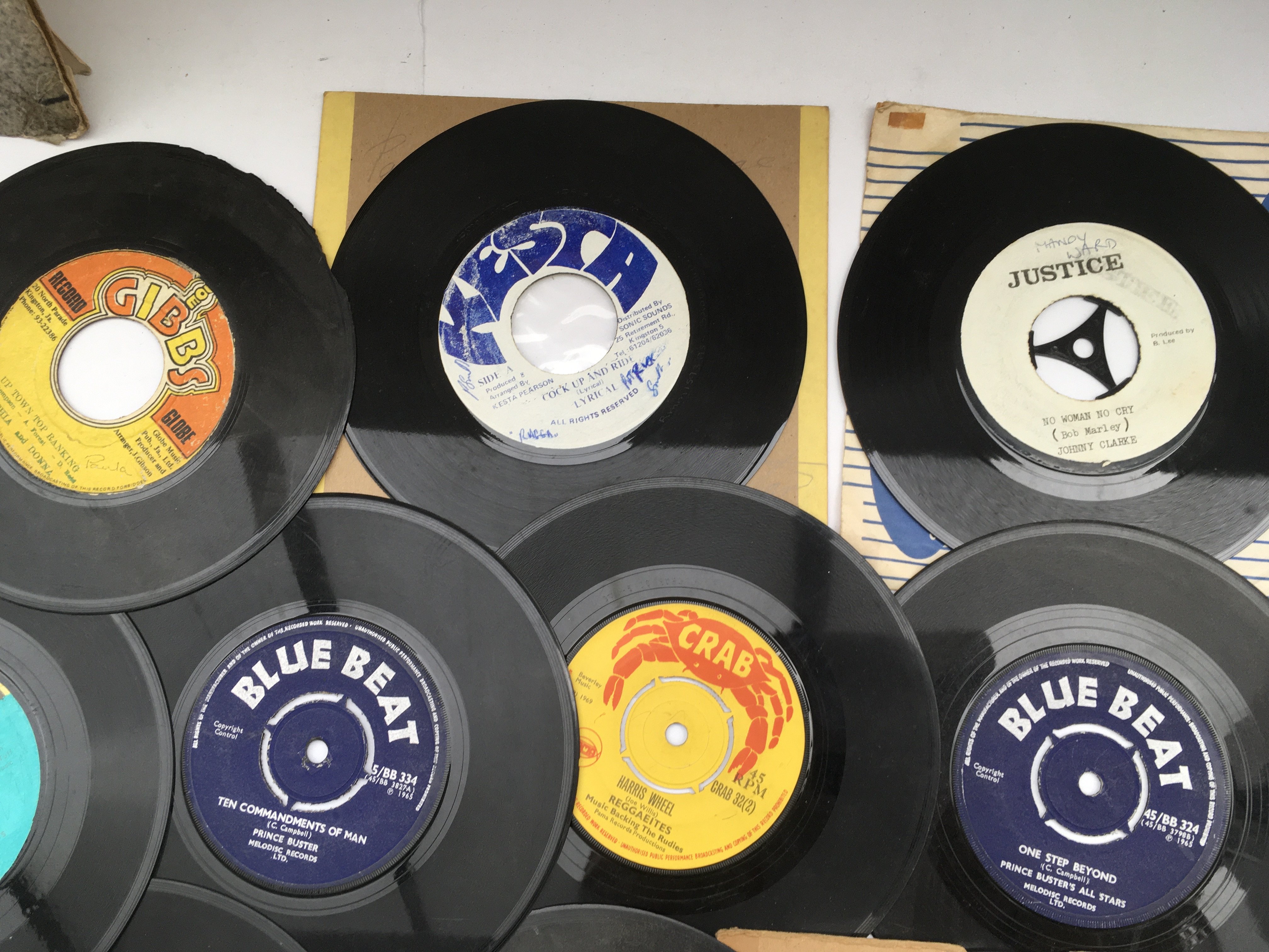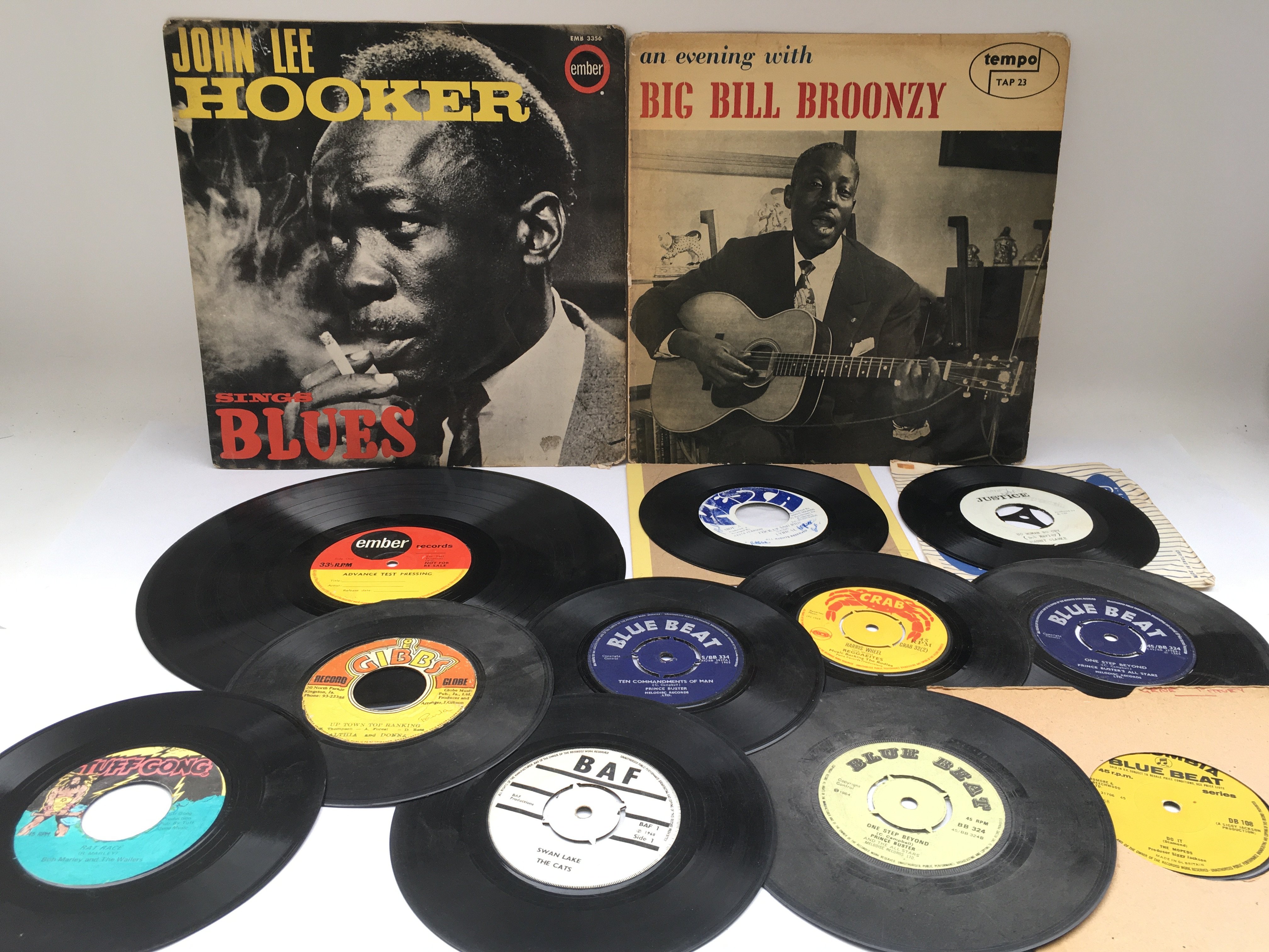 A John Lee Hooker 'Sings Blues' LP test pressing, a Big Bill Broonzy LP and some Jamaican pressings of reggae and ska 7" singles by various artists including Bob Marley, Prince Buster and others.