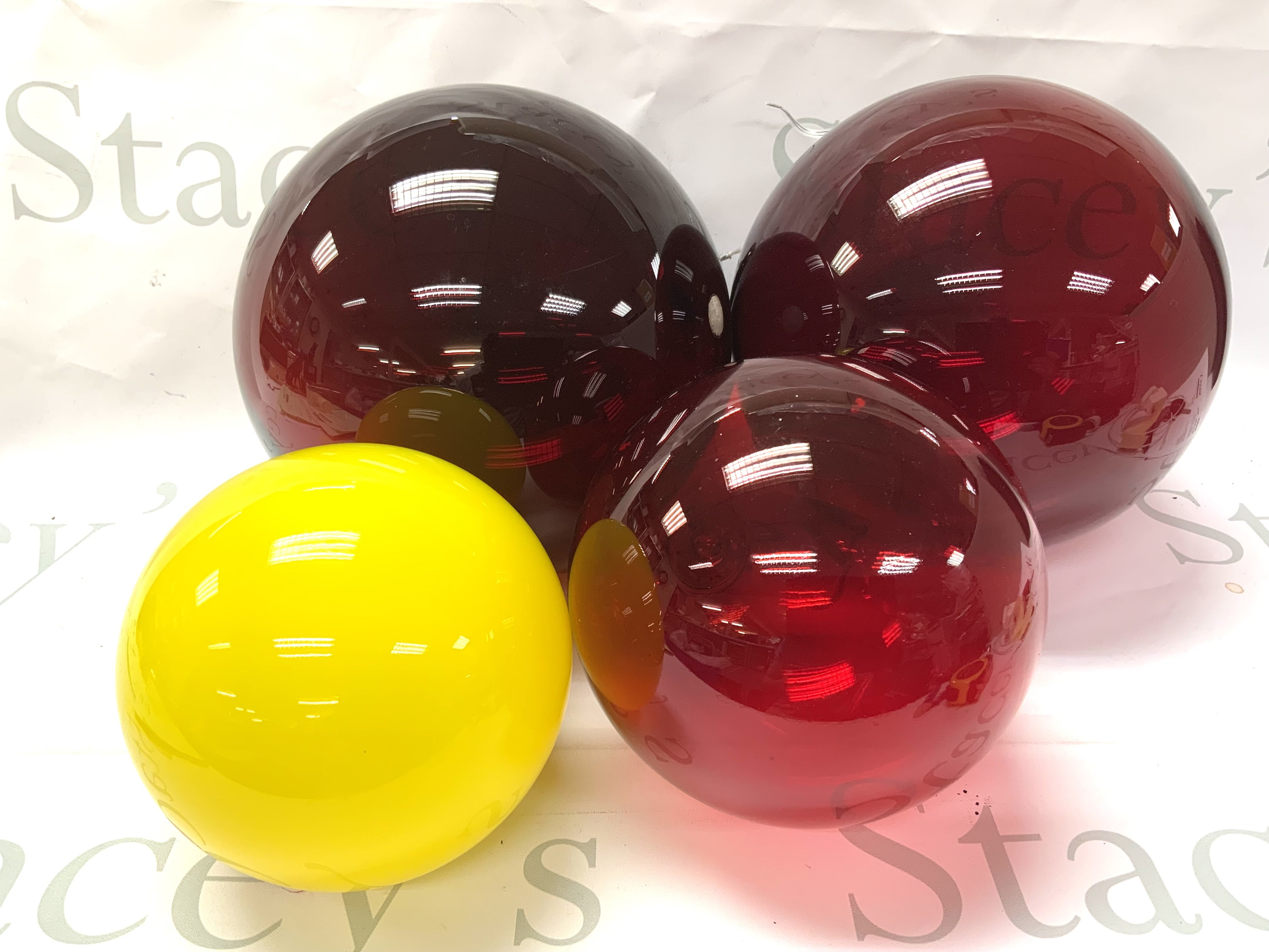 4 1970s hand blown glass balls 20cm/14cm/12cm diameter (possibly Holmguard bottle stoppers for Otto Brauer).
