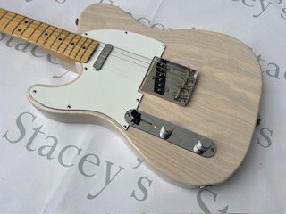 A 2004 Fender Japan Left Handed Telecaster electric guitar in excellent unplayed condition. This guitar comes with a maple neck and is finished in translucent US Blonde (Paint reference 67) which is a Fender Japan only finish. It comes with Fender Noiseless Pickups and all original parts. In near-mint condition with no real evidence of significant play-wear. No visible markings g or damage of any kind or tarnishing to brightwork. Comes with non original tweed case