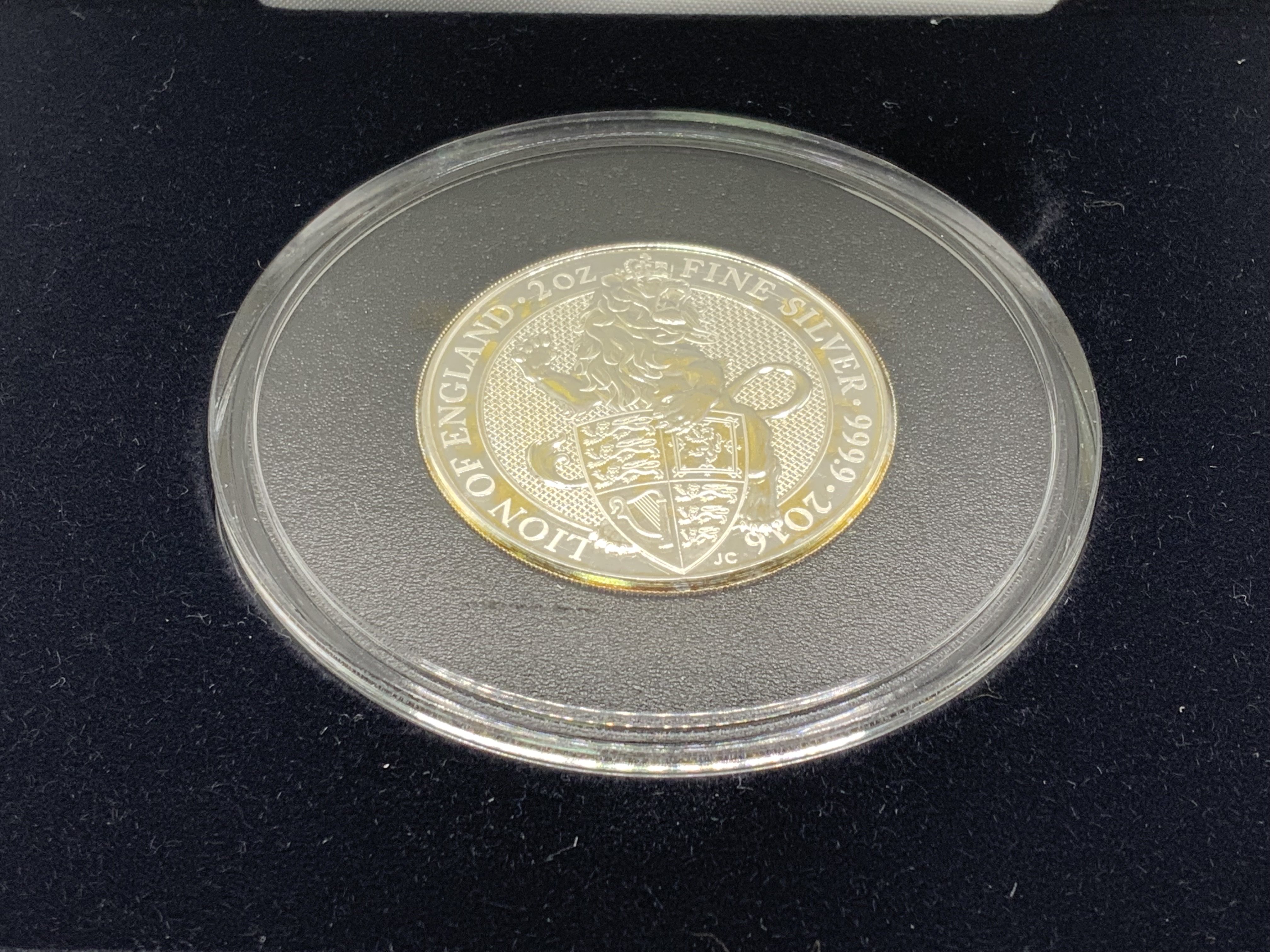 A 2016 Lion of England Queens Beast silver 2 ounce coin. (A)