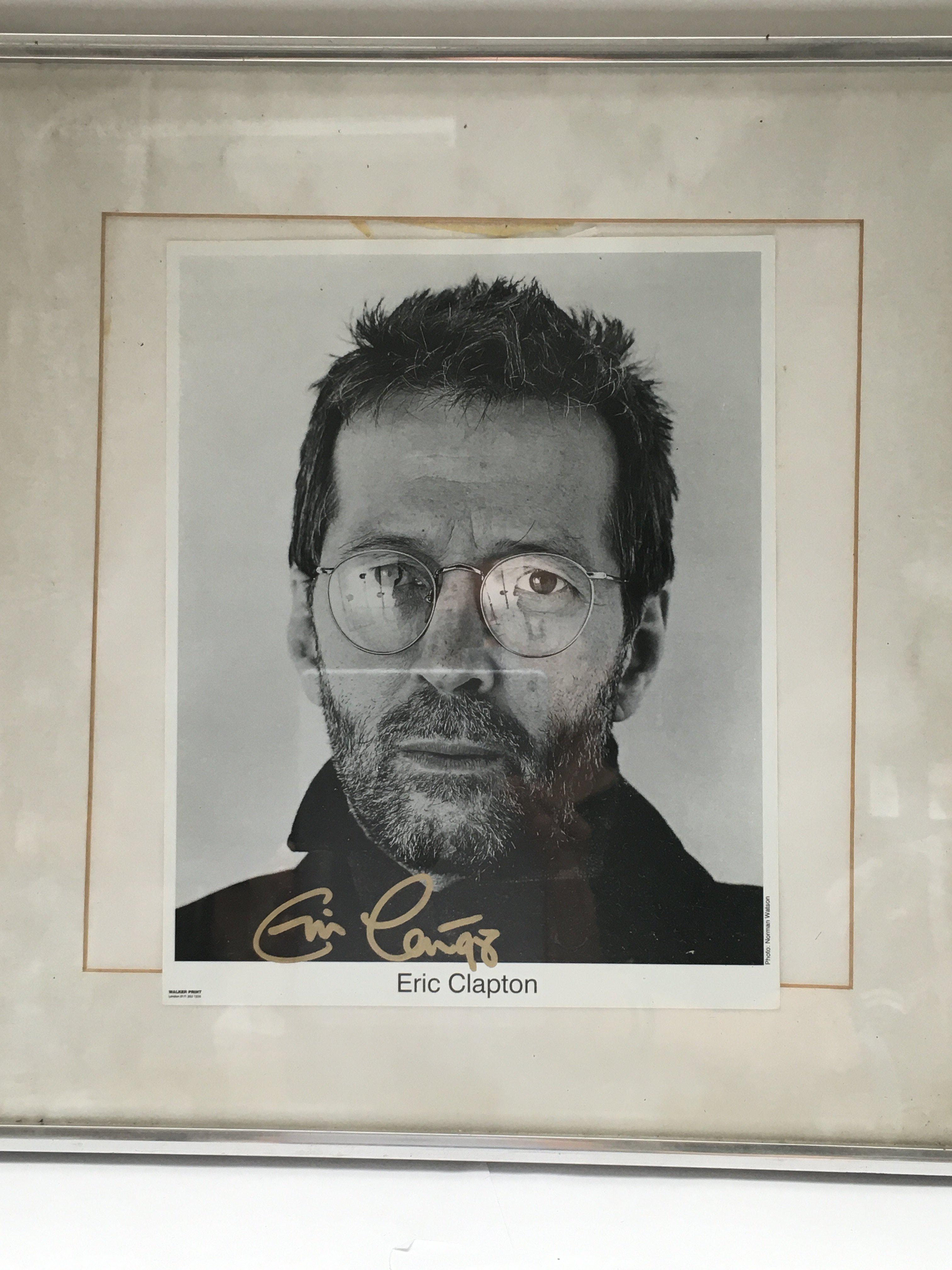 A signed Eric Clapton publicity print, no COA. Please note that buyers must satisfy themselves as to the authenticity of any signed items before bidding as we are not experts in this field and will not be held responsible should they prove to be anything other than genuine.