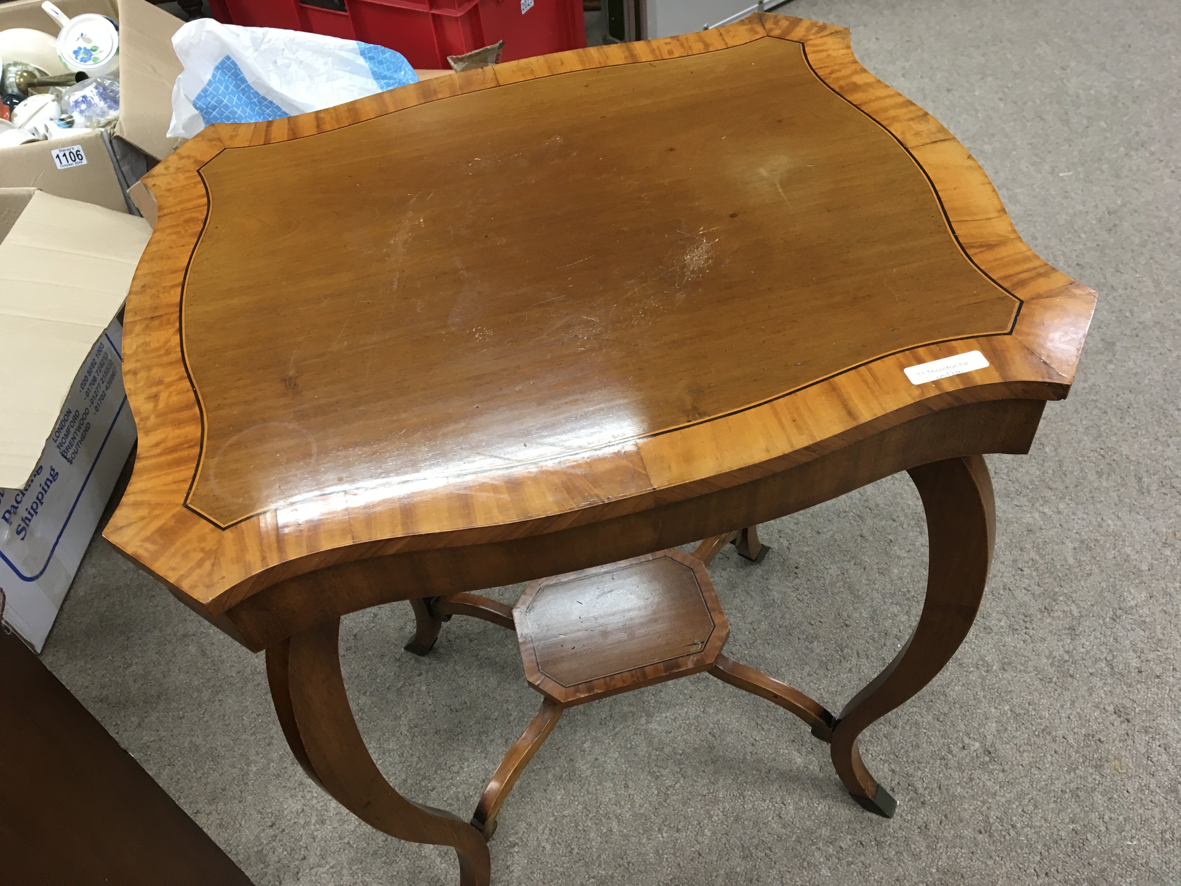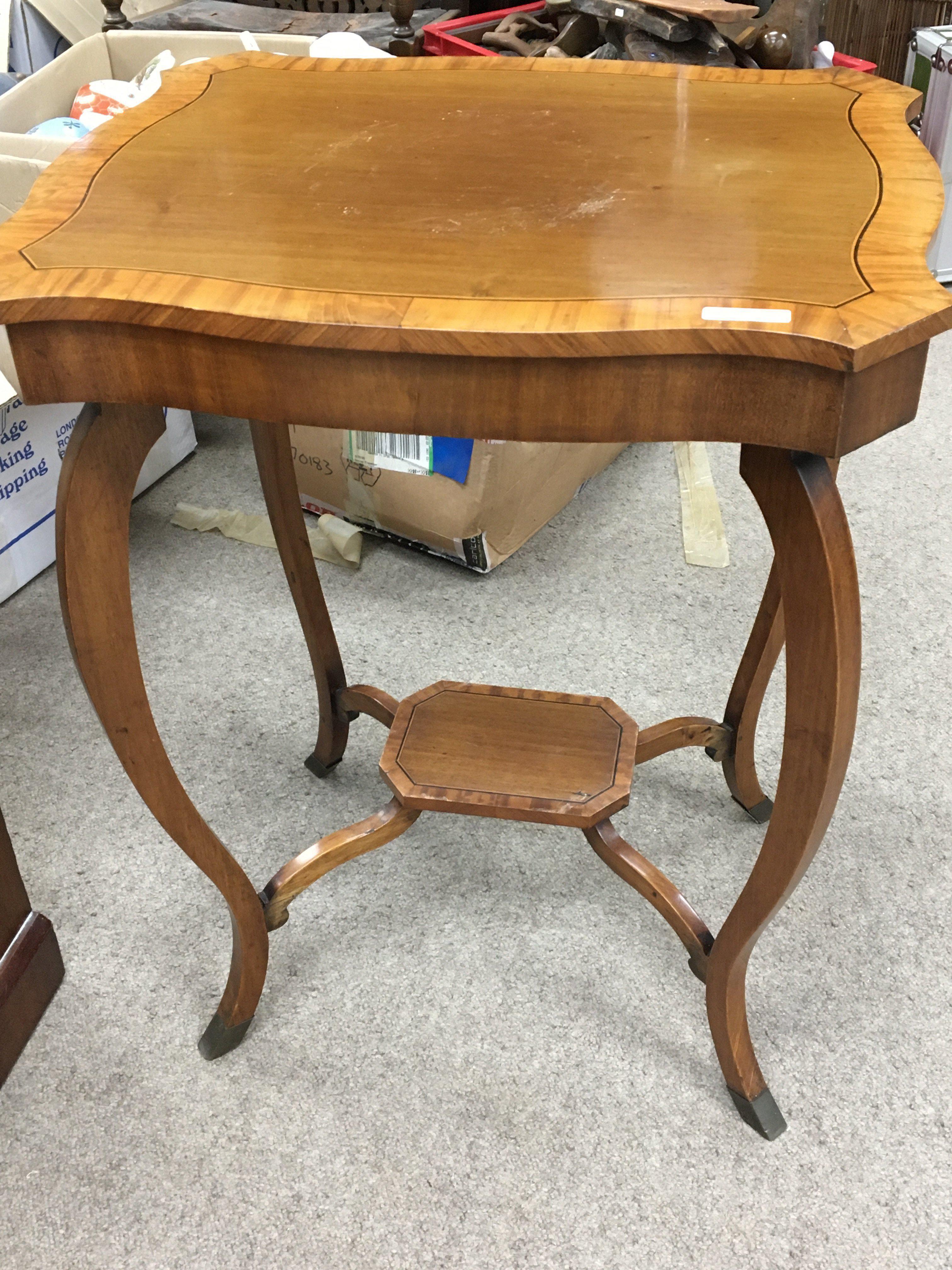 An Edwardian occasional table the shaped top with a cross banded edge on shaped legs.