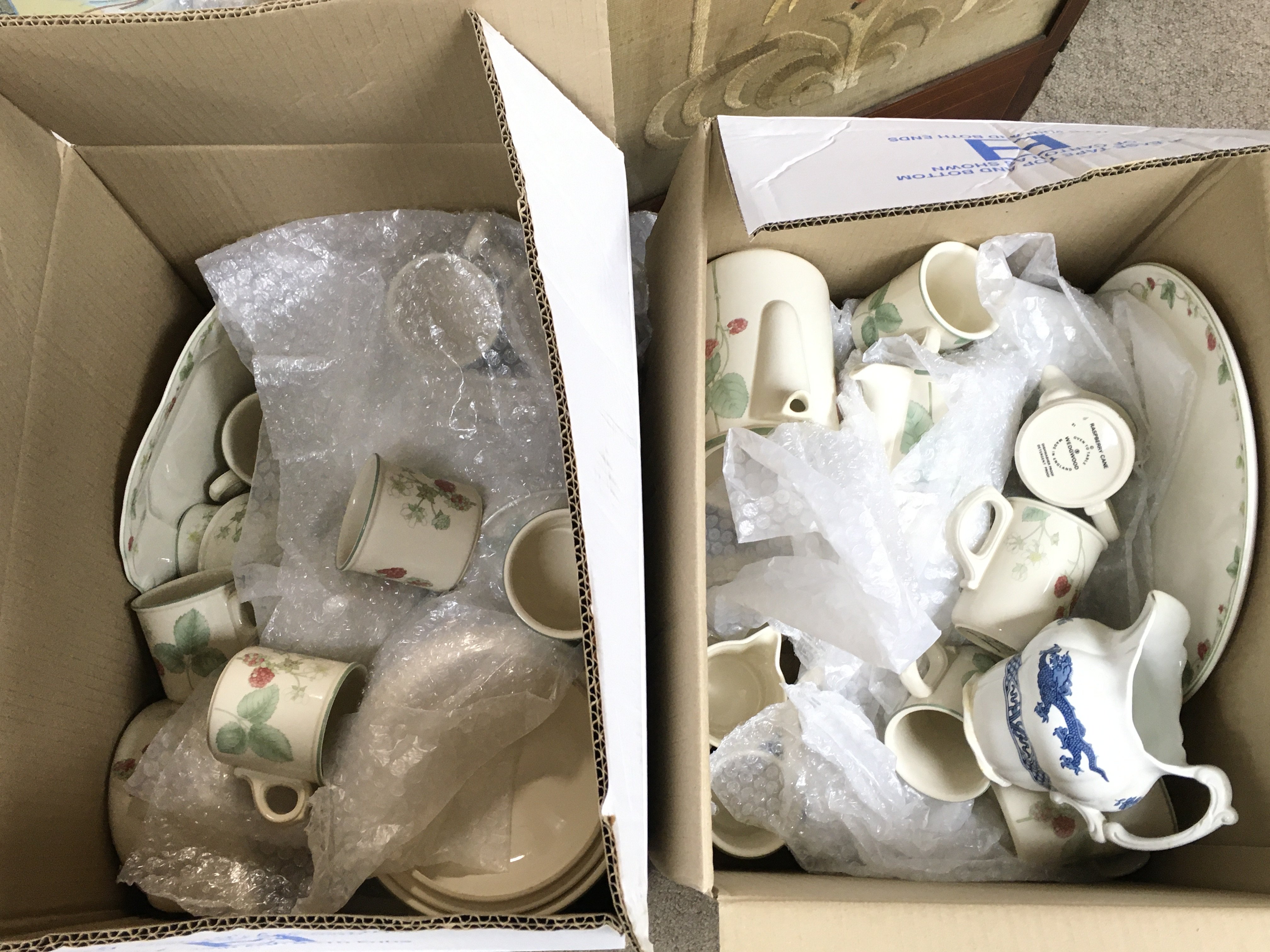 A Wedgwood Raspberry cane set including bowls, cups, dishes etc. This lot cannot be posted