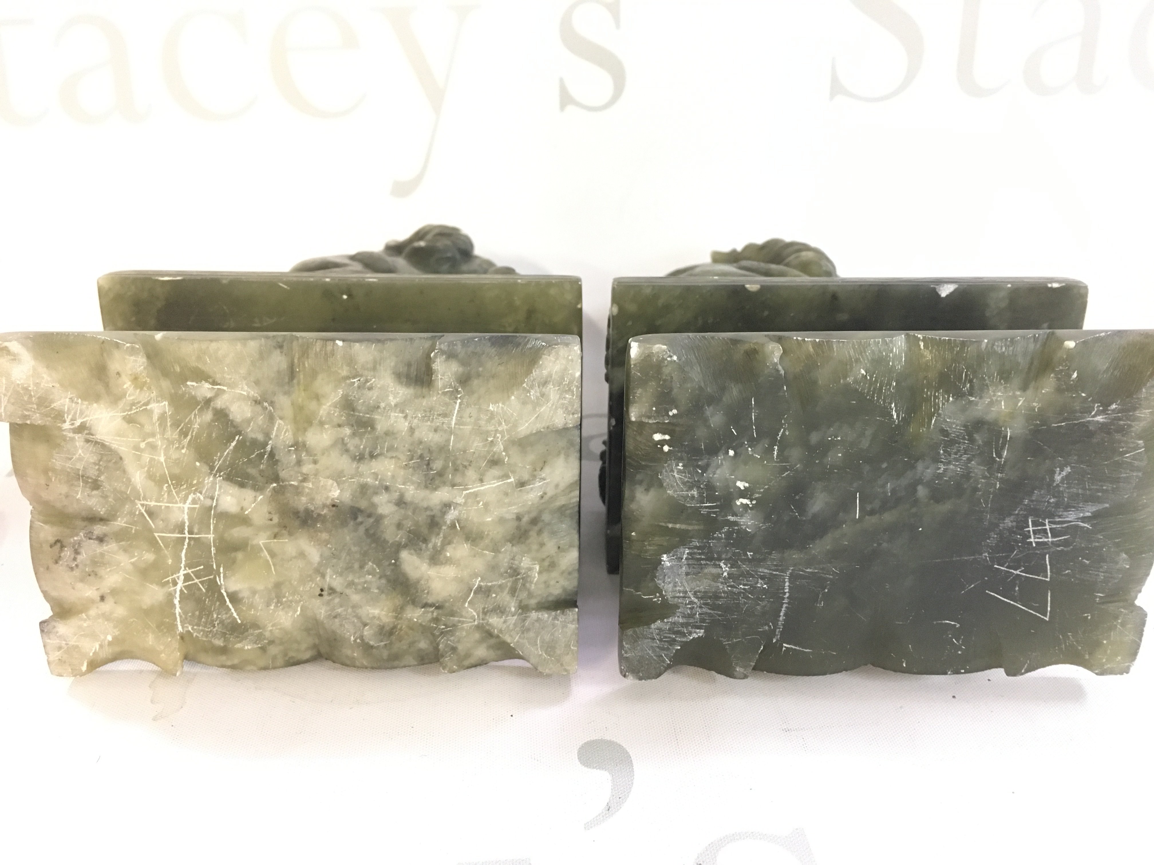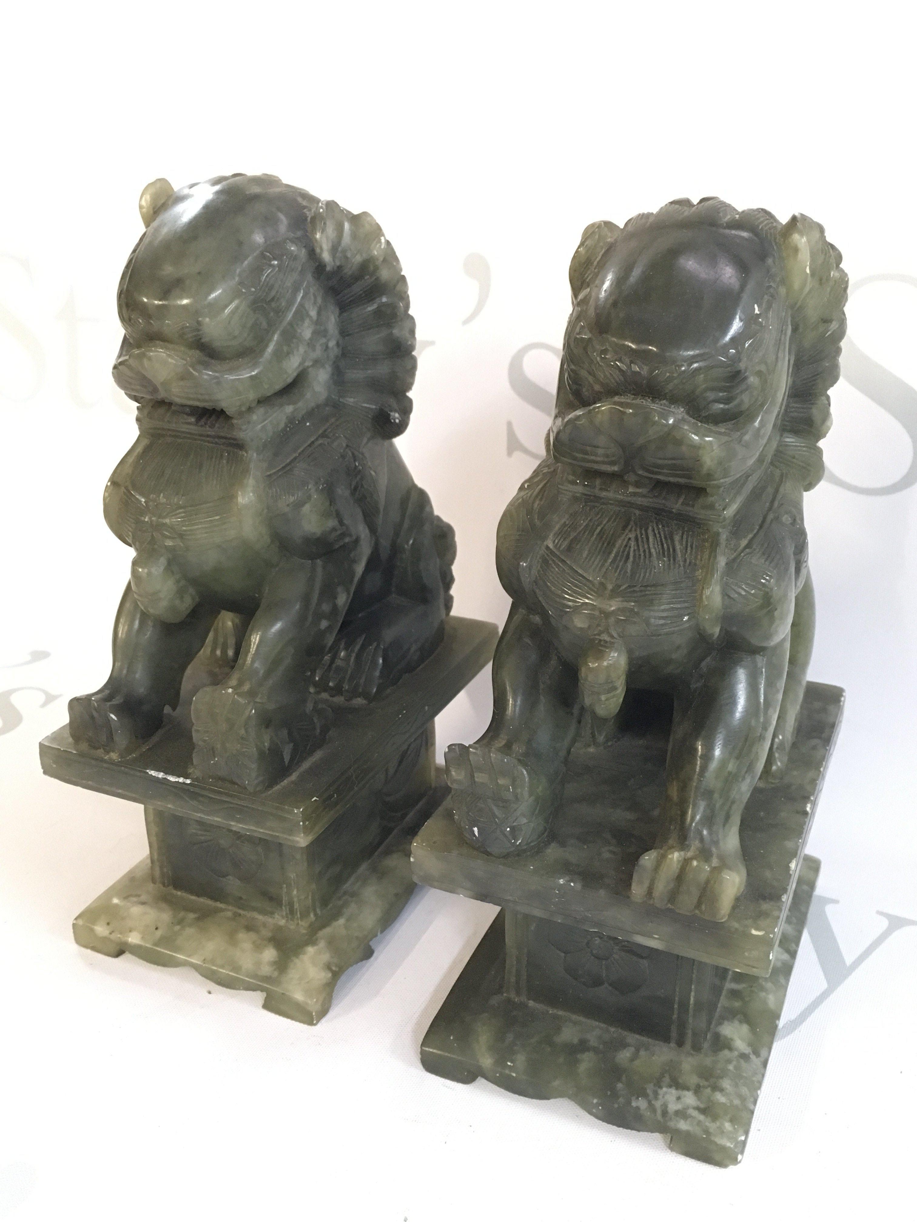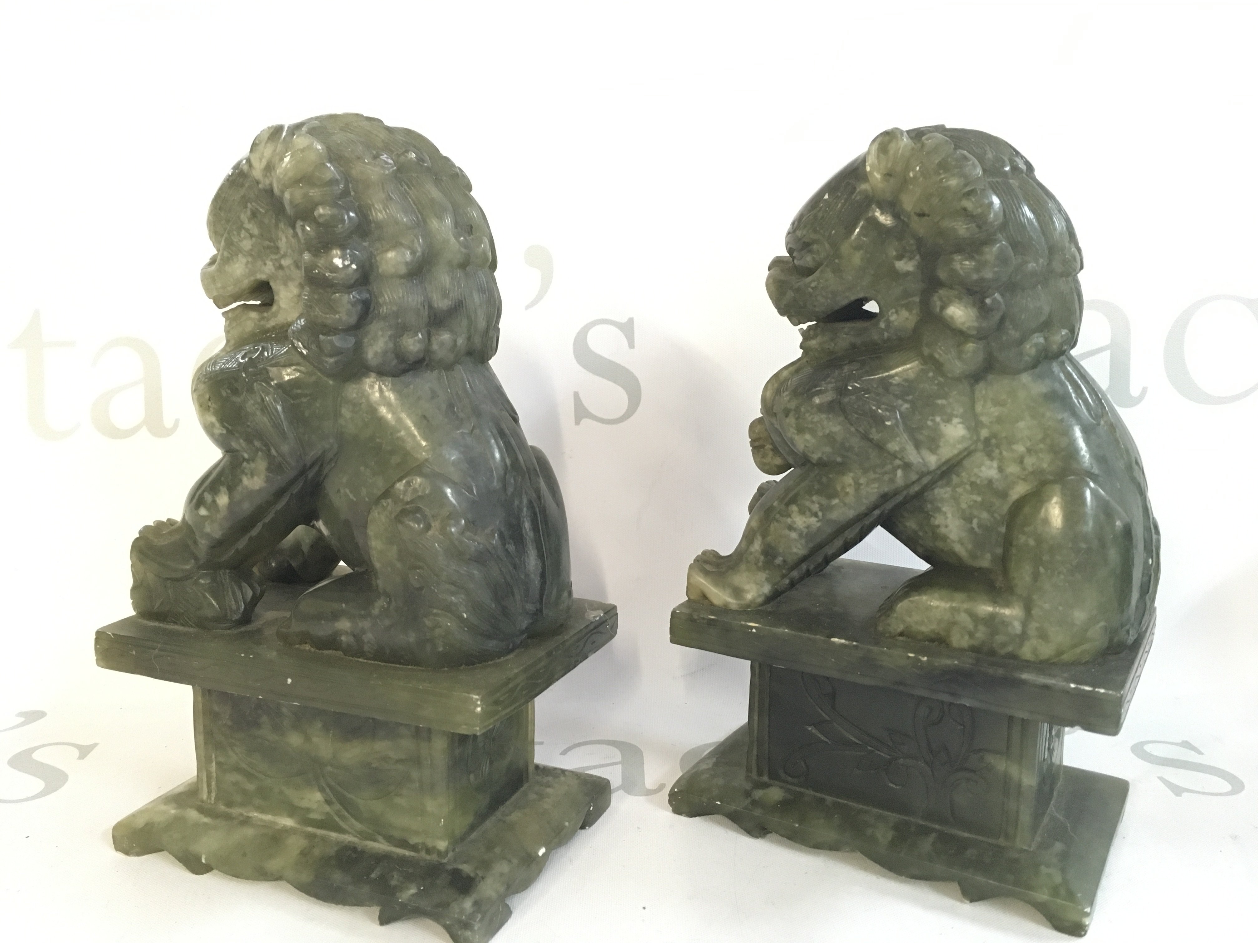 A pair of Chinese jade lion dogs , 19cm tall. This lot cannot be posted