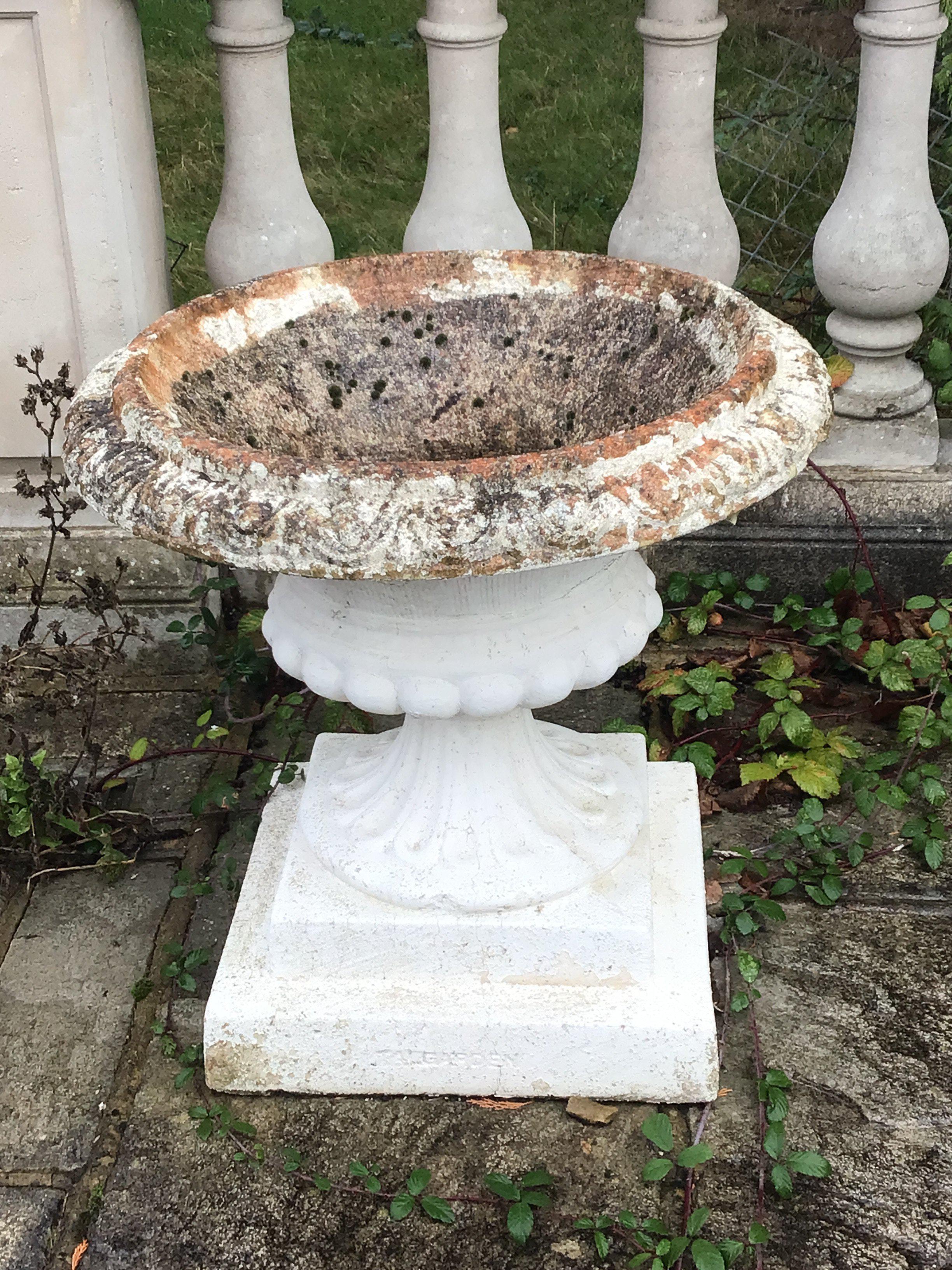 a set of four composition, concrete, neoclassical garden, earns in good condition freestanding. Height 60cm sold in situ buyer to collect.