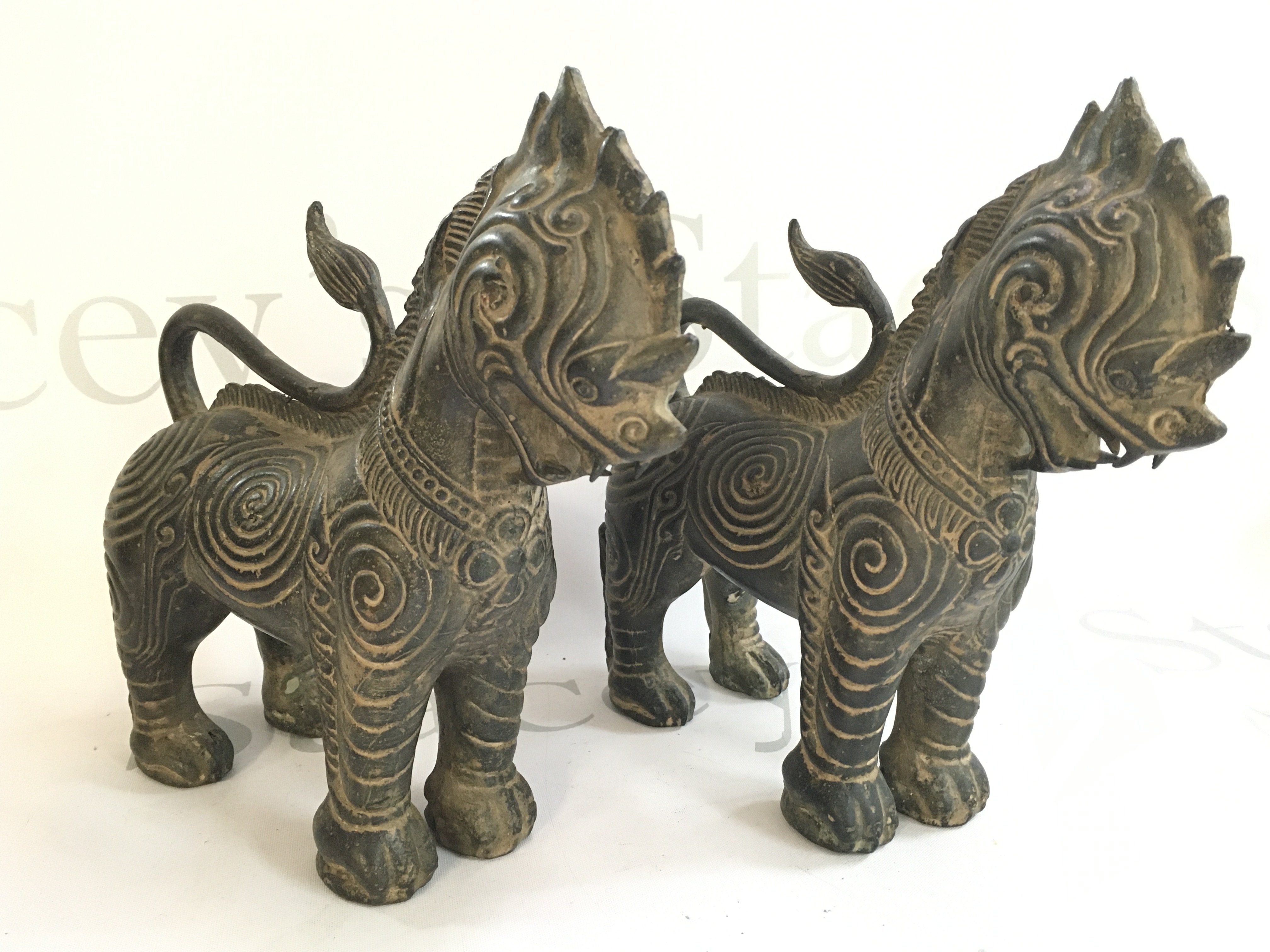 Two bronze temple dog Thai figures, 20cm tall. Postage category B