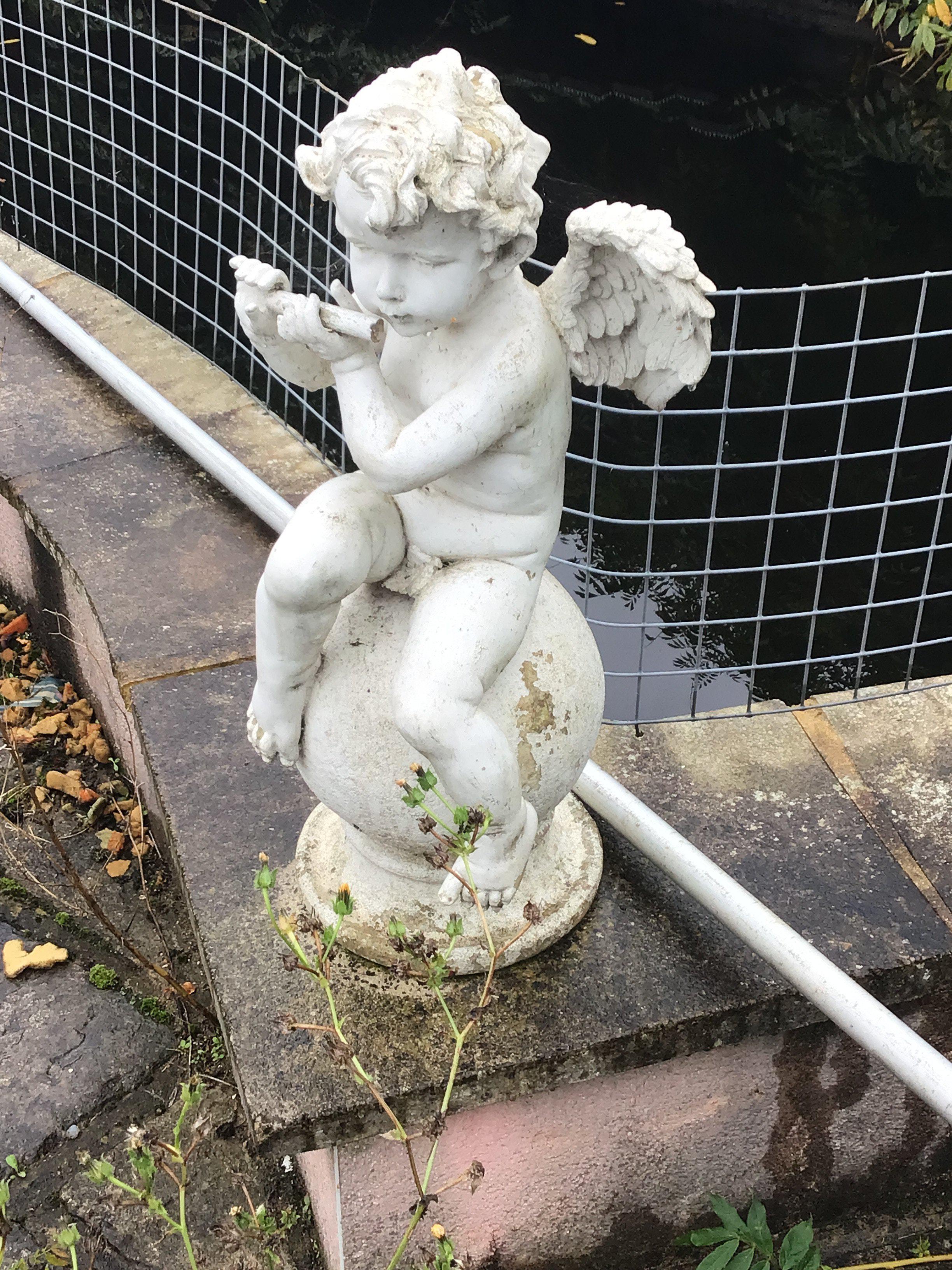 Two composition, concrete garden, ornaments in the form of winged cherubs freestanding good condition sold in situ buyer to collect. Height 70cm