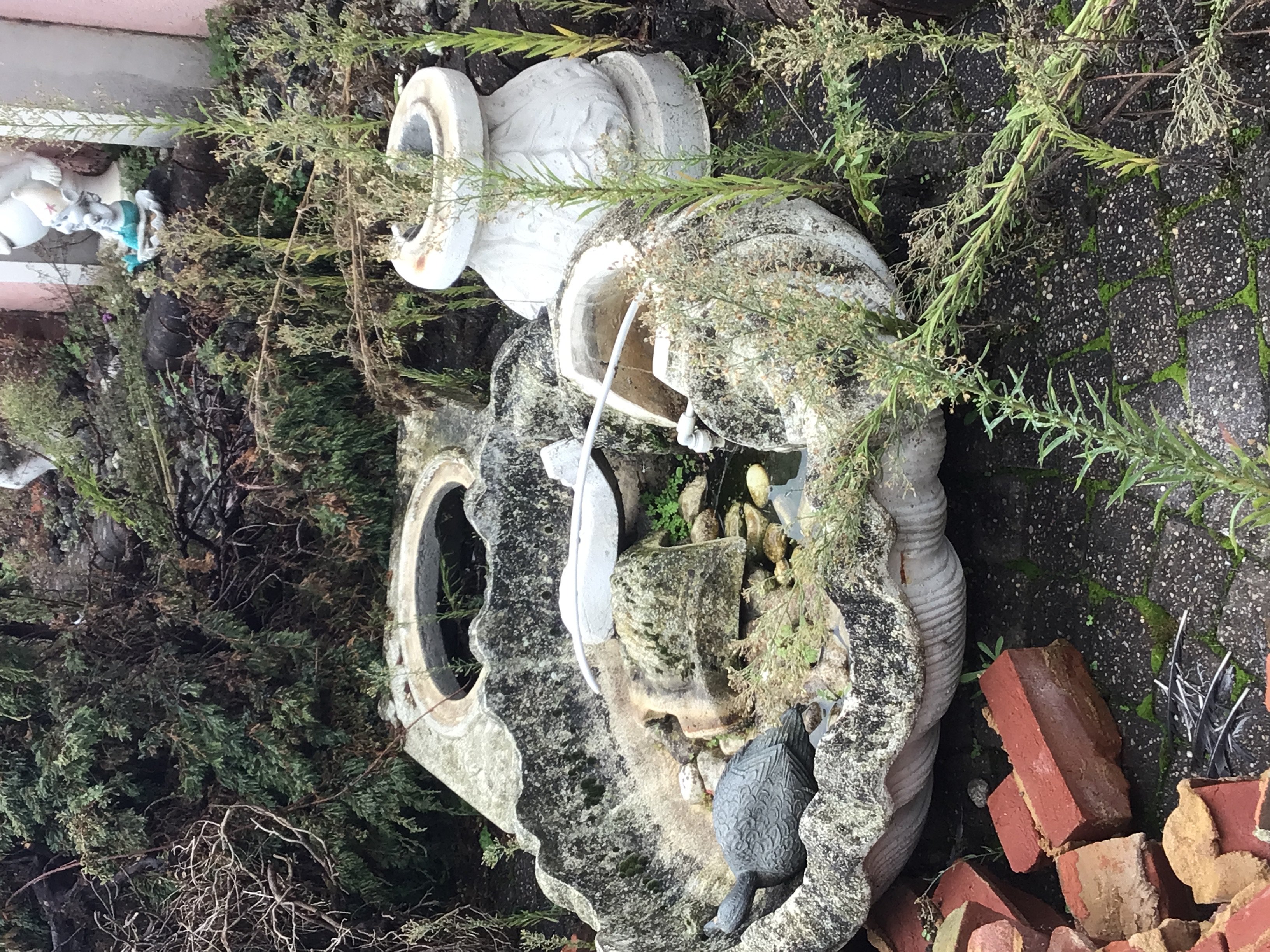 A composition, concrete garden, fountain in four sections of neoclassical design with a large shell shaped bowl. The base of circular shape with stylised acanthus leaf. Dismantled but no obvious damage . Buyer to collect.