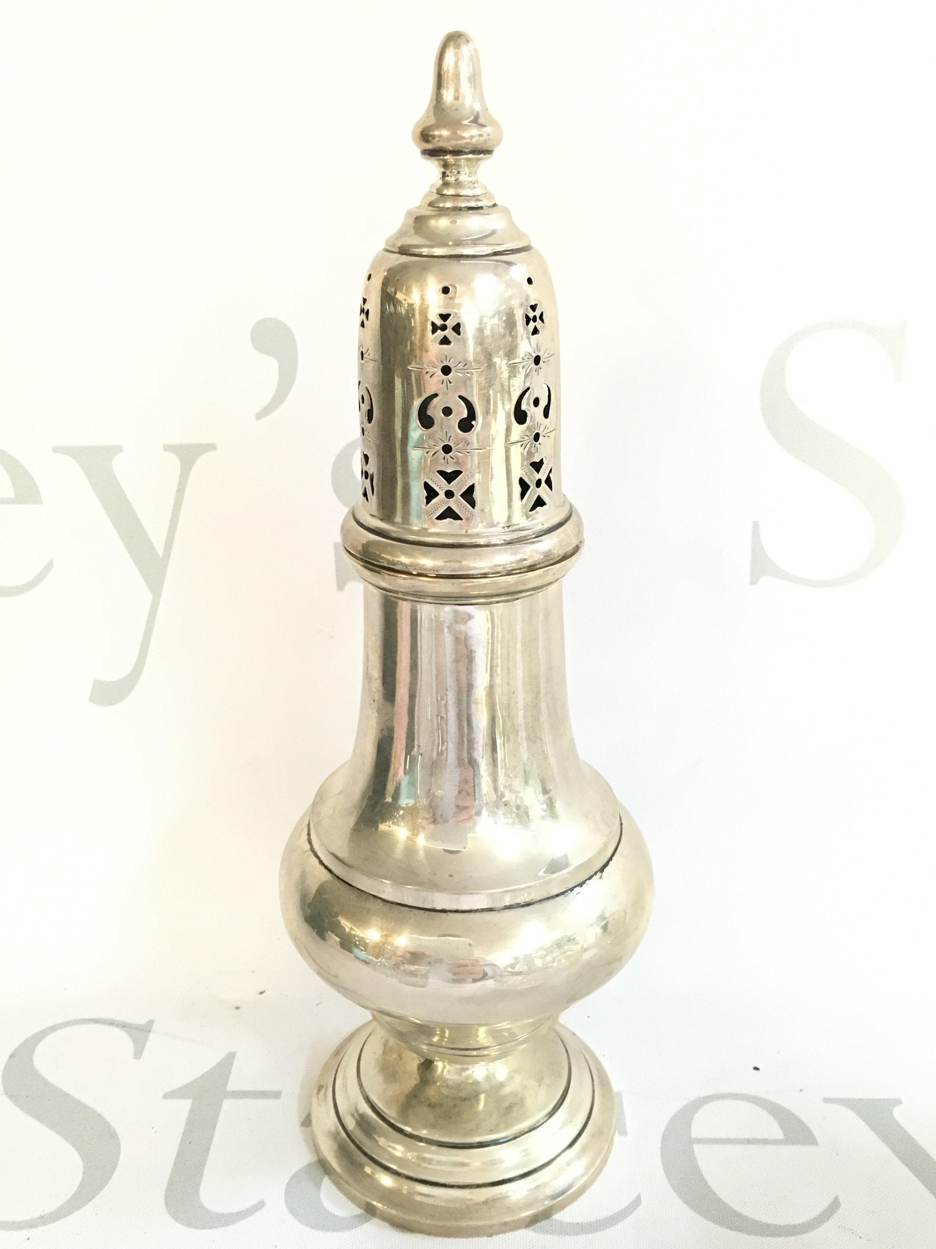 A silver hallmarked sugar sifter , 22cm tall. Postage category B