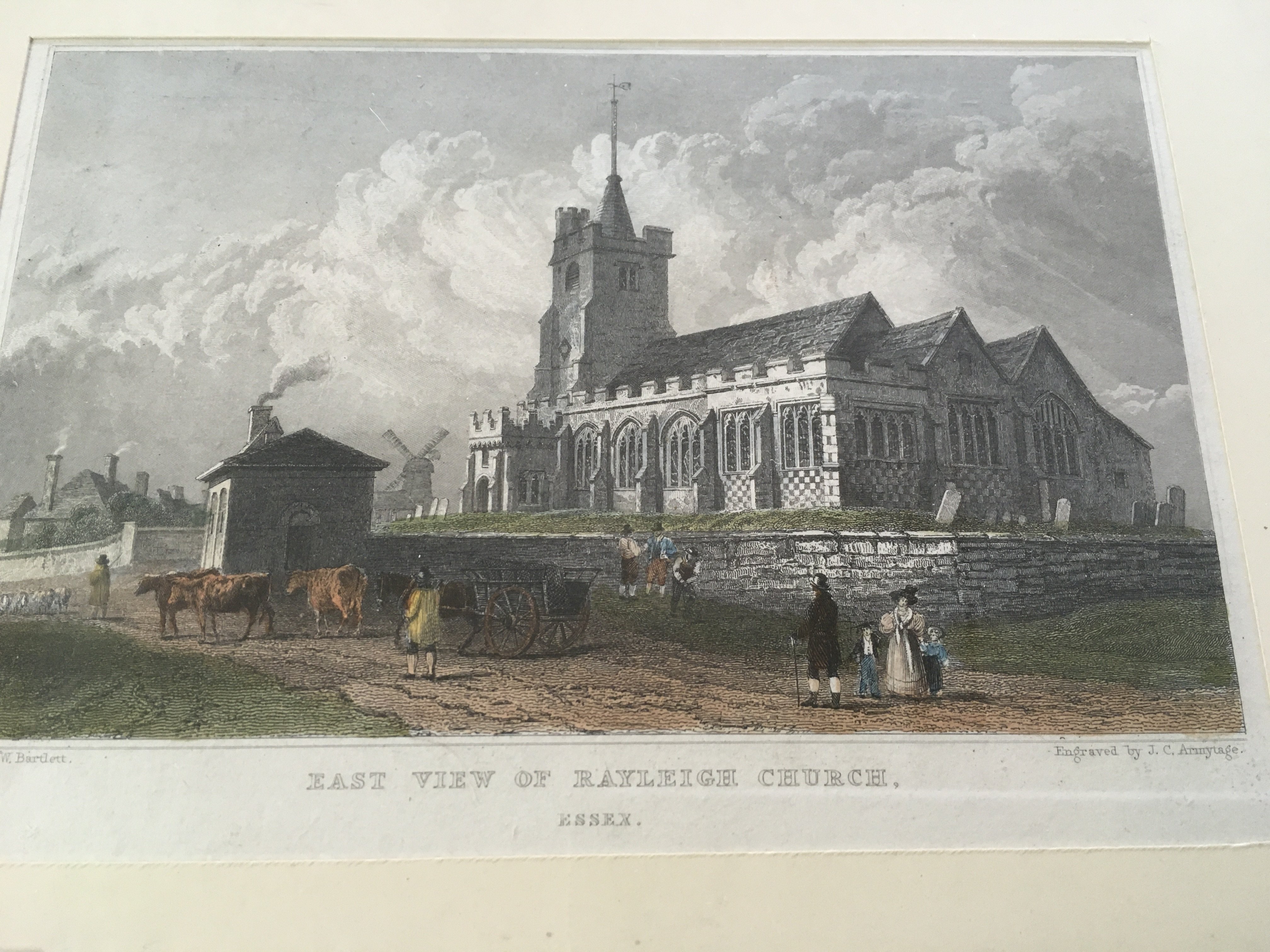 Two framed prints Hadleigh castle and view of Rayleigh church.