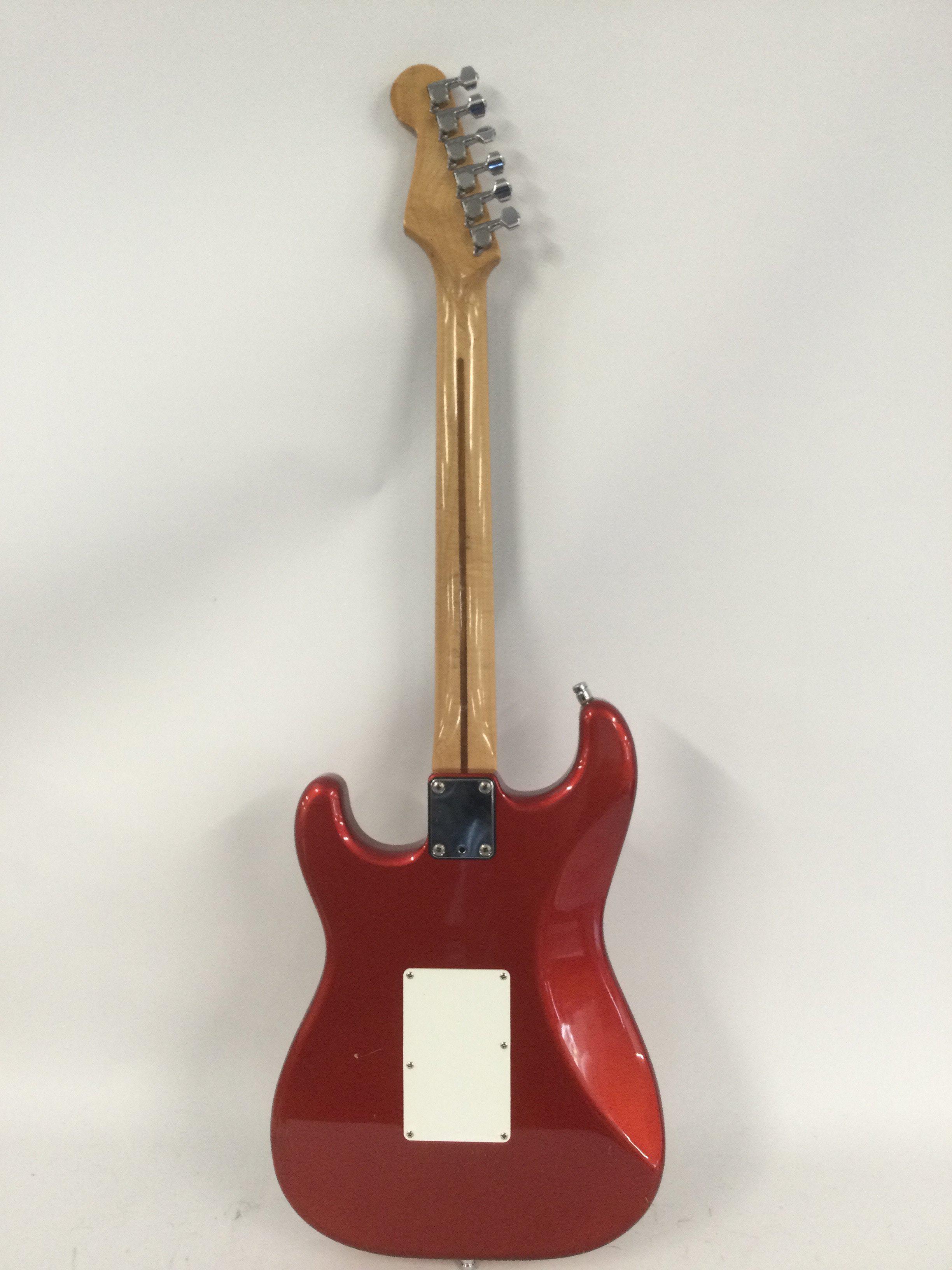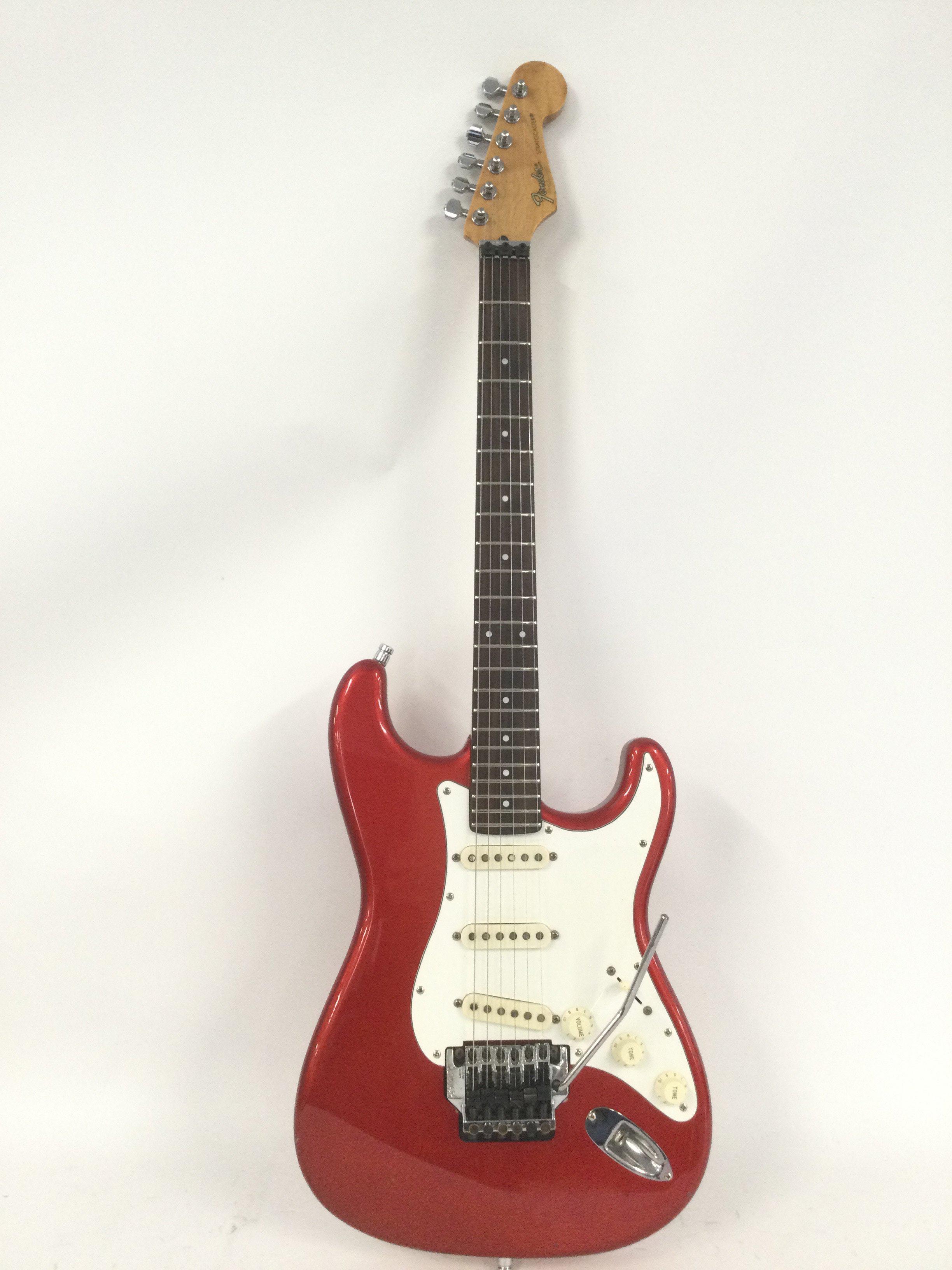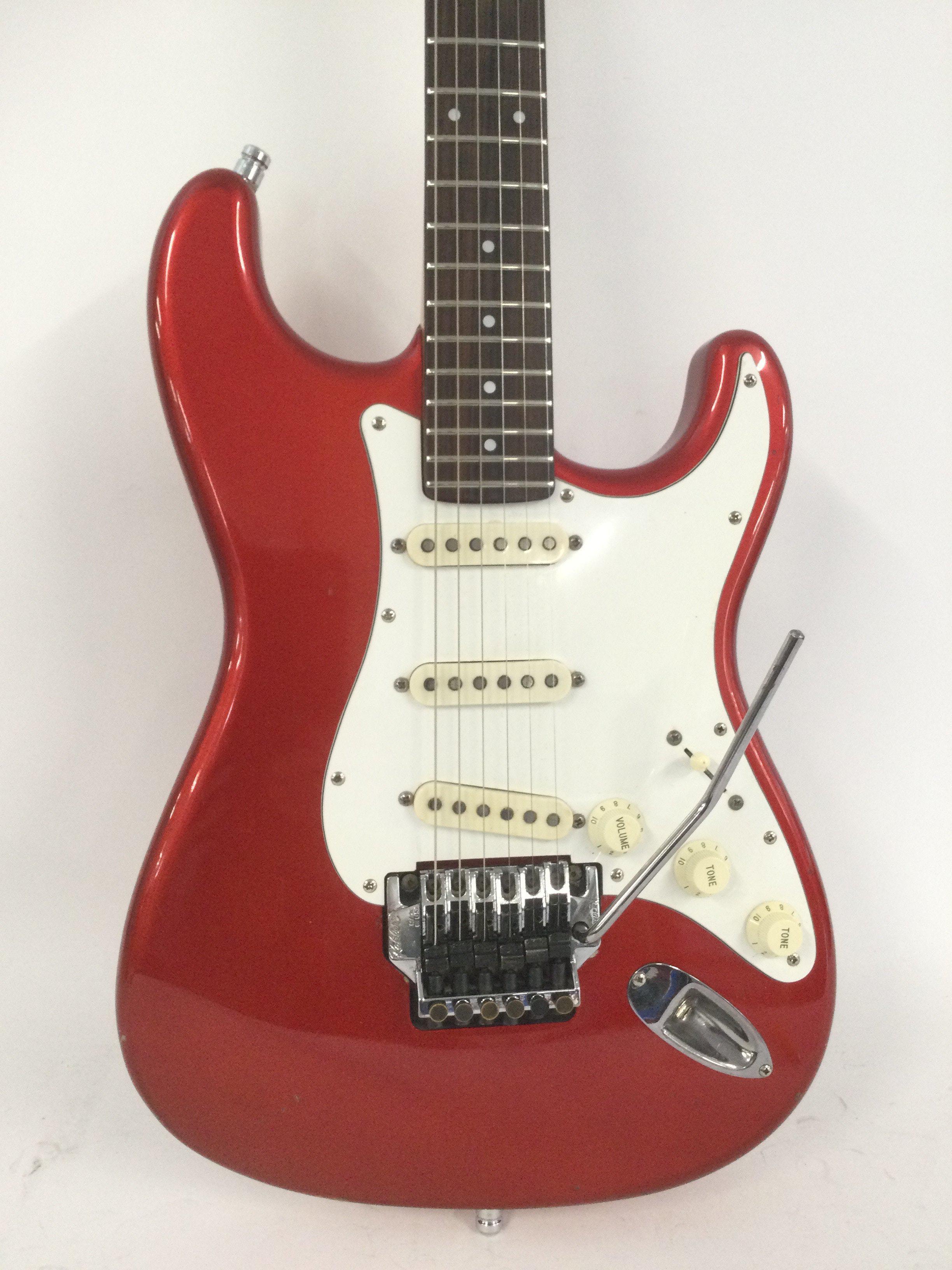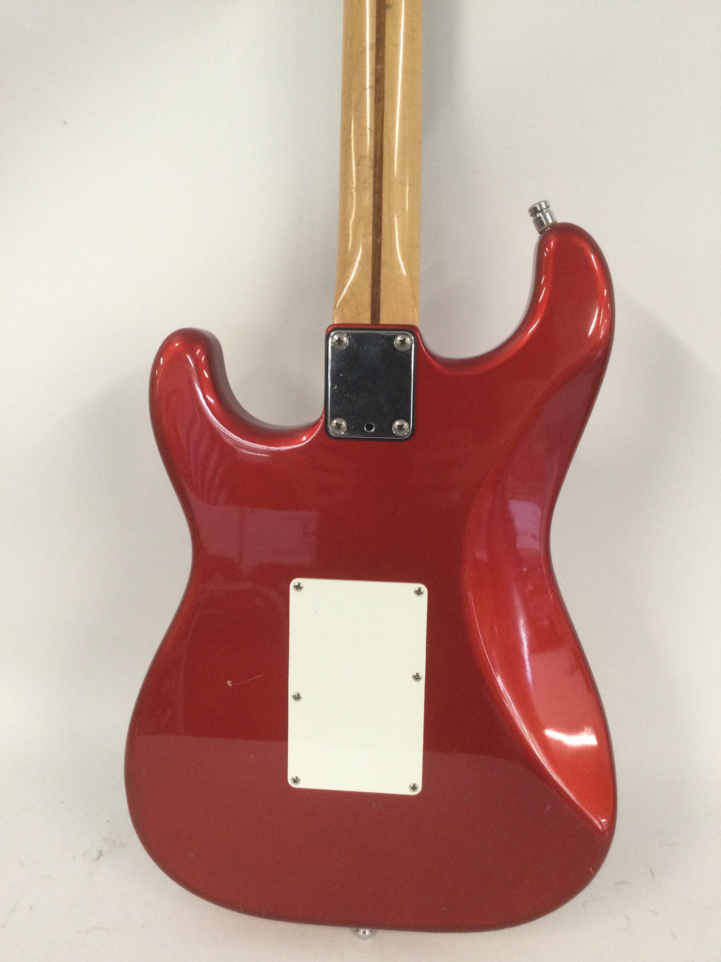 A Fender Contemporary Stratocaster electric guitar with factory fitted Kahler Locking Vibrato - Made in Japan c1998 in Candy Apple Red. All original with some playwear, good condition overall with some damage to paintwork . Comes with Fender branded soft carry case. #fenderjapan #fenderstratocaster #contemporarystrat #fendermij