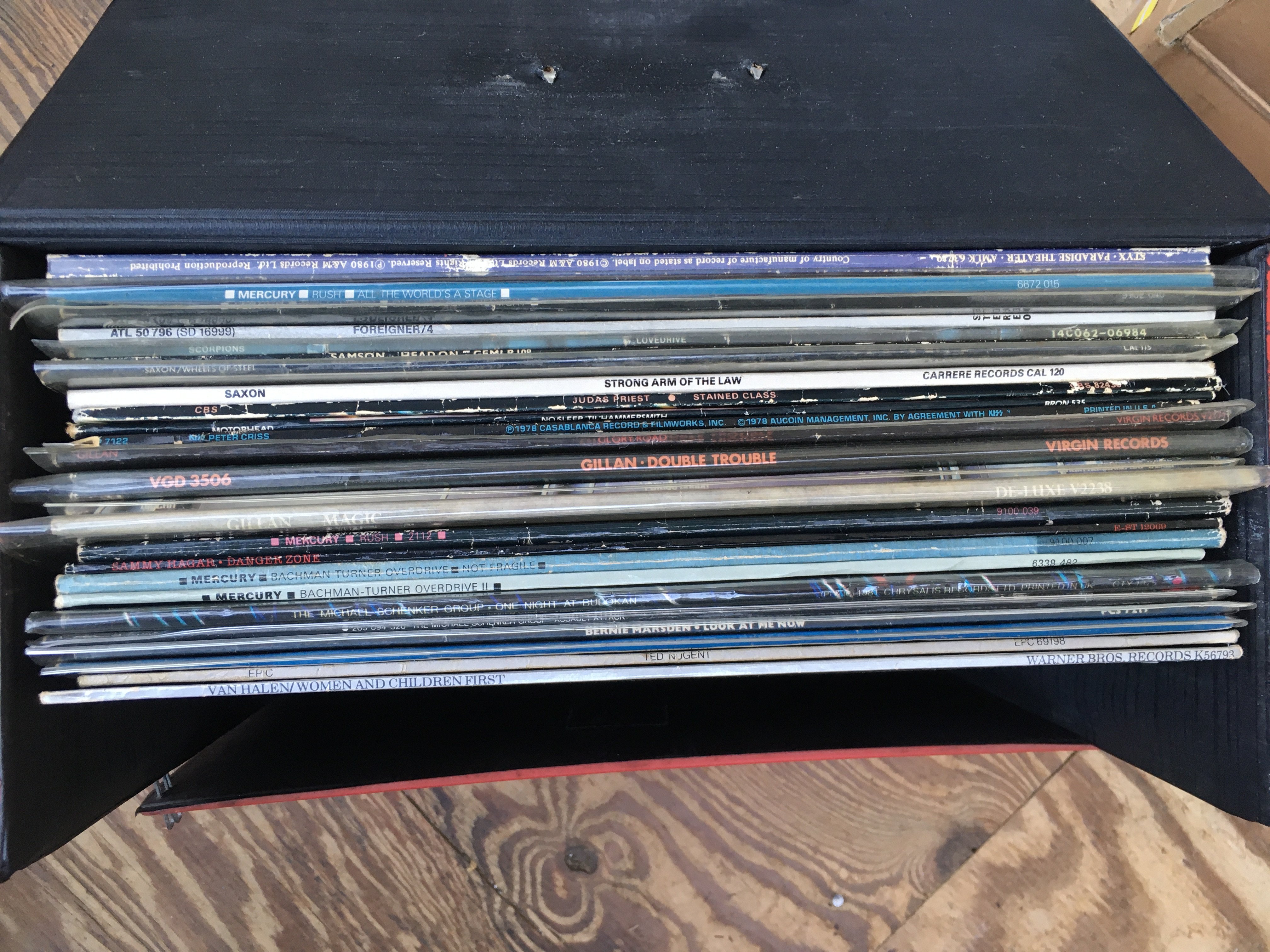 A collection of rock LPs and 12" singles by Gillan, Motorhead, Rush and others.