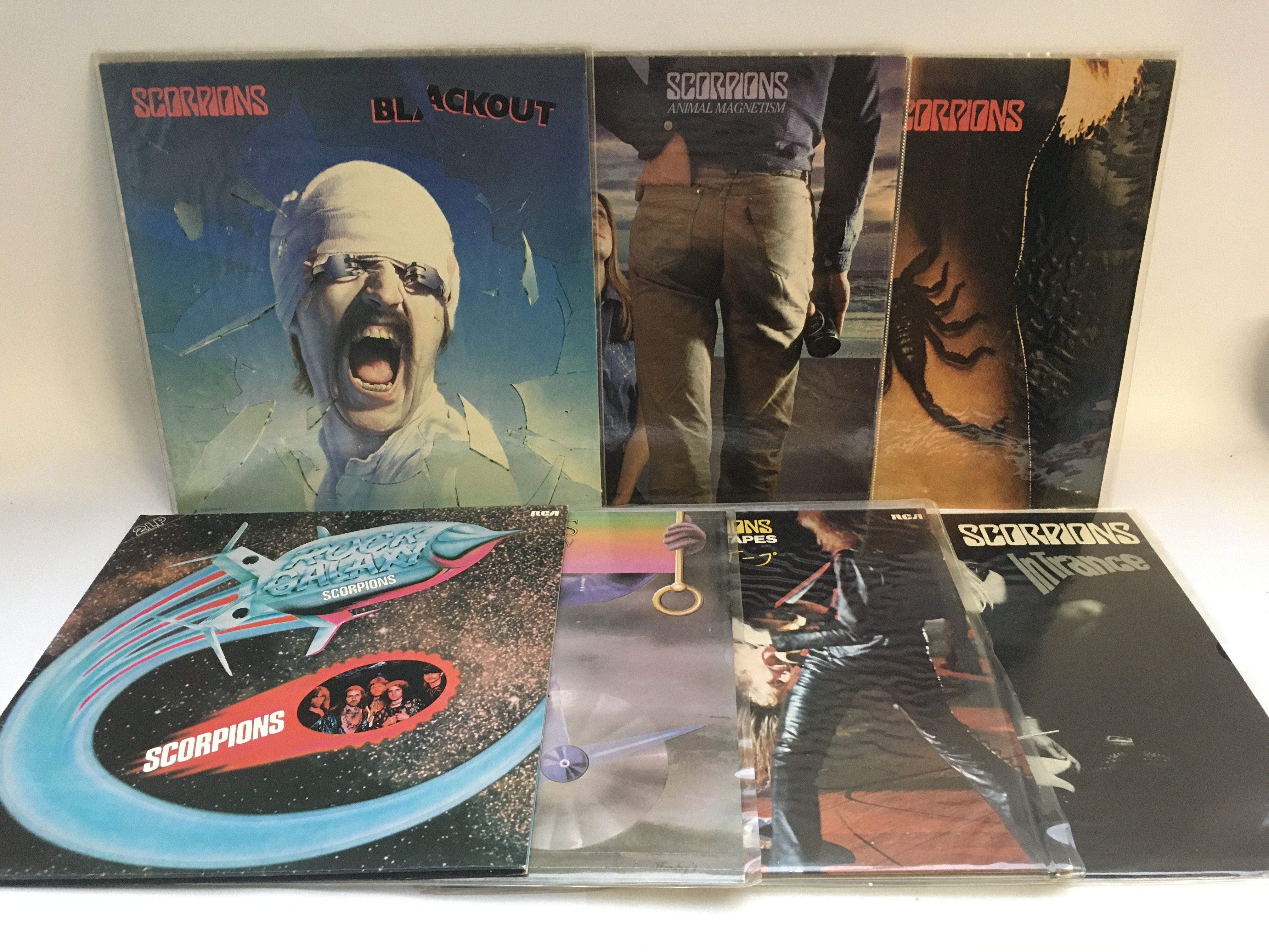 Seven Scorpions LPs comprising 'Blackout', 'In Trance' and others.
