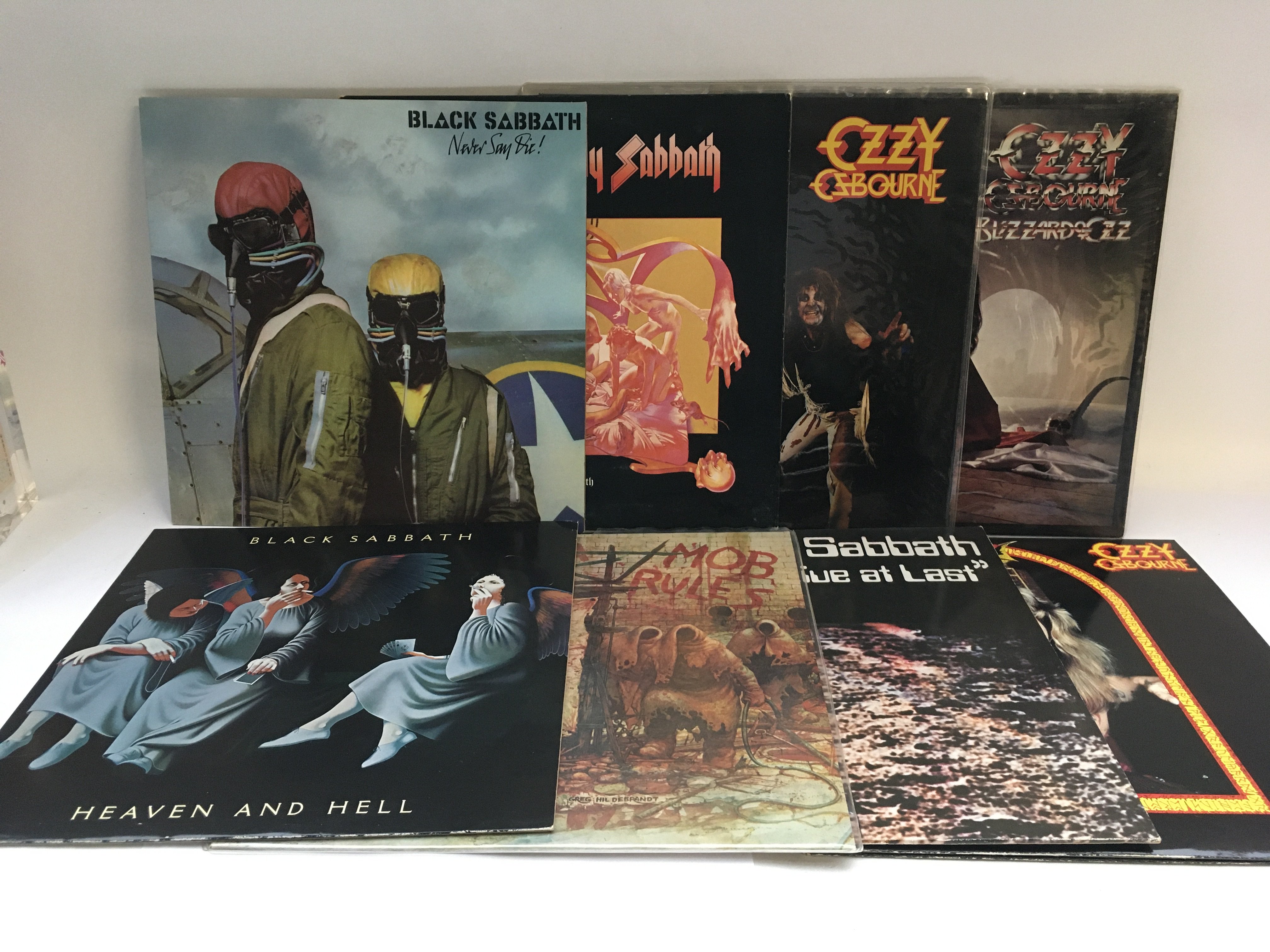 Eight Black Sabbath and related LPs comprising 'Heaven And Hell', 'Blizzard Of Ozz' and others.