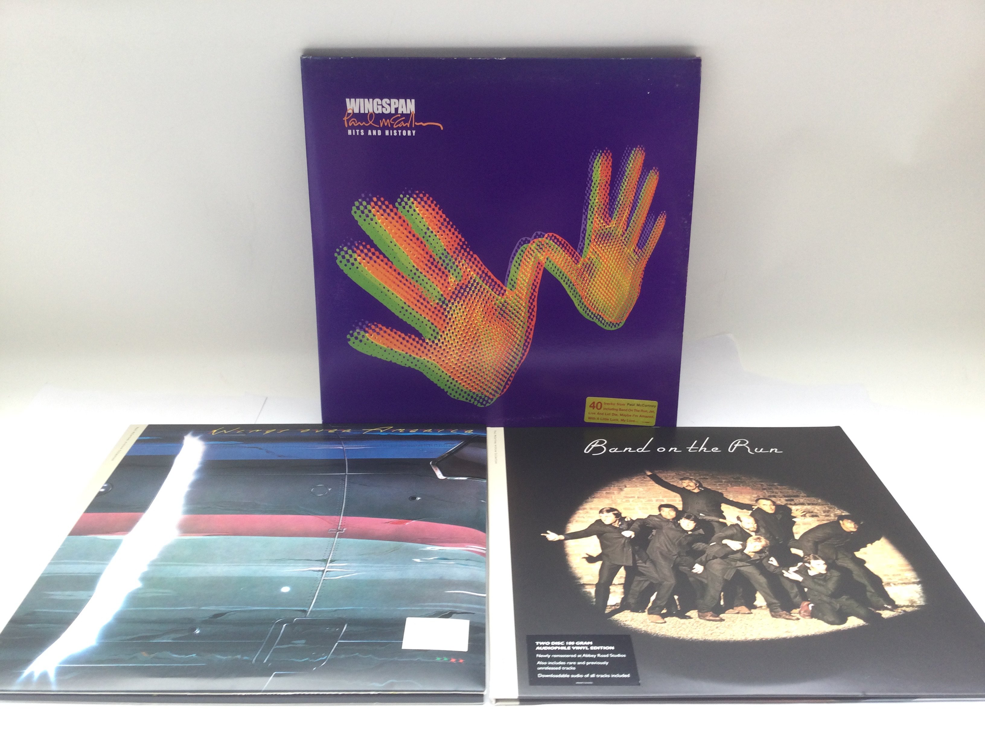 Three Wings LPs comprising a 4LP 'Wingspan', a 180g audiophile 3LP 'Wings Over America' and a 180g audiophile 2LP 'Band On The Run'.