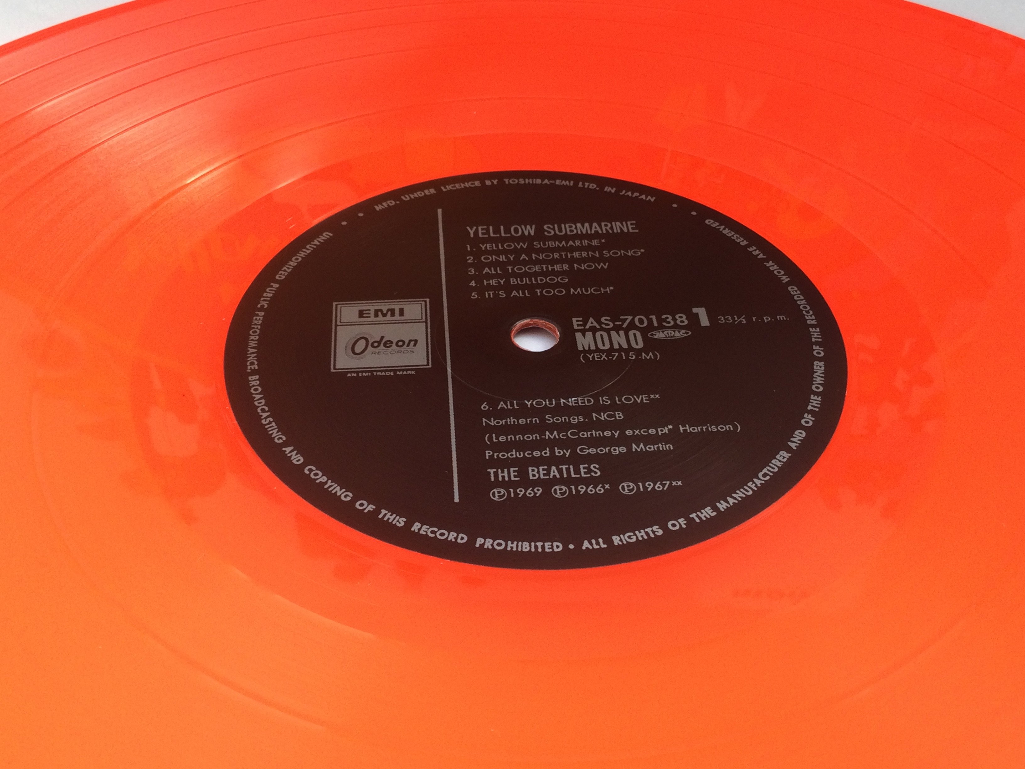 A limited edition Japanese red vinyl mono pressing of The Beatles 'Yellow Submarine' LP.