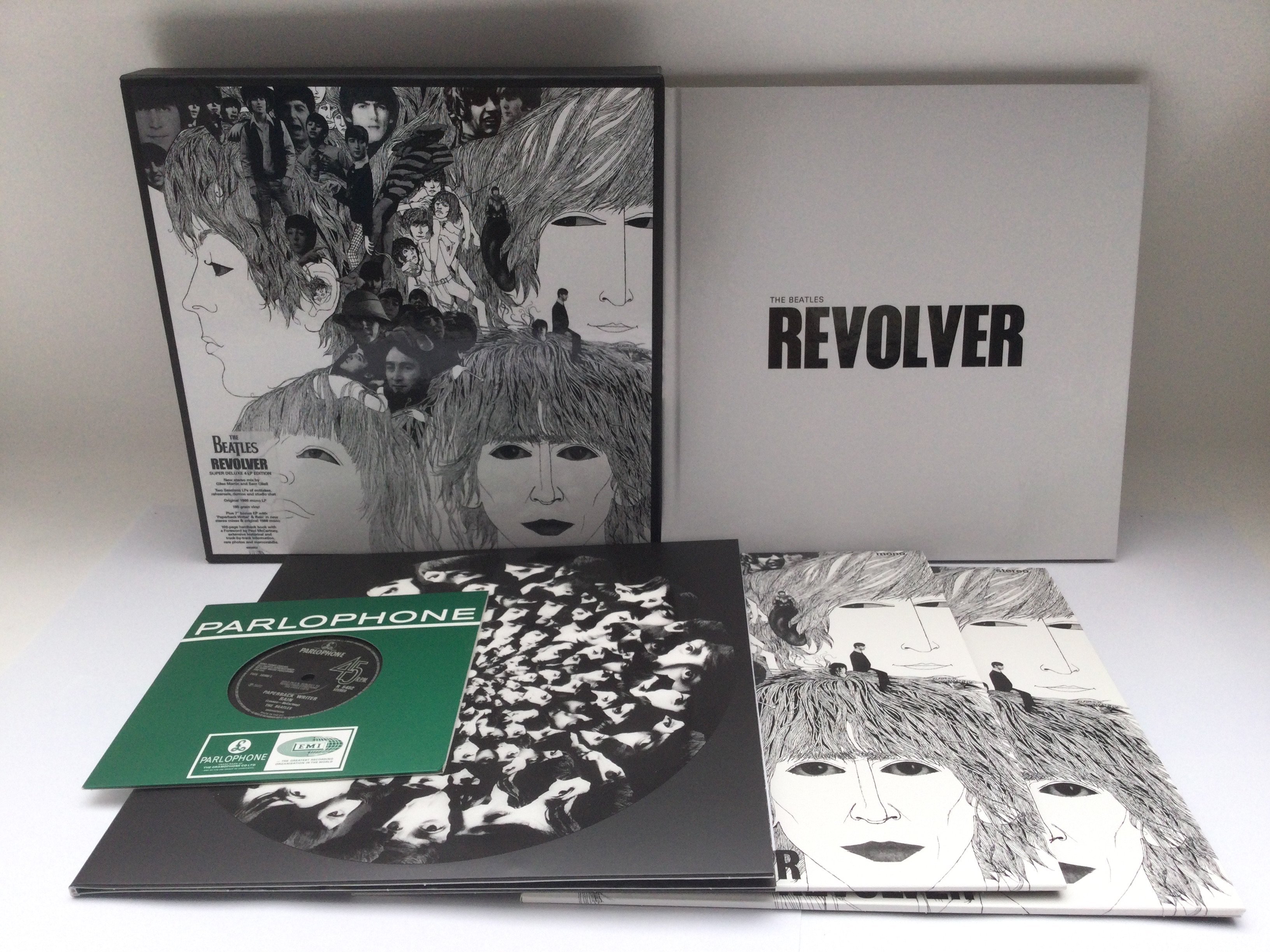 A Beatles 'Revolver' super deluxe 4LP edition on 180g vinyl with additional 7inch bonus EP and 100 page hardback book.