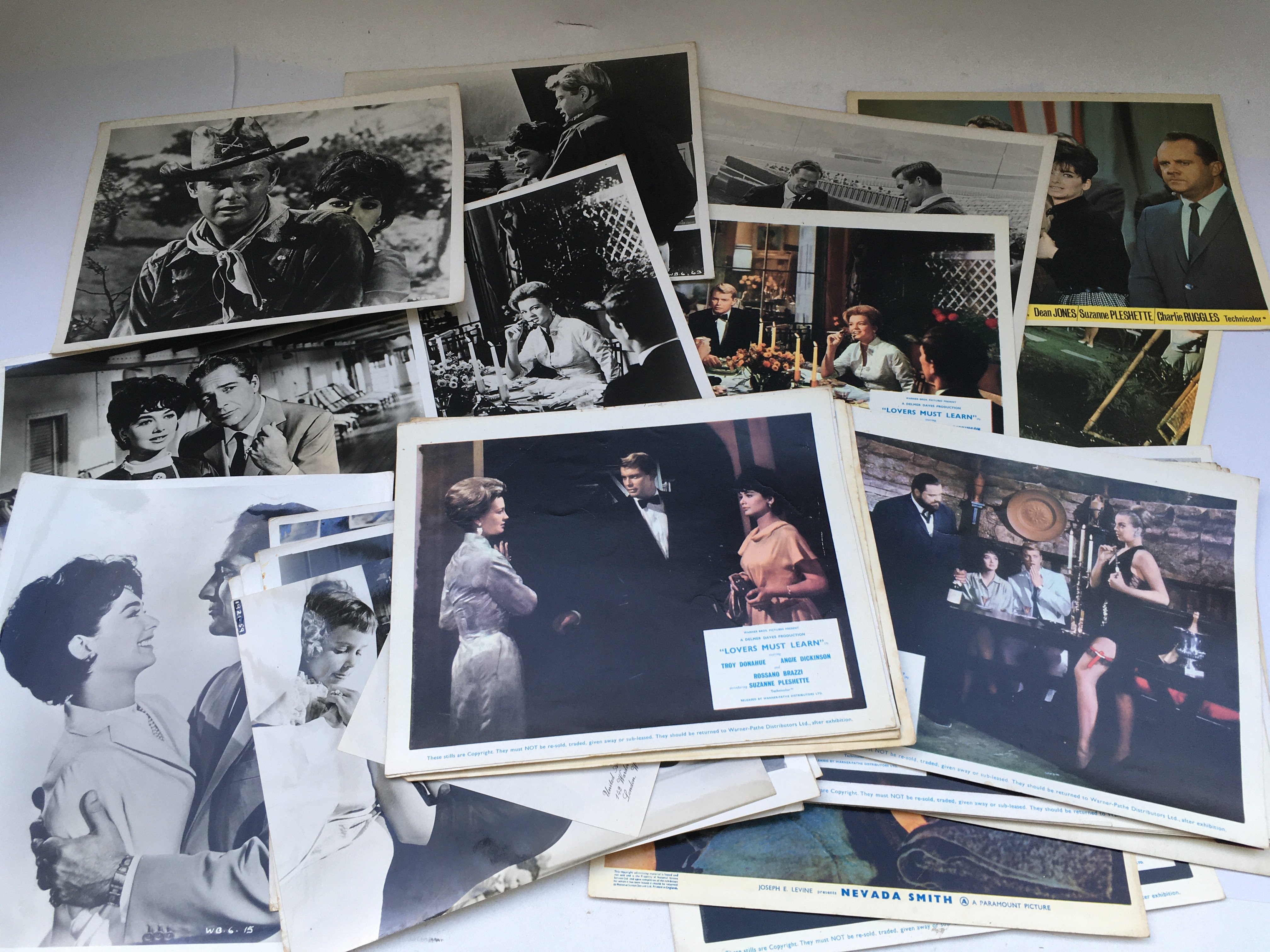 A collection of music and film ephemera comprising press photos by Kevin Cummins, both genuine and printed autographs, lobby cards etc.