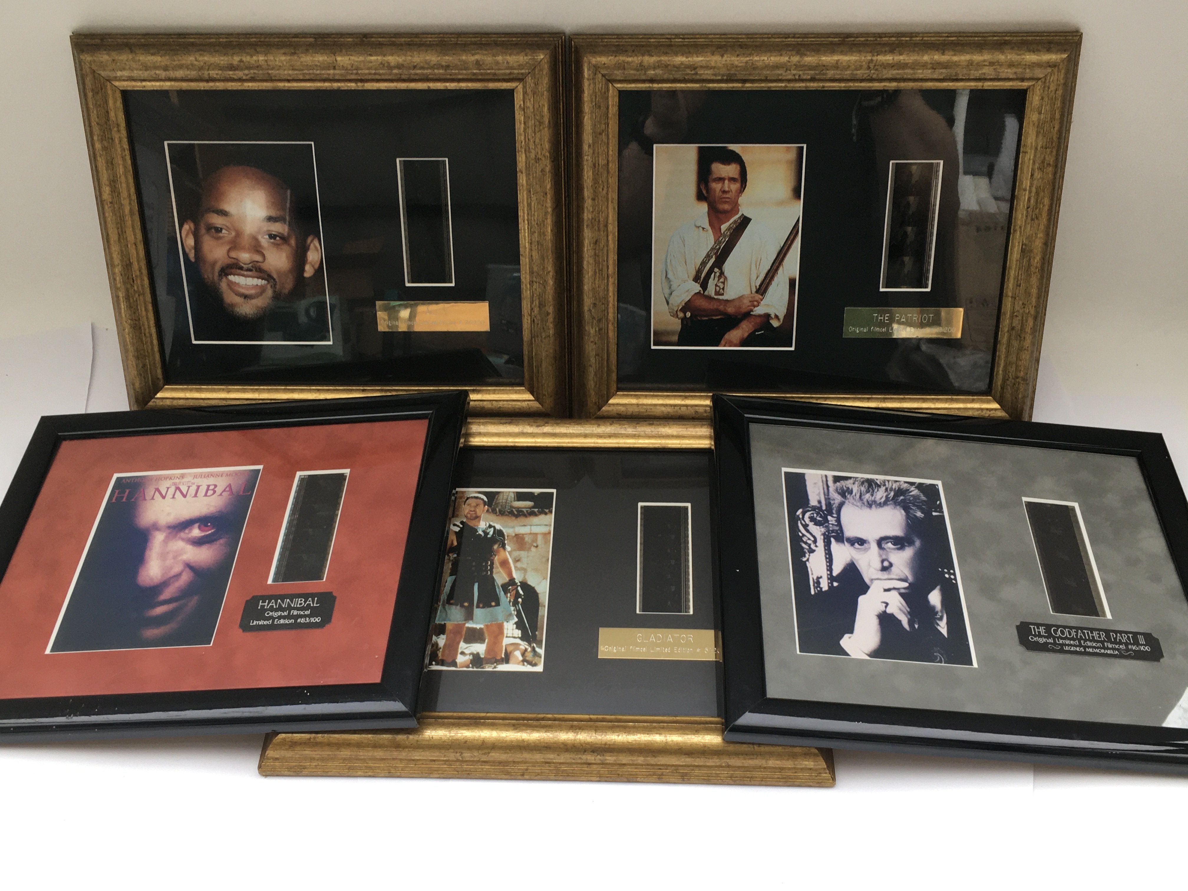 Five framed limited edition film cels for Gladiator, Hannibal, Ali, The Patriot and The Godfather part III.
