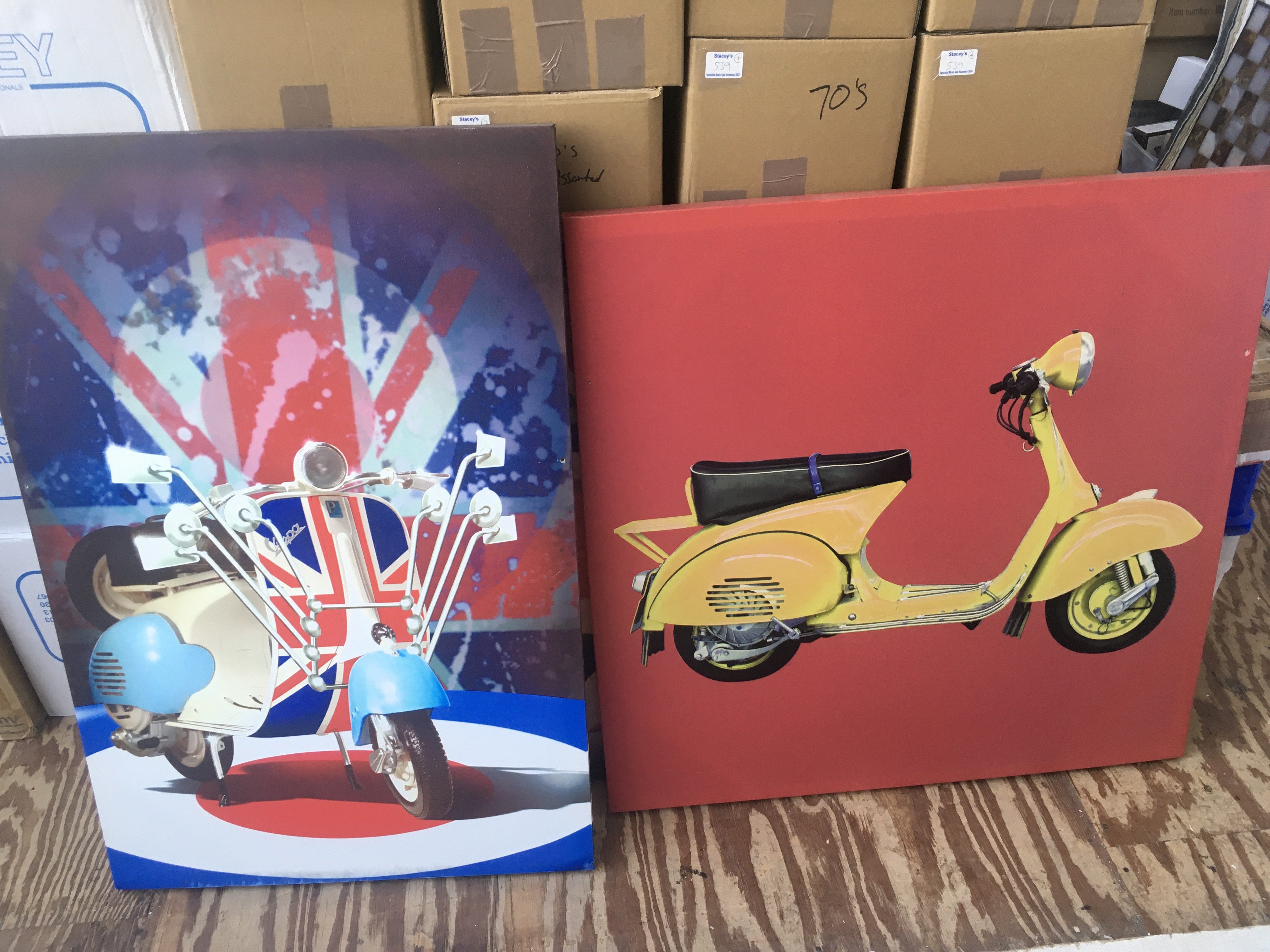 Five mod scene related canvas prints, the largest approx 80cm x 80cm.