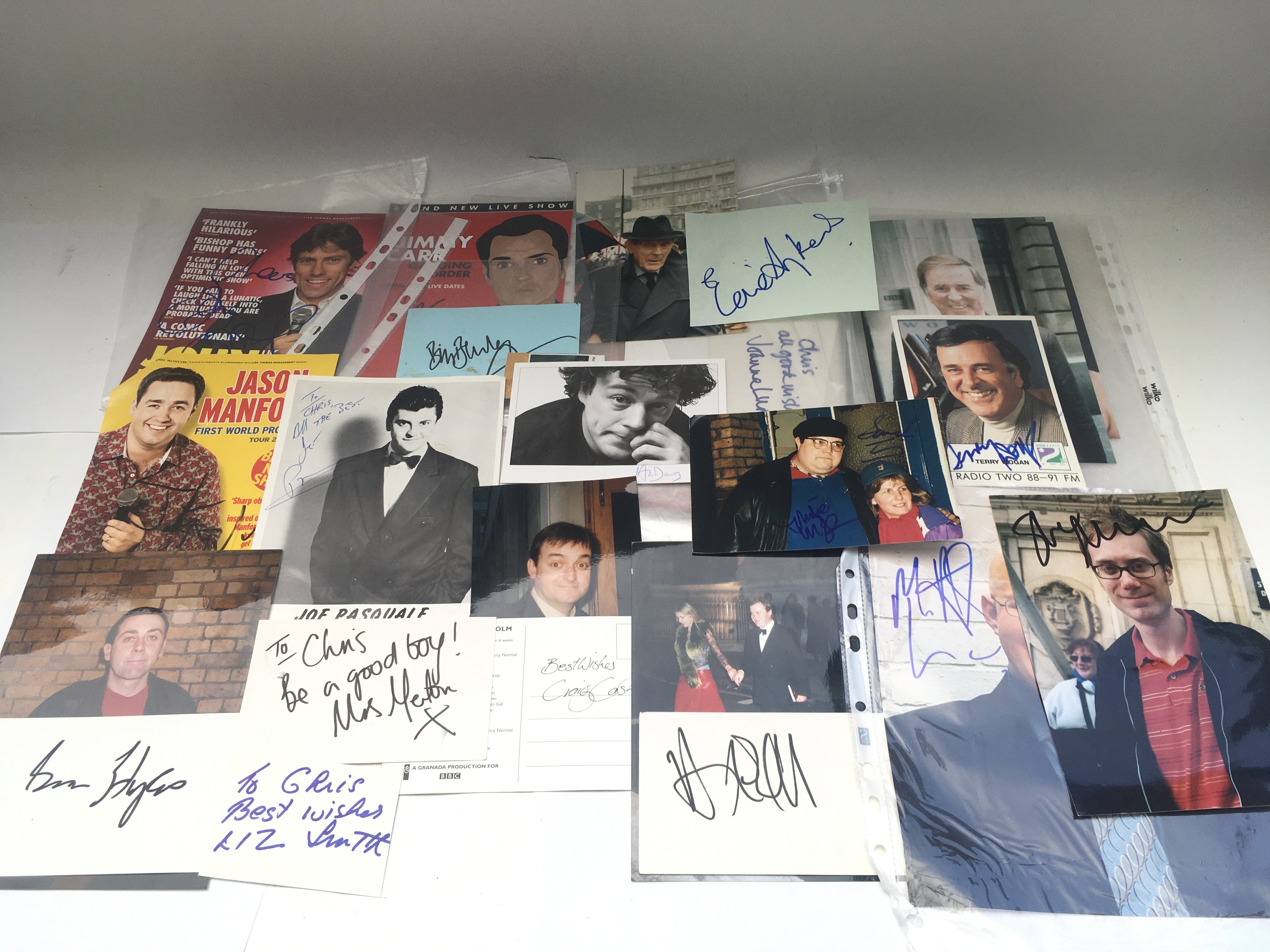 A collection of autographs of famous comedians and entertainers including Victoria Wood, Eric Sykes, Roy Hudd, Rob Brydon, Michael McIntyre, Freddie Starr, Harry Enfield, Jimmy Carr and others. No COAs. Please note that buyers must satisfy themselves as to the authenticity of any signed items before bidding as we are not experts in this field and will not be held responsible should they prove to be anything other than genuine.