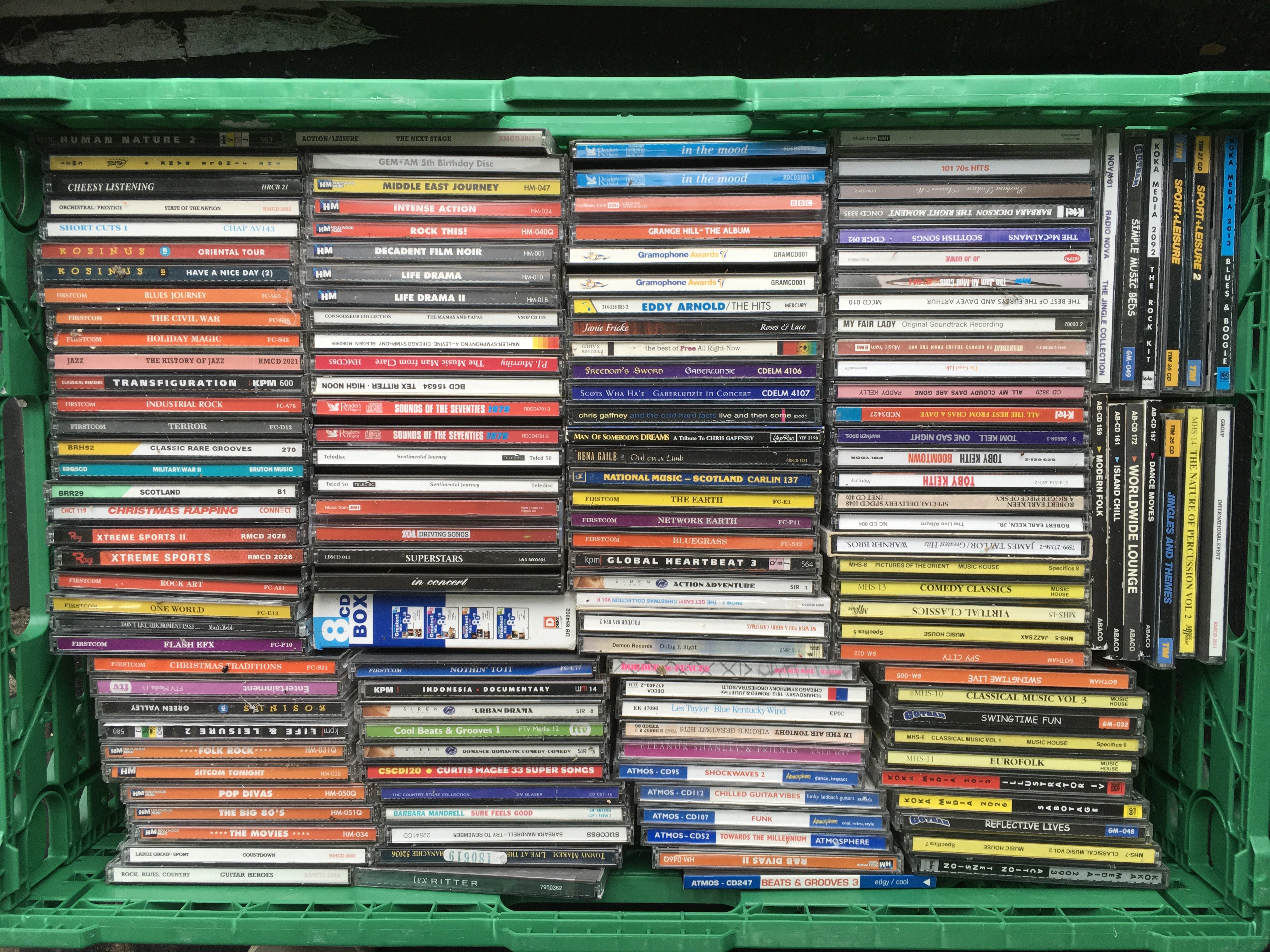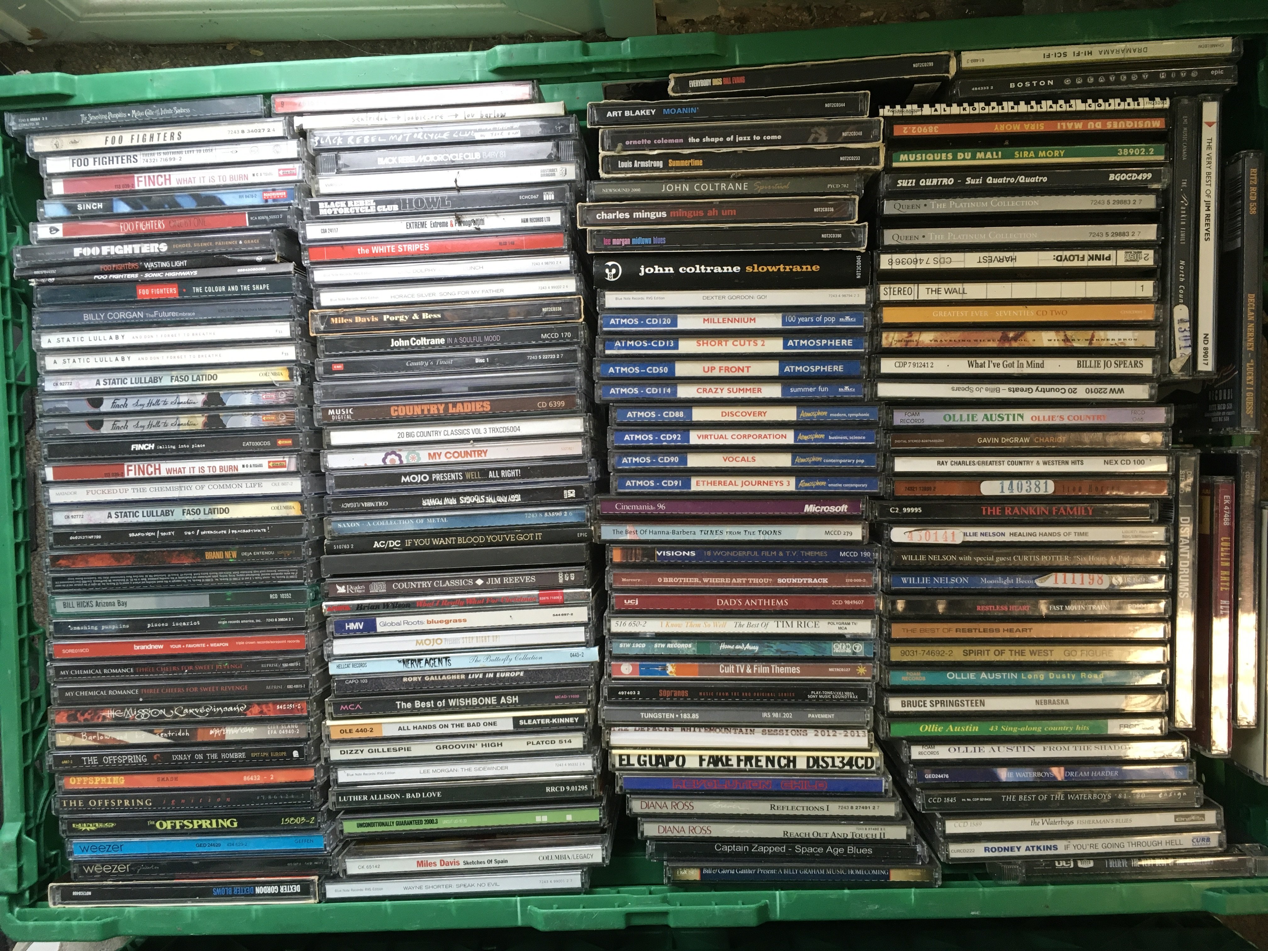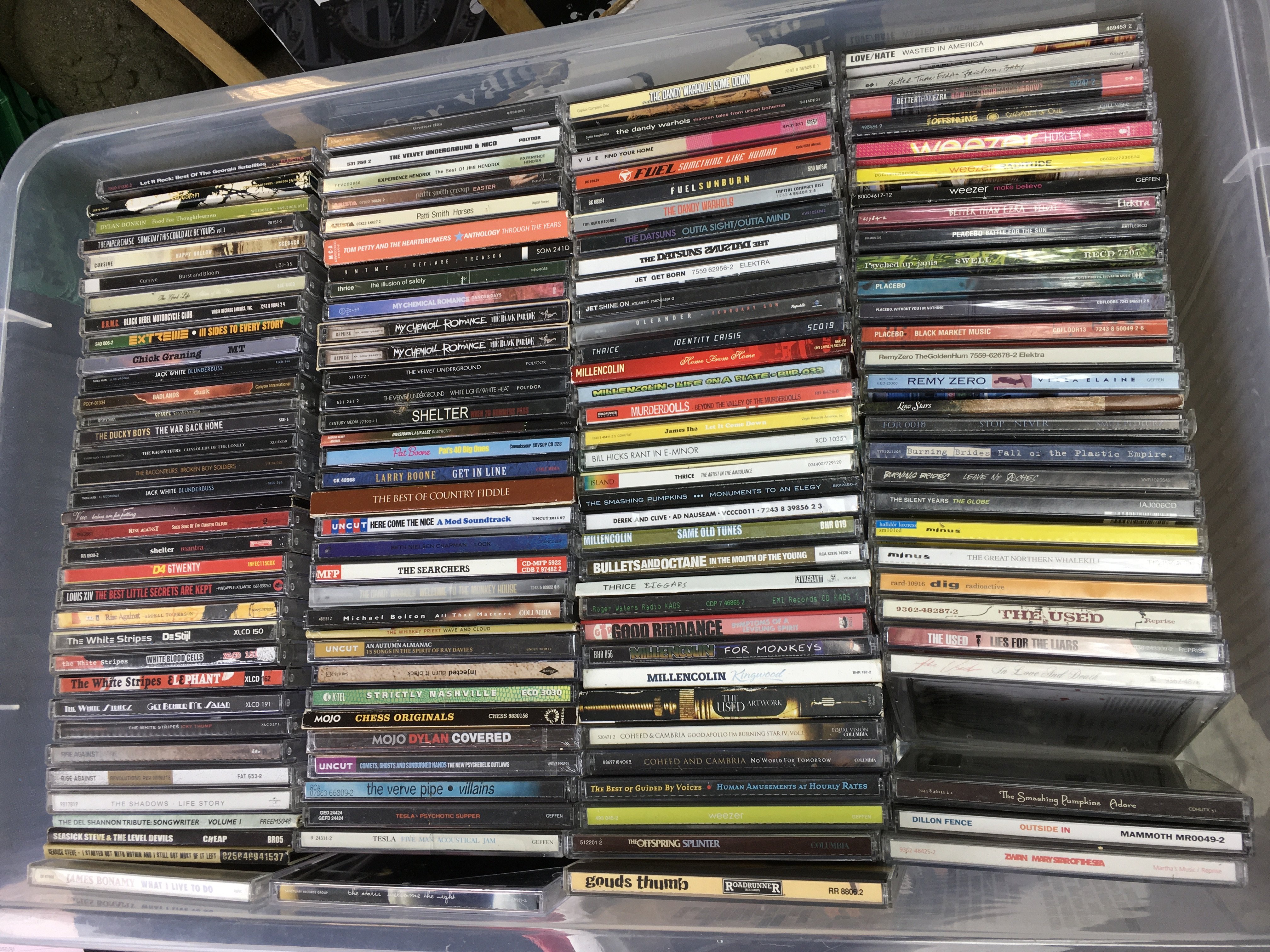 Ten boxes of CDs by various artists including Jimi Hendrix, My Chemical Romance, Weezer, Bob Mould and many more.