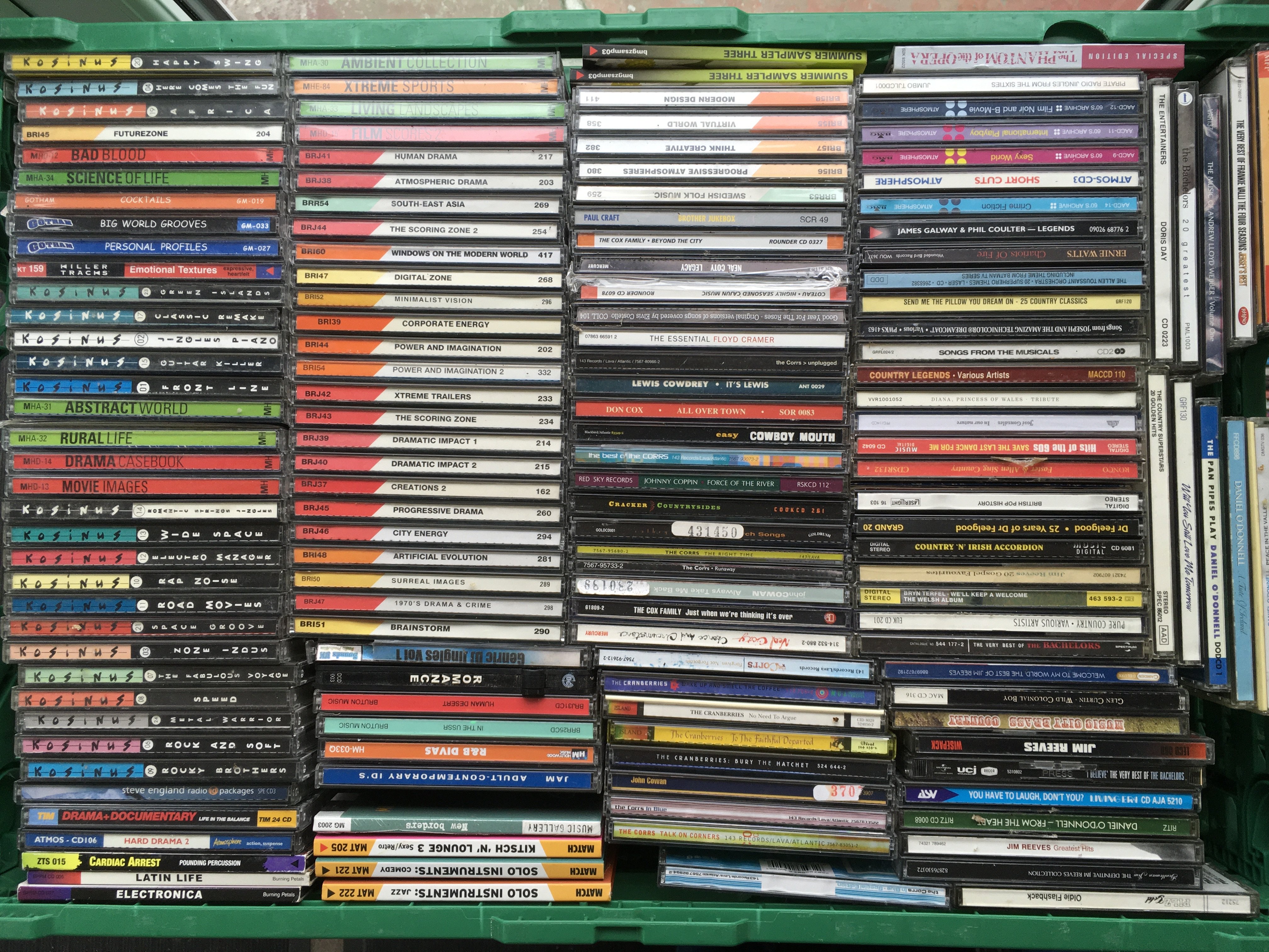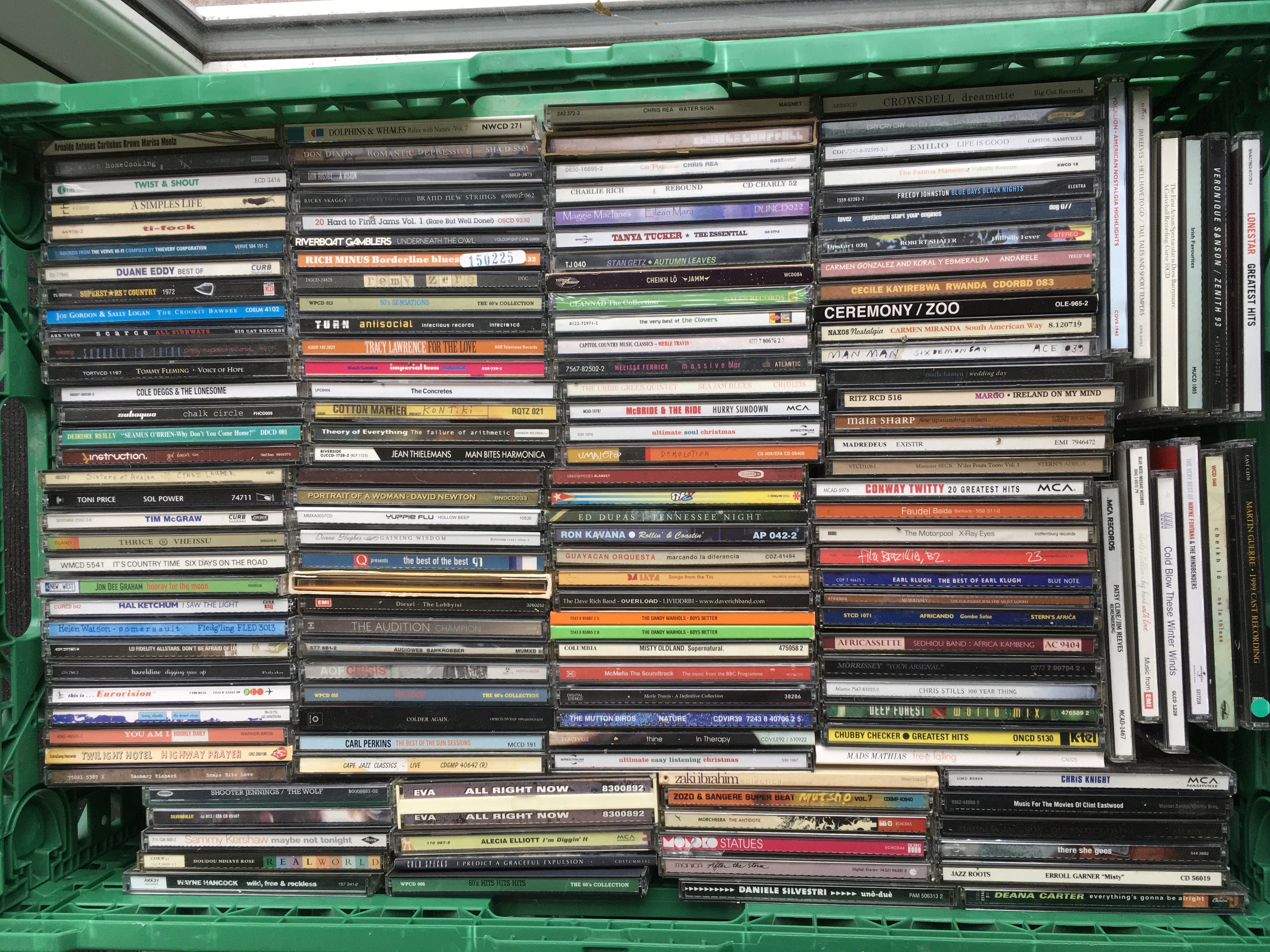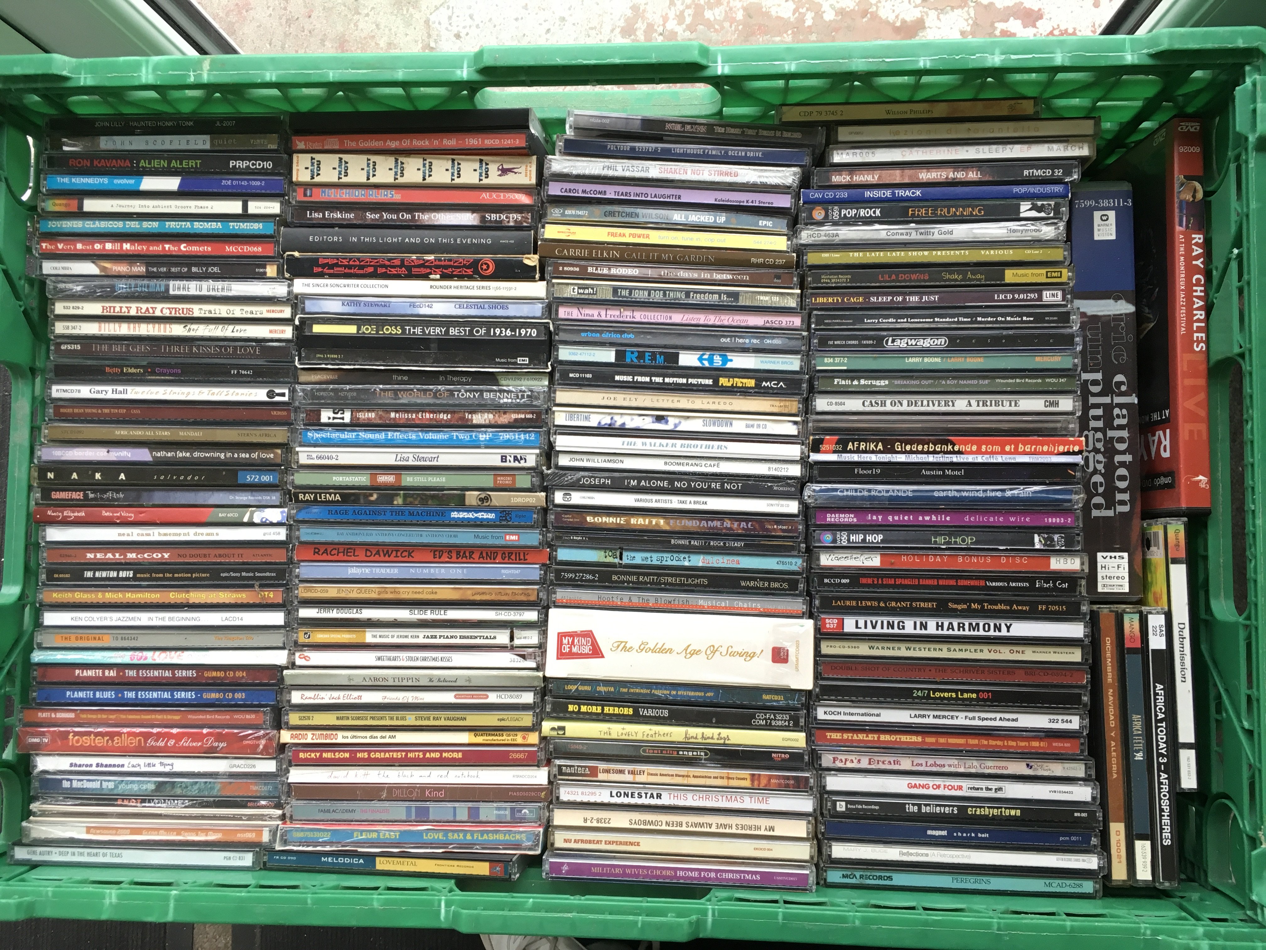 Ten boxes of CDs by various artists including Jimi Hendrix, My Chemical Romance, Weezer, Bob Mould and many more.