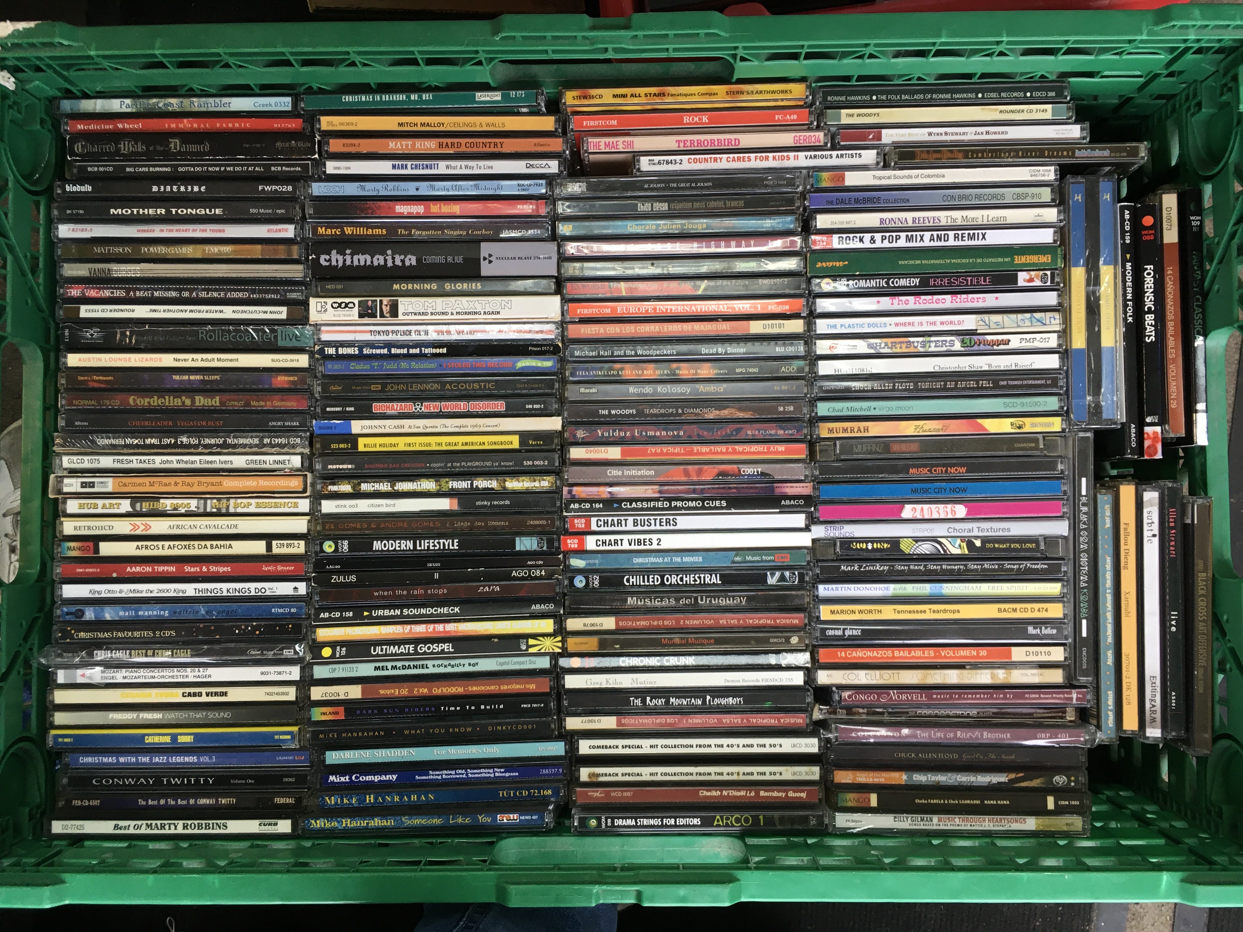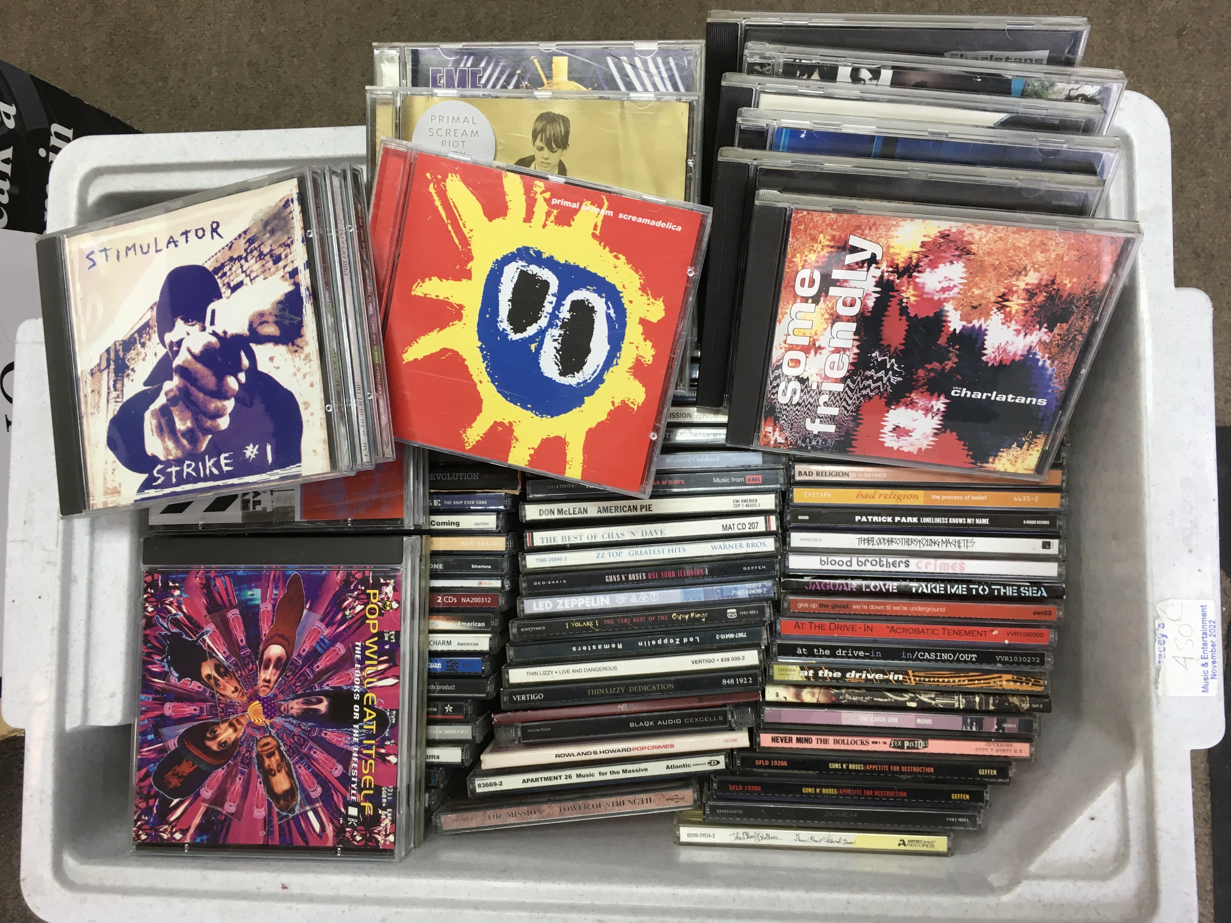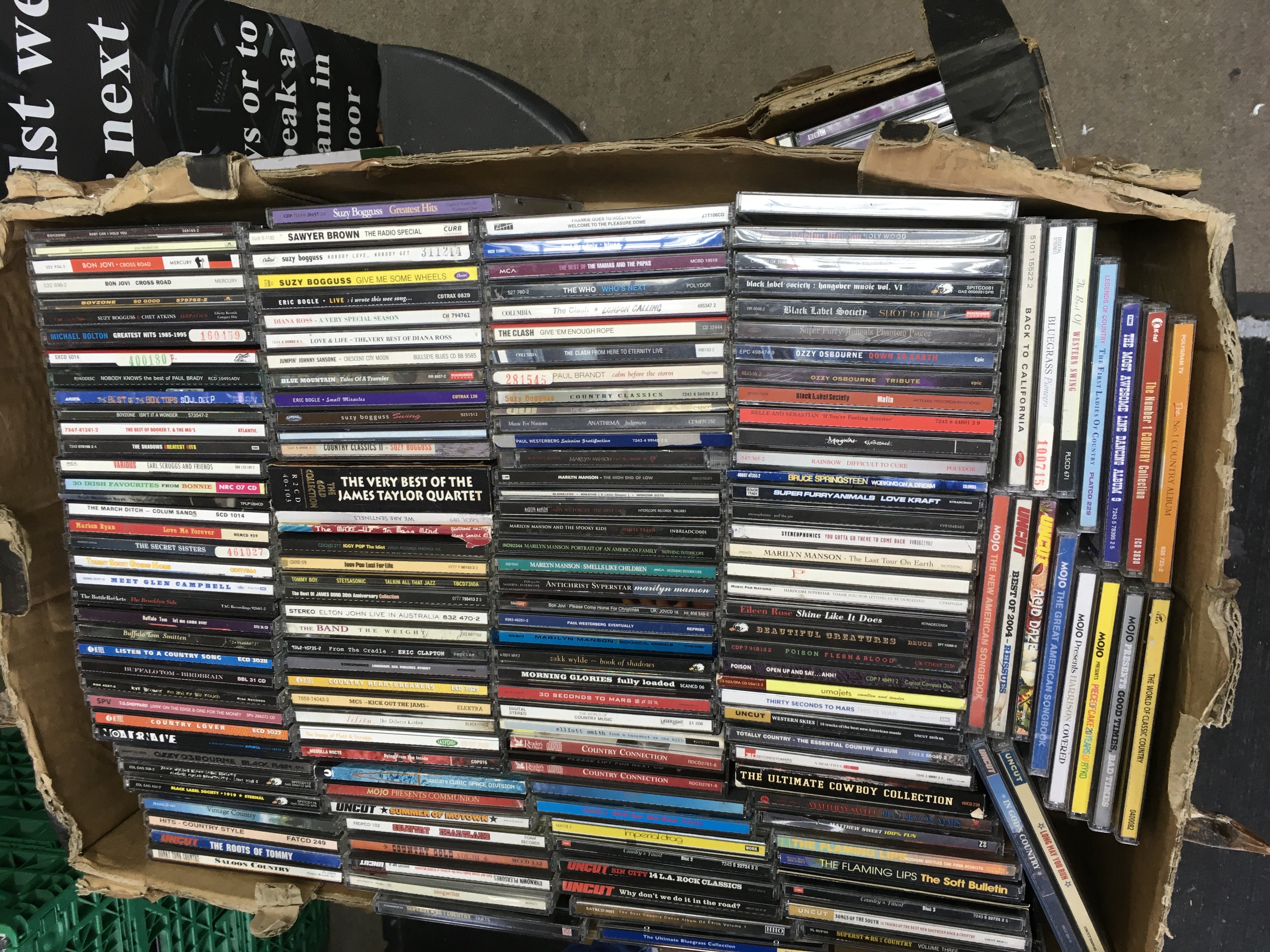 Eleven boxes of CDs by various artists including The Clash, The Charlatans, Elliott Smith, MC5 and many more.
