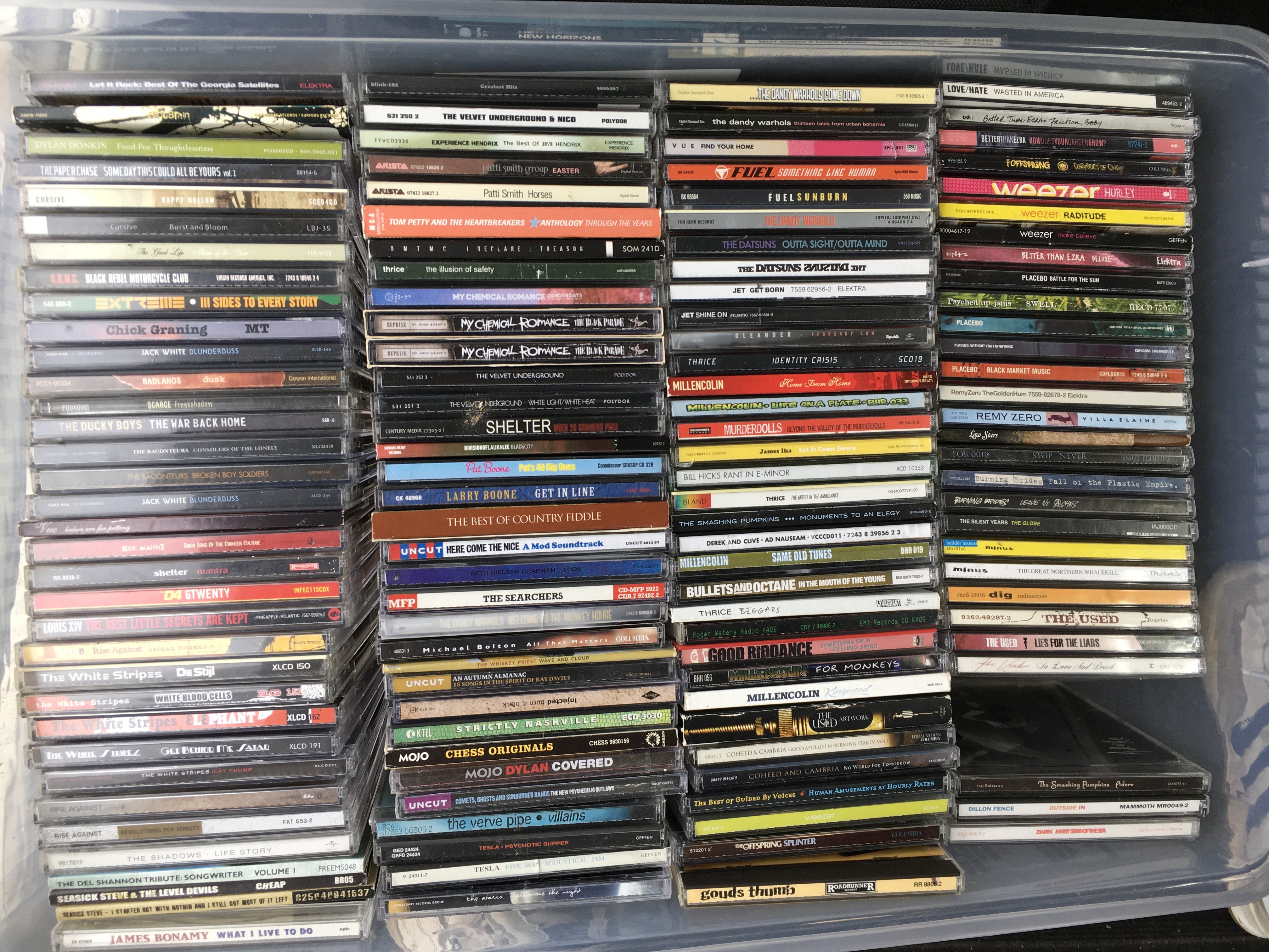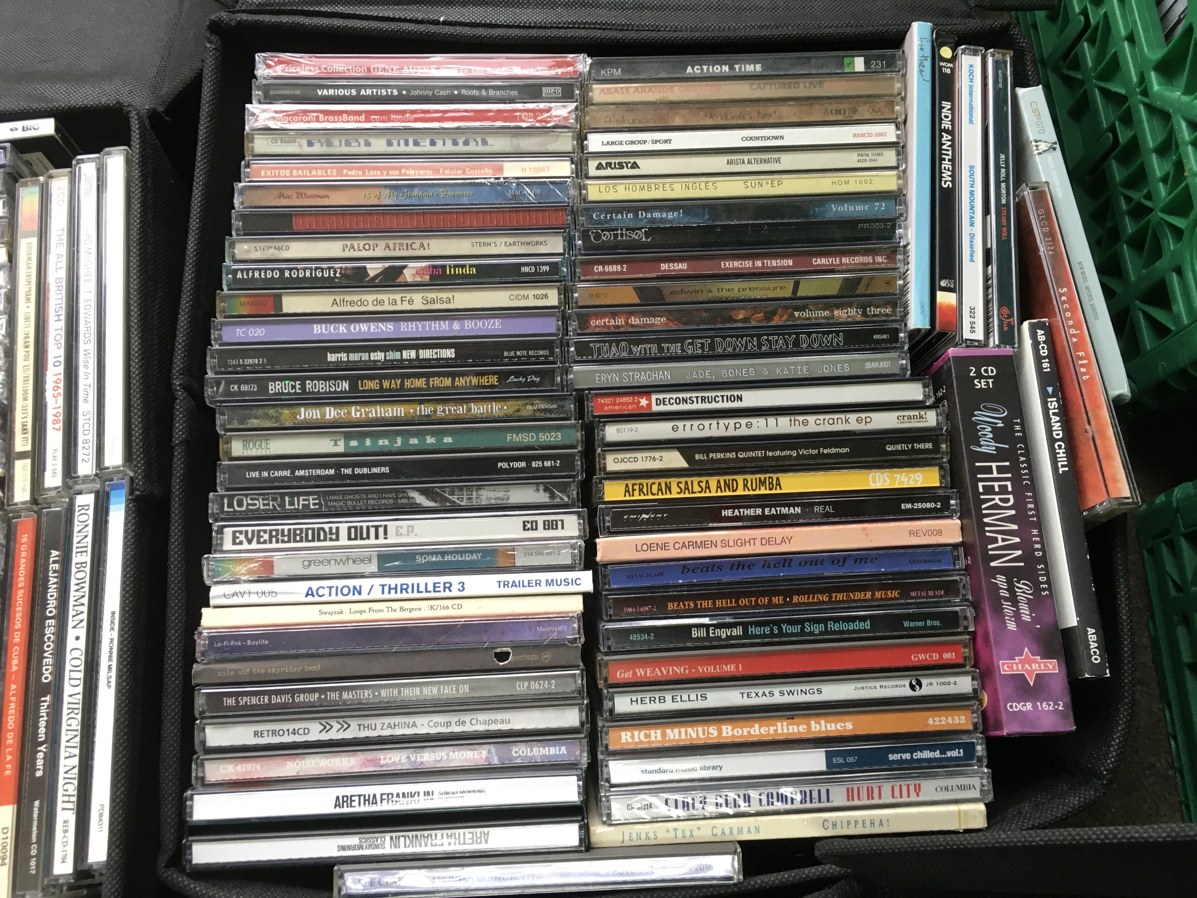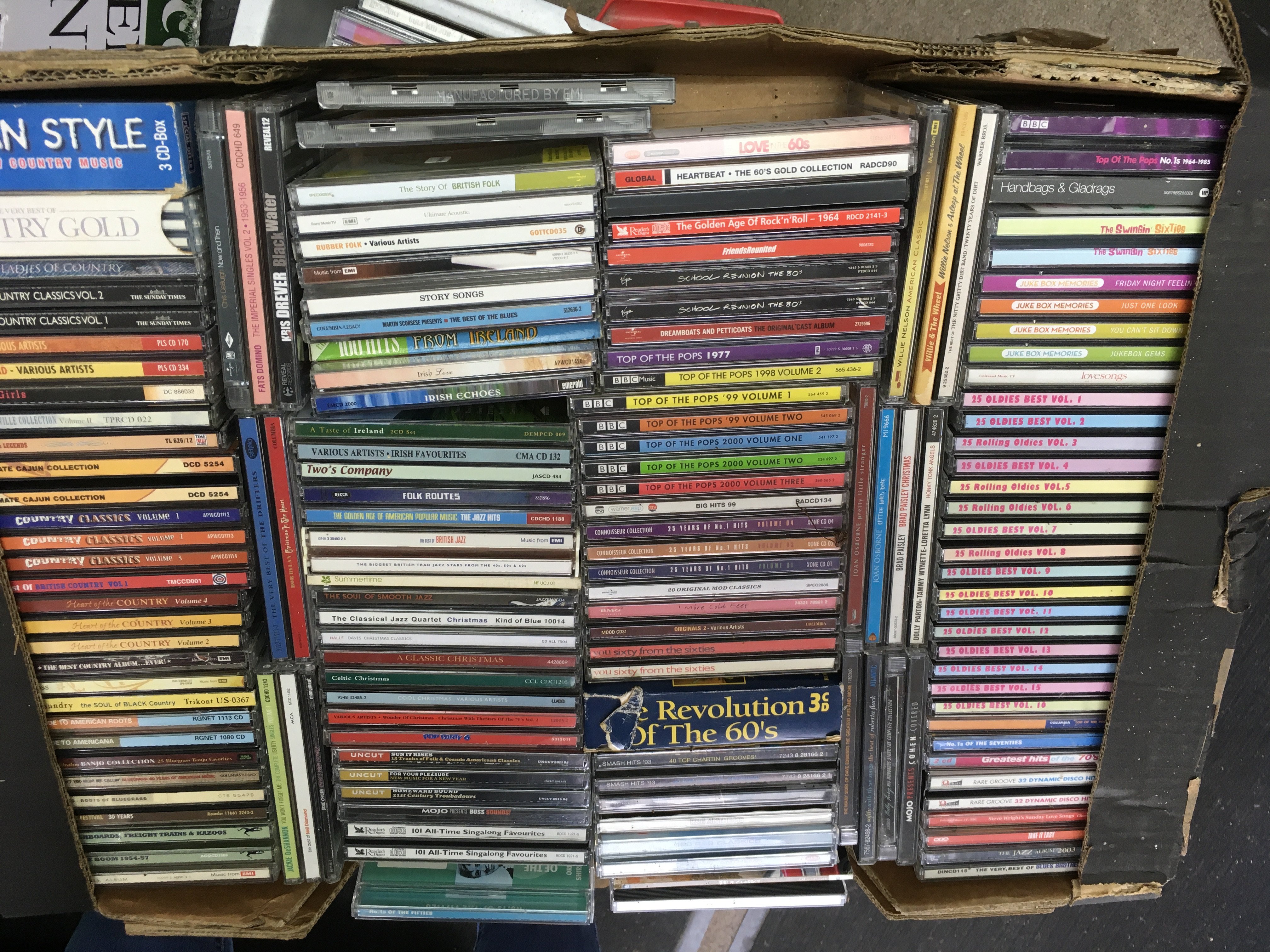Eleven boxes of CDs by various artists including The Clash, The Charlatans, Elliott Smith, MC5 and many more.
