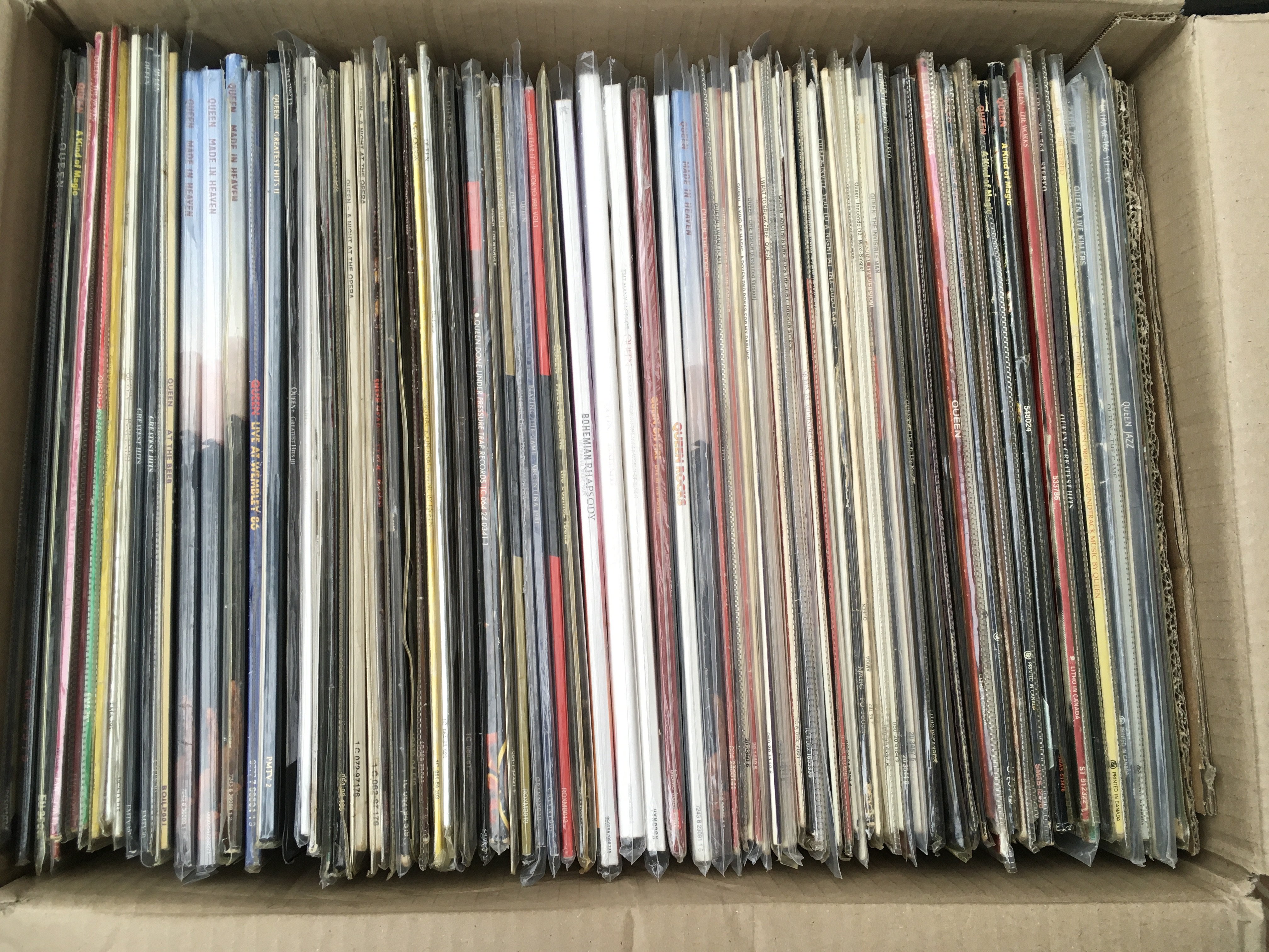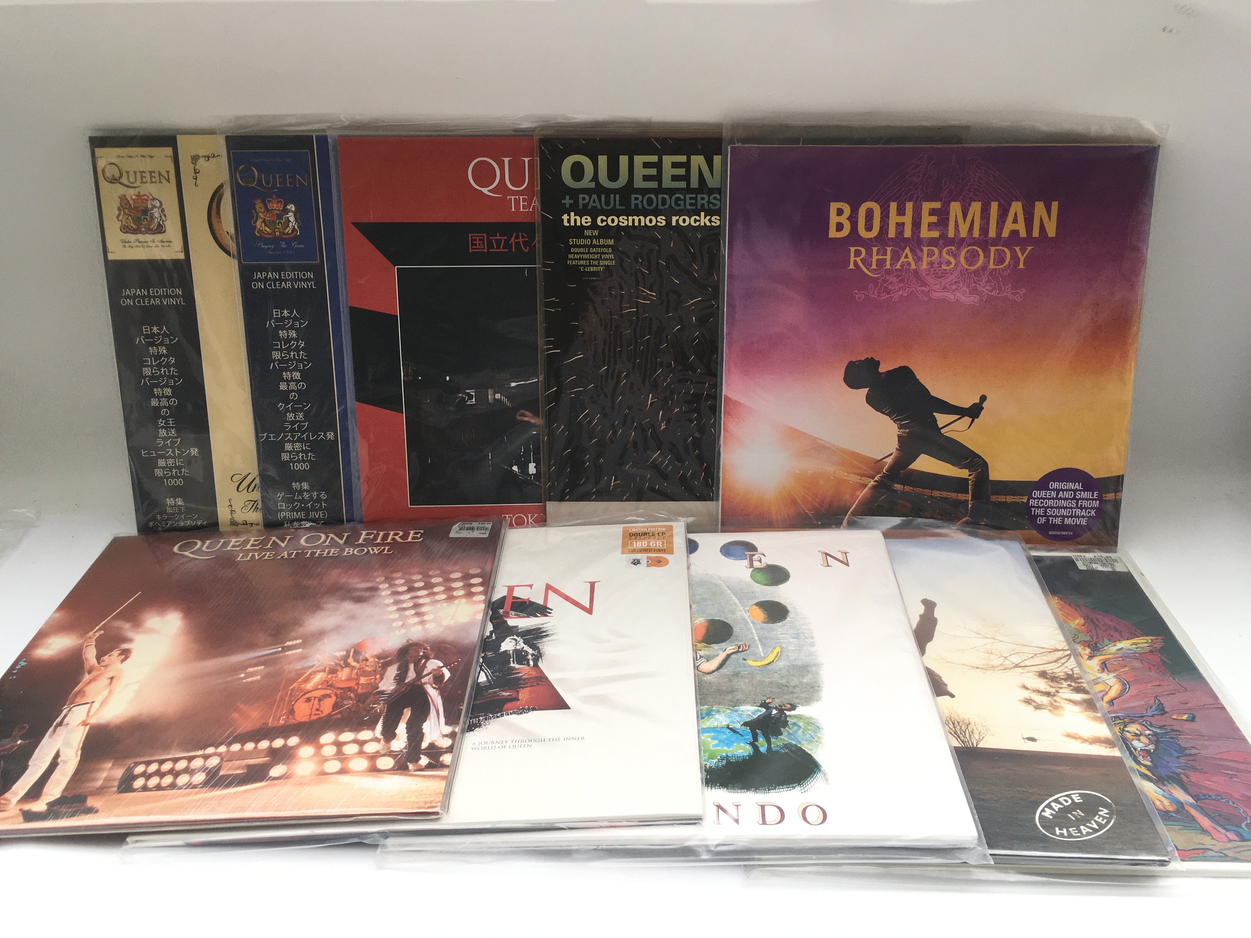 A box of Queen and related LPs and 12" singles including Japanese pressings, coloured vinyl and 180g pressings.