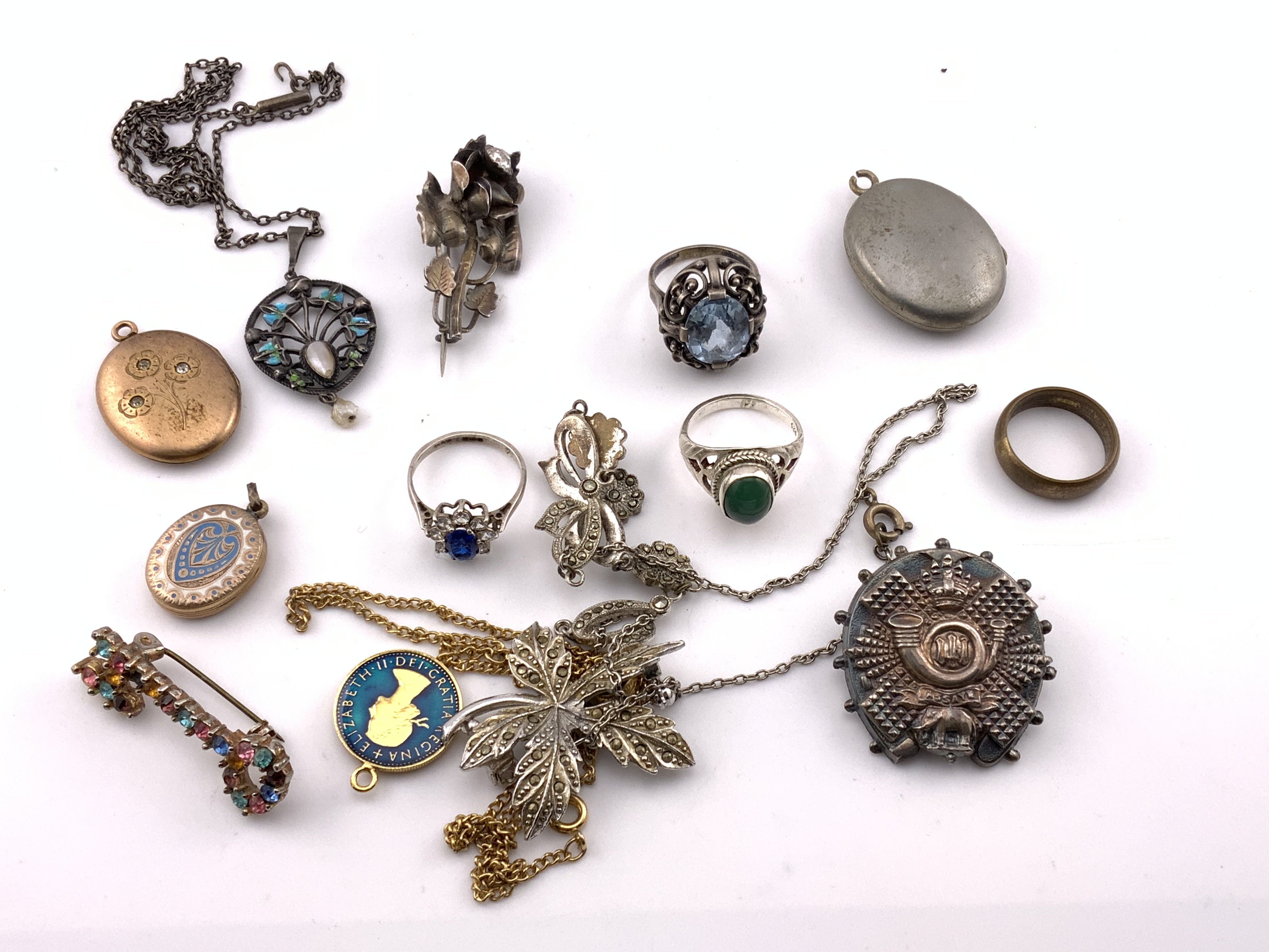 A small mixed collection of costume jewellery to include a small arts and crafts enamel and seed pearl pendant.. (A)