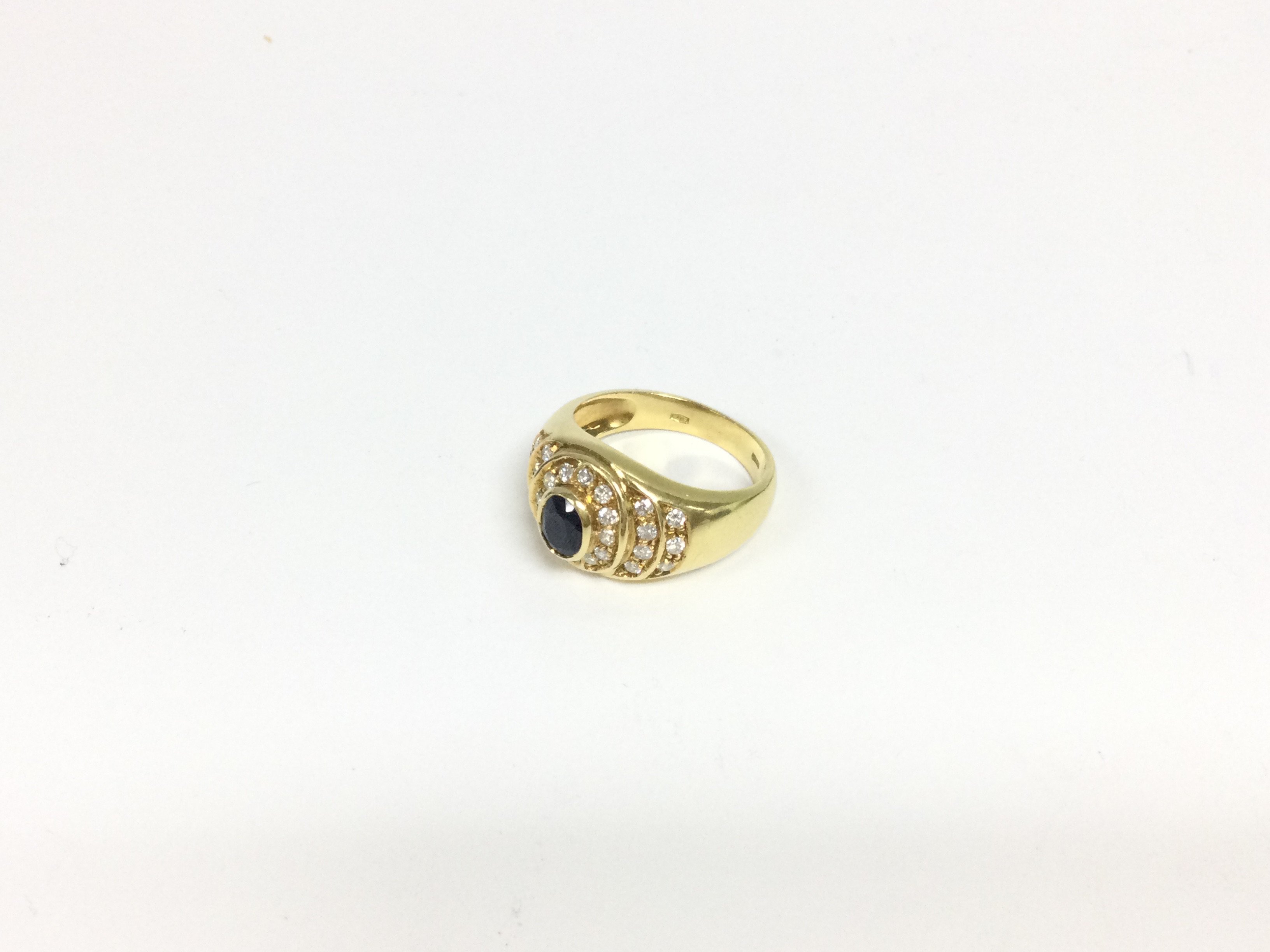 A sapphire and diamond ring in yellow 18ct gold stamped 750. Approx weight 6.40 grams, size N.