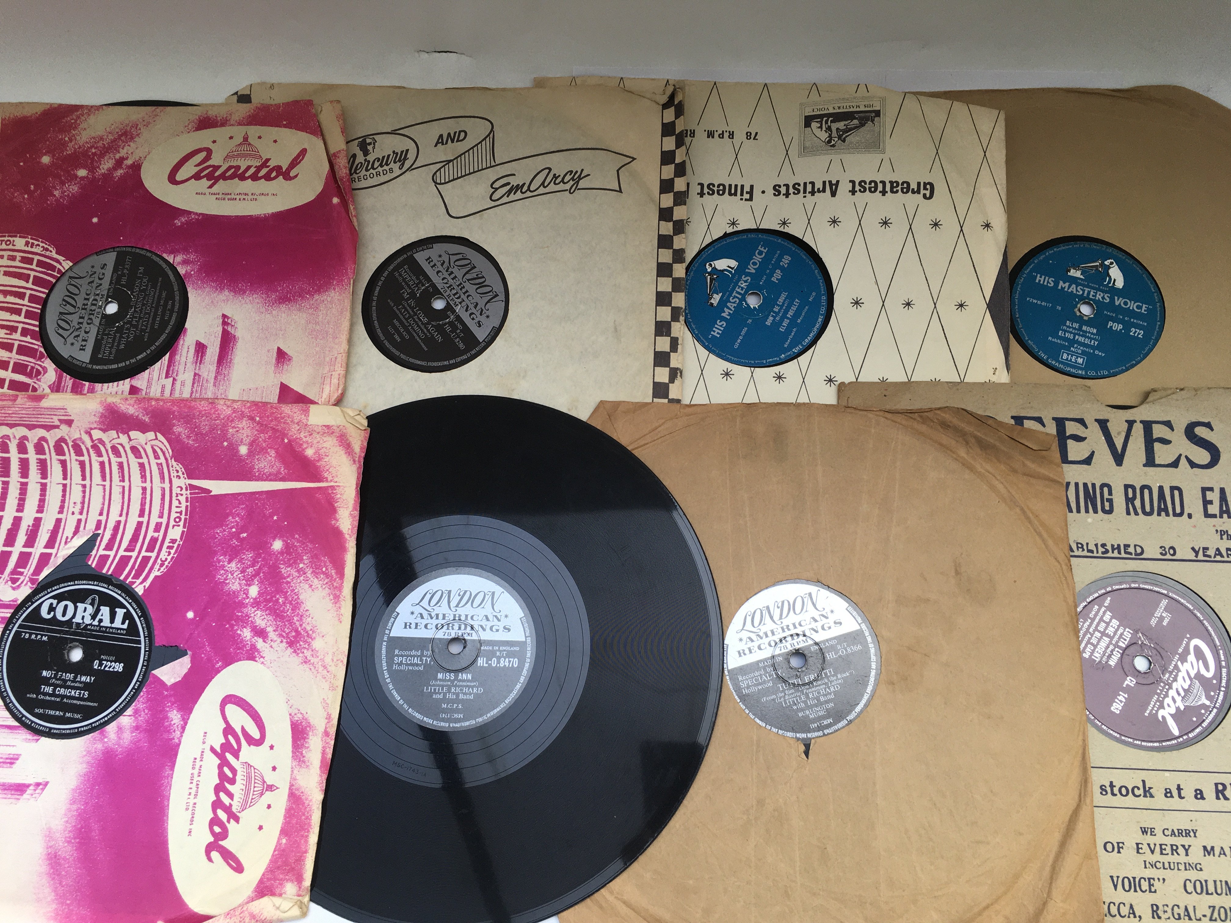 A small collection of 78s by various artists including Elvis Presley, Gene Vincent, Little Richard and others.