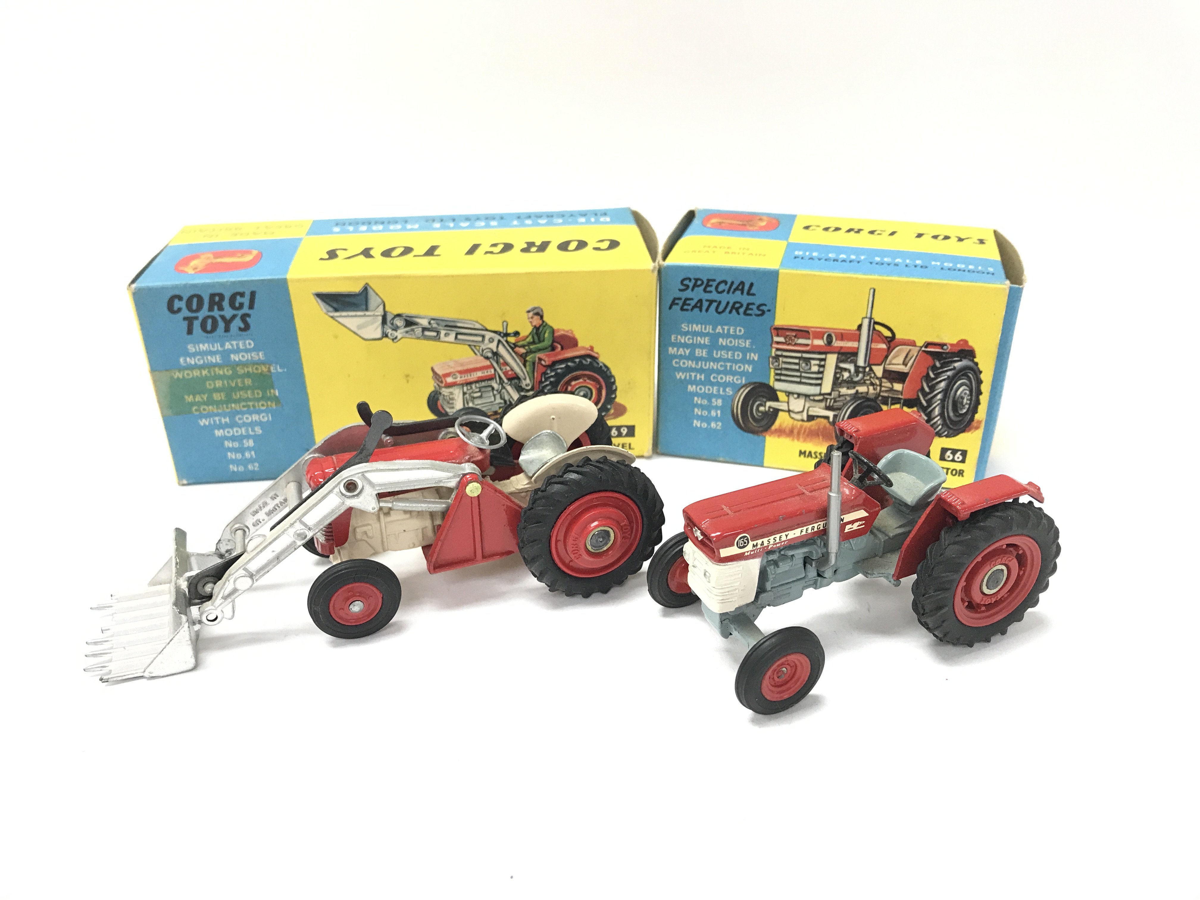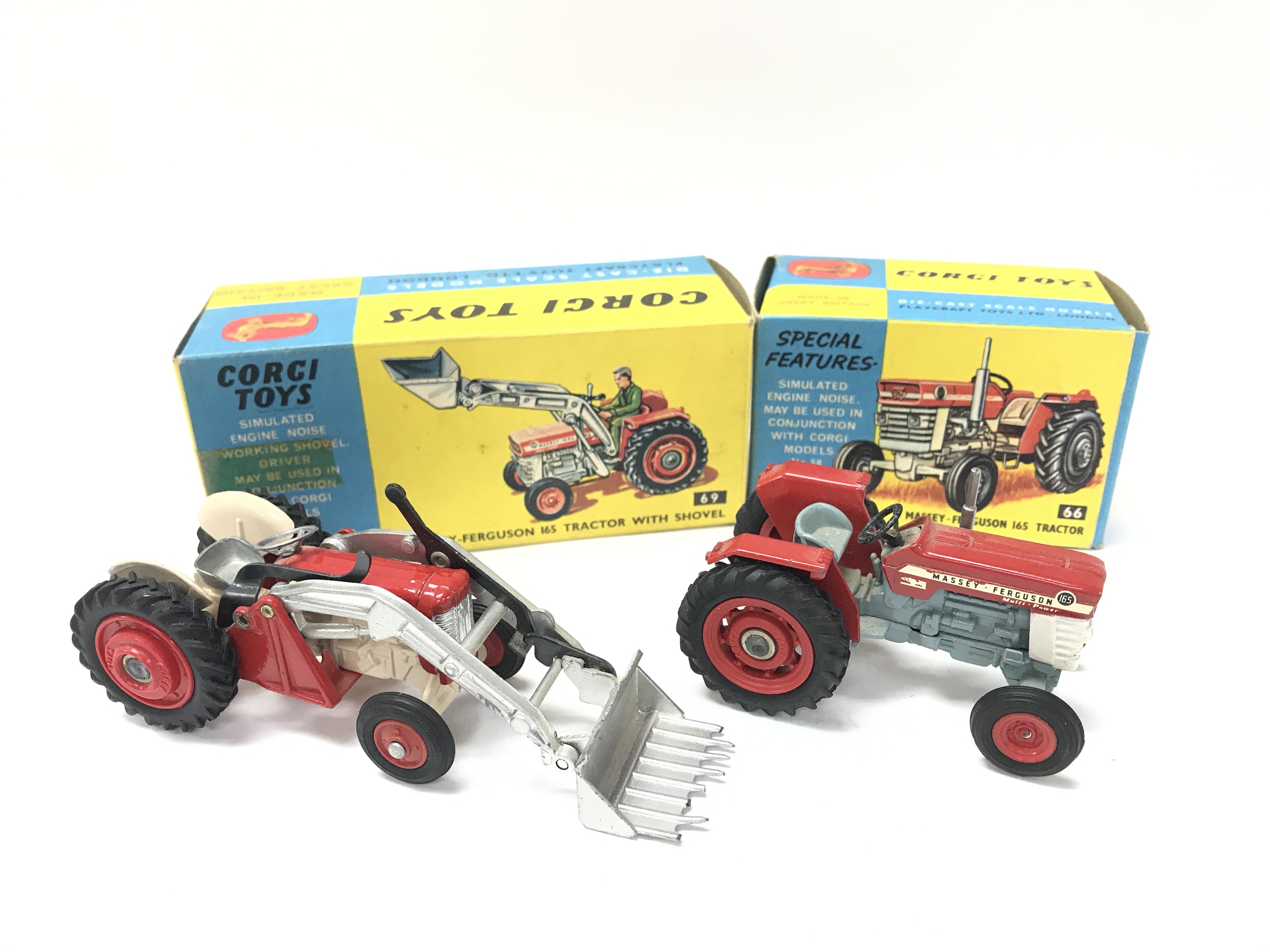 A Boxed Corgi Massey-Ferguson 165 Tractor With Shovel #69 and a Massey-Ferguson 165 Tractor #66