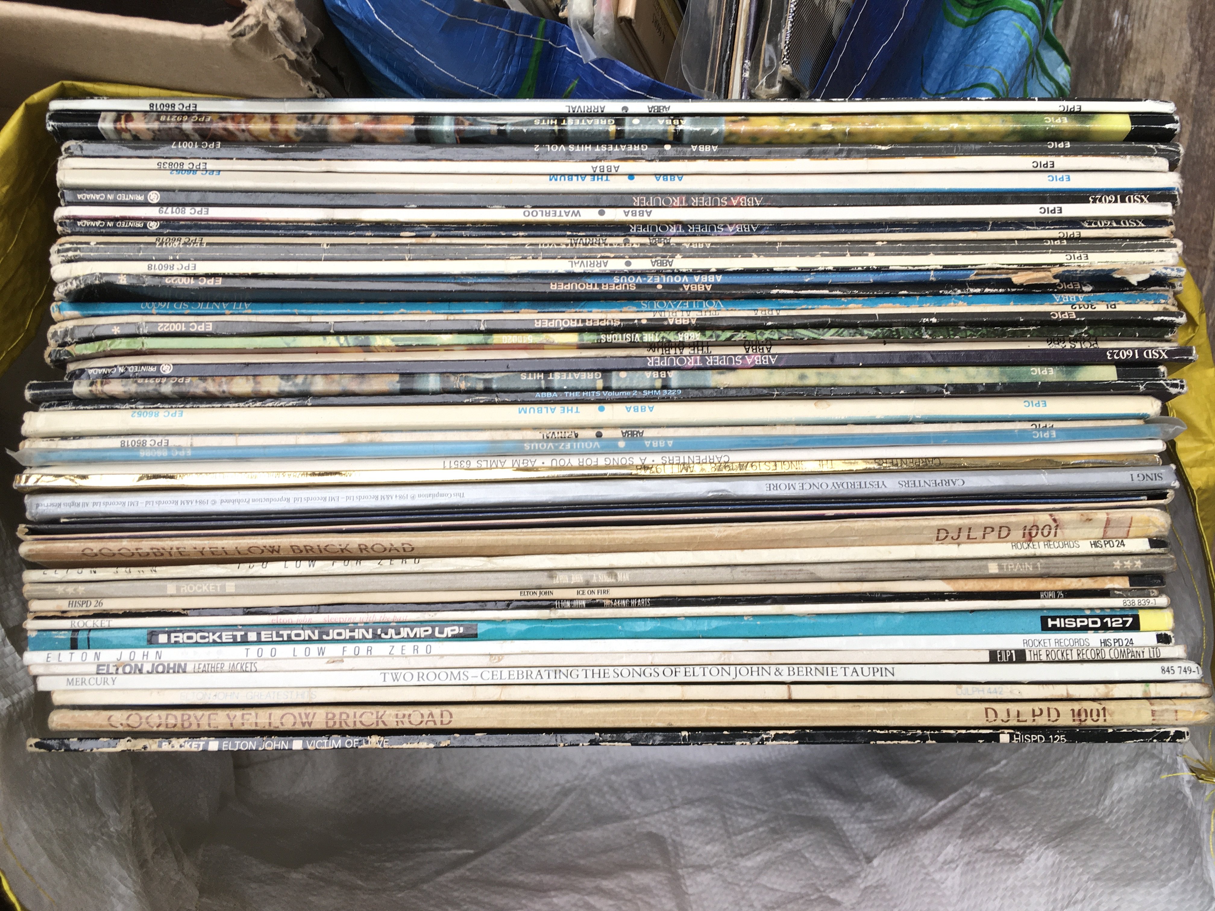 A collection of LPs by Elton John, ABBA and The Carpenters.