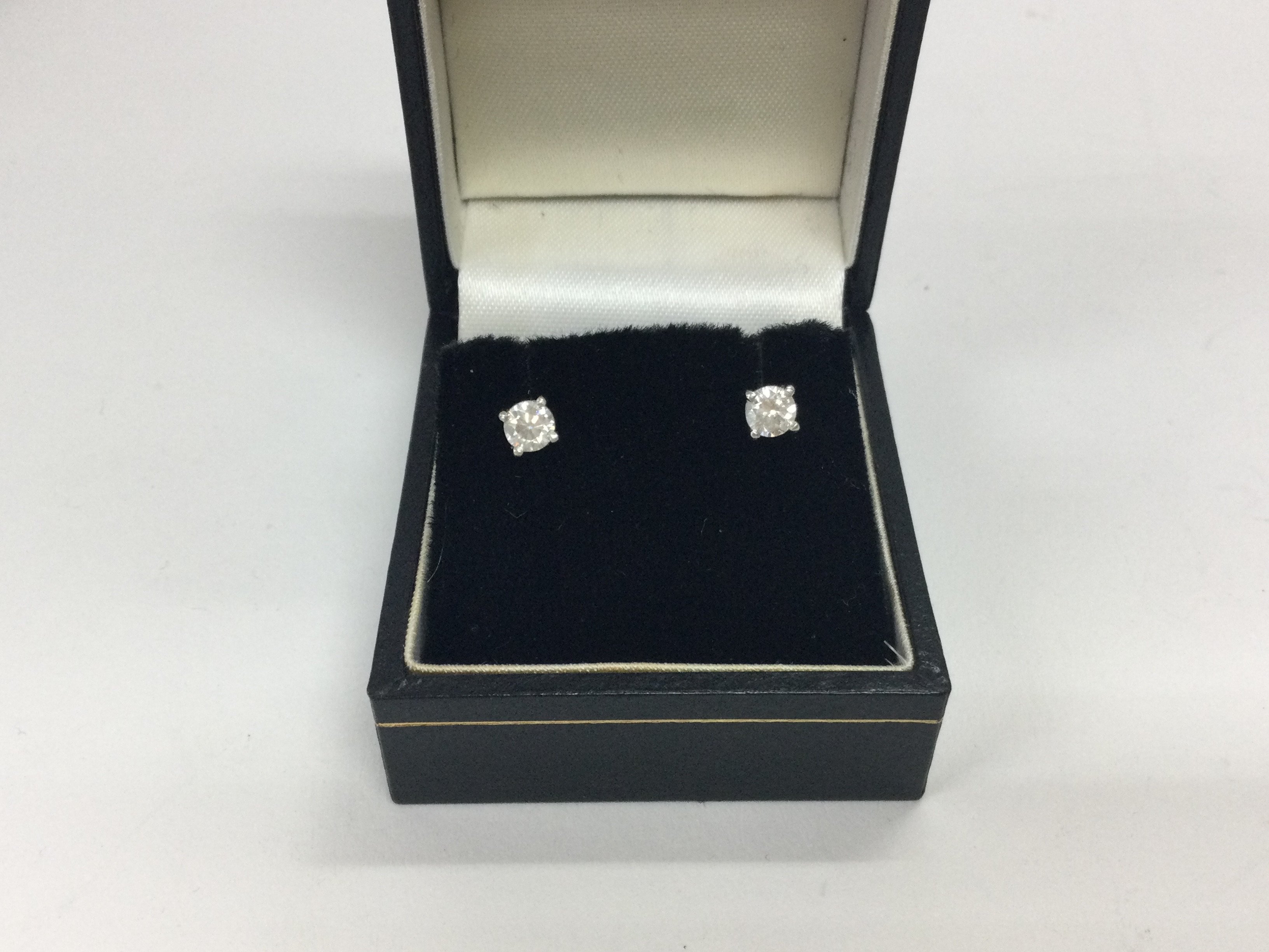 A pair of 9ct white gold diamond set studs. Approx diamond size 0.30cm each studs, overall approx 0.60cts.