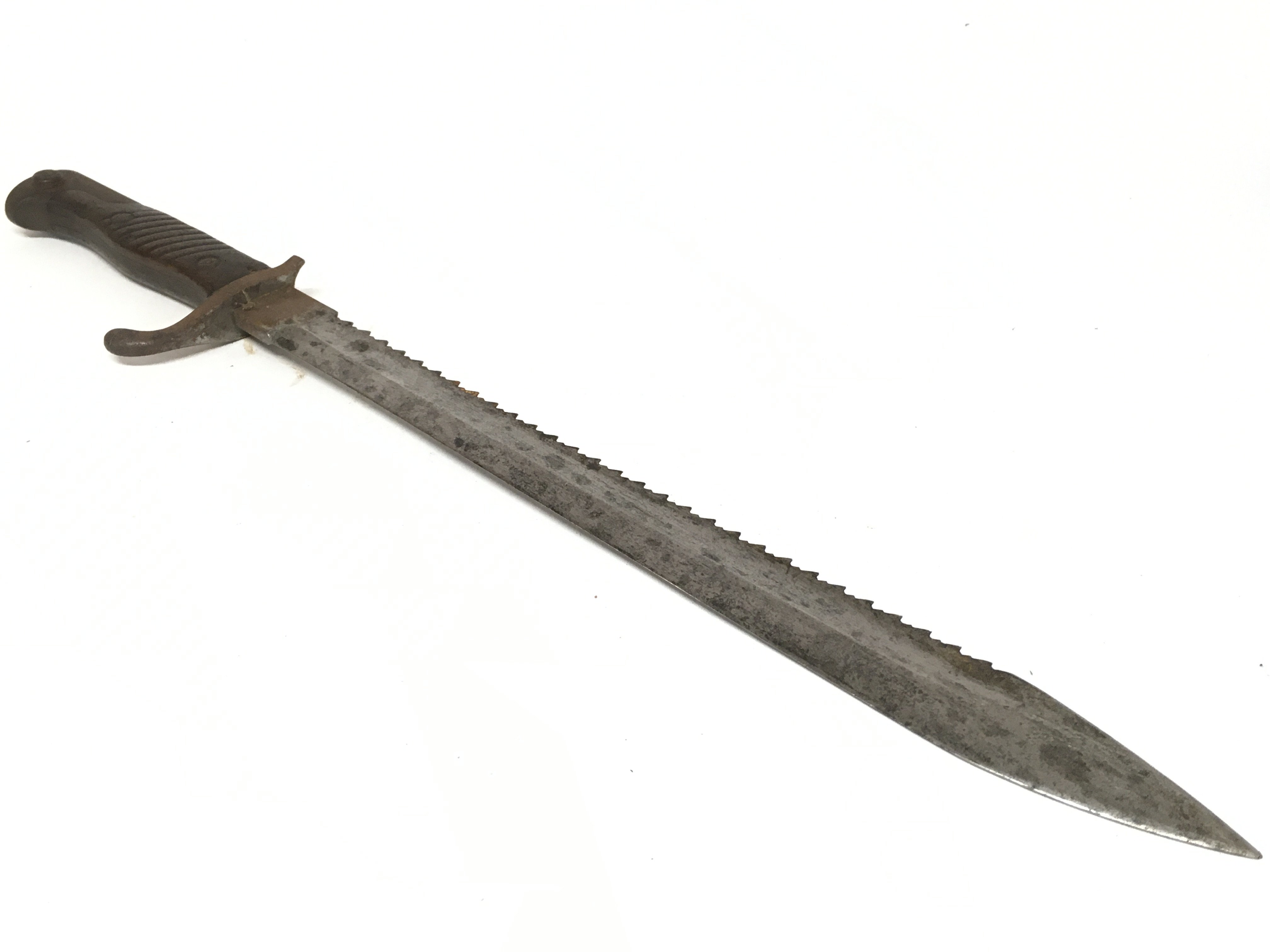 A German WWI Sawback bayonet, blade 37cm long. Total length 50cm. This lot cannot be posted