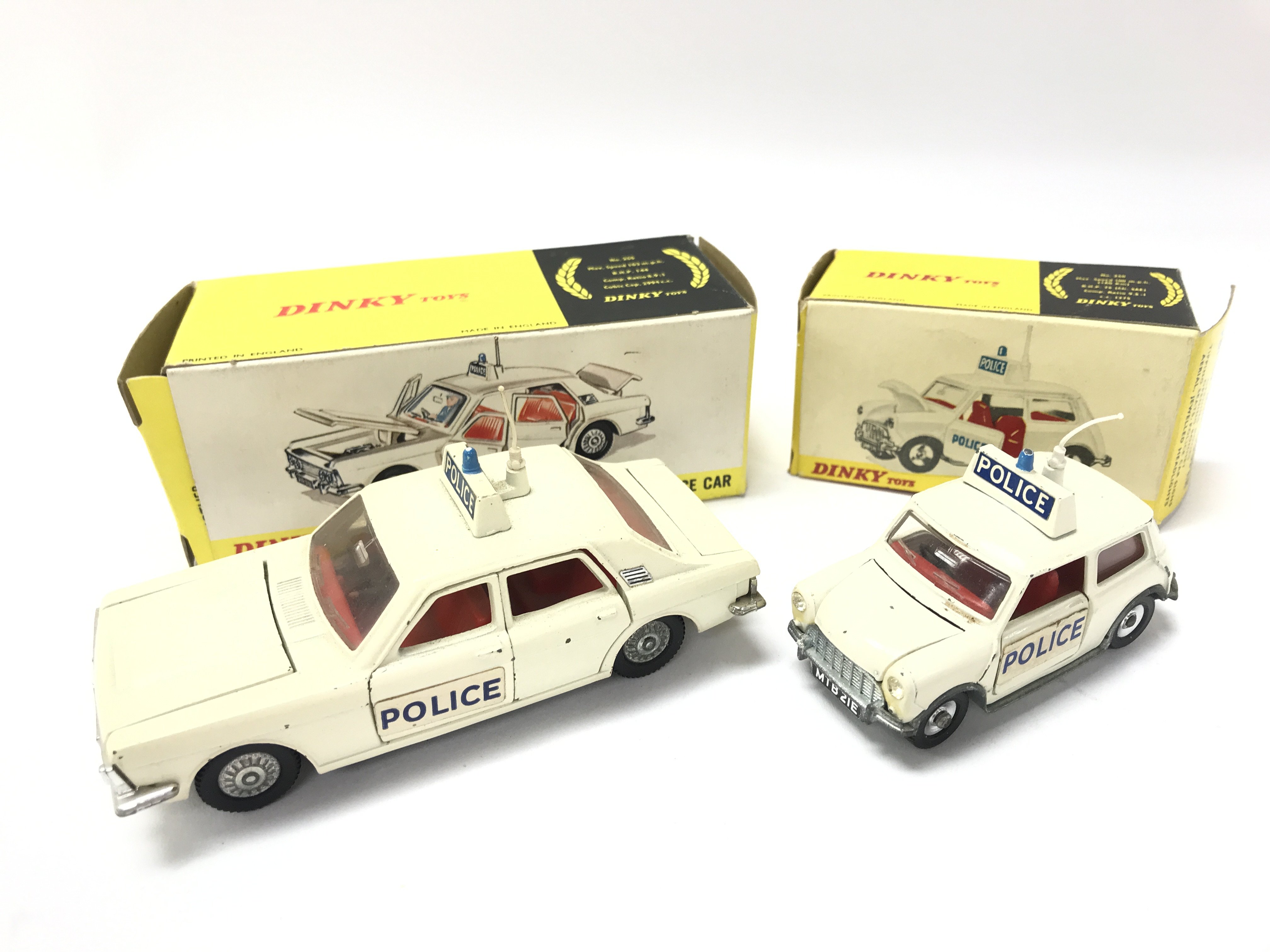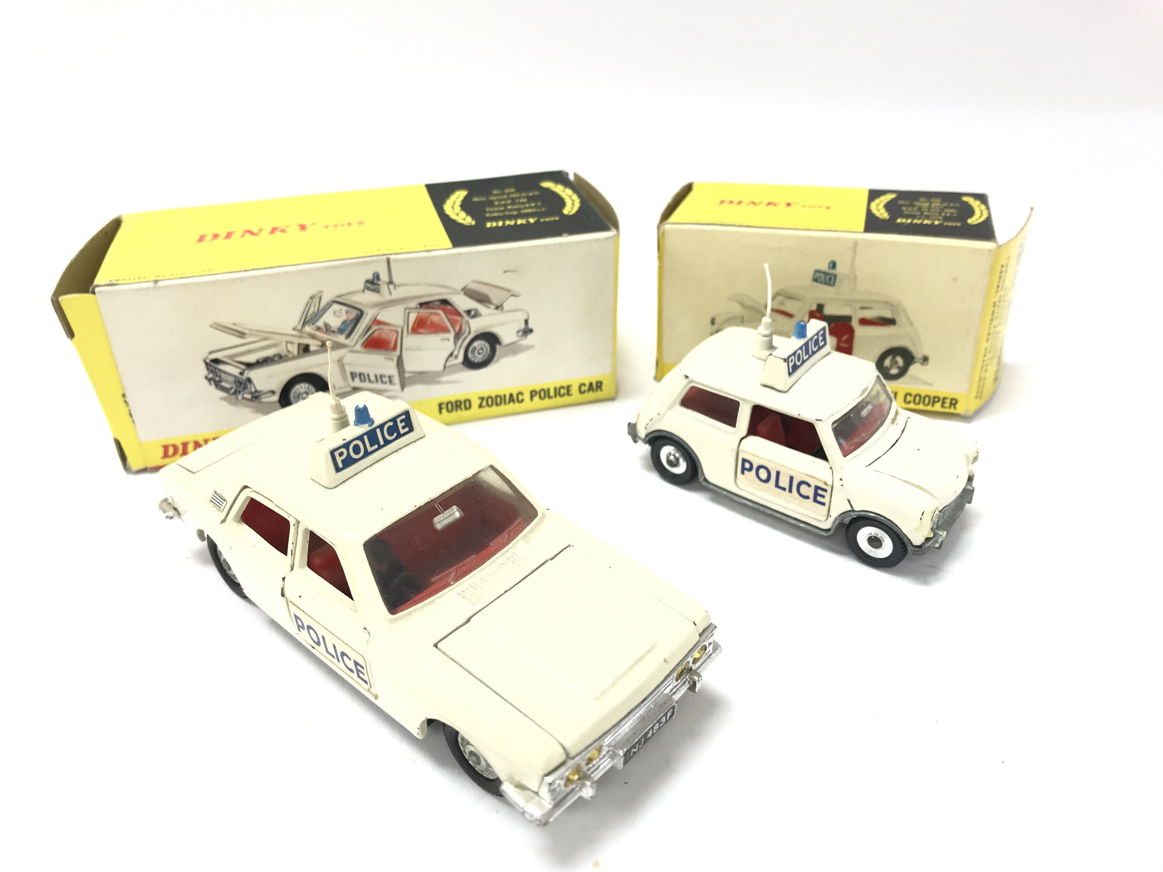 A Boxed Dinky Ford Zodiac Police Car #255 and a Police Mini Cooper #250.