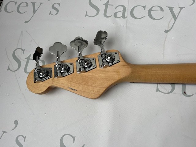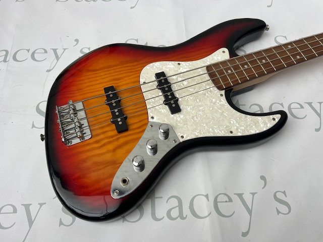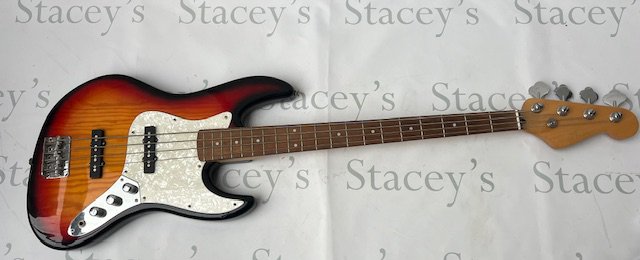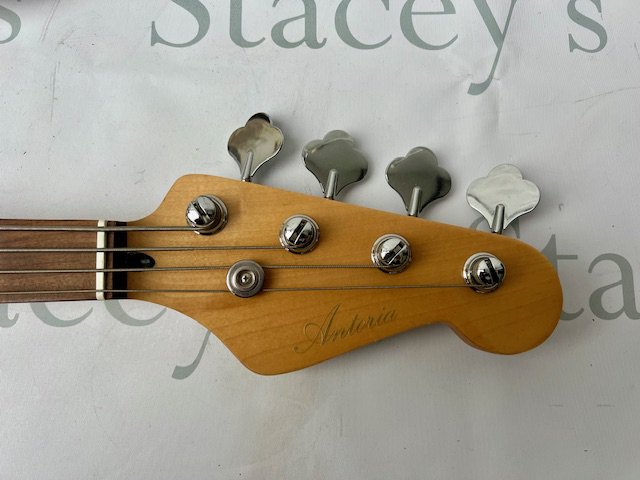 An Antoria (modern era) J Bass replica Bass Guitar in sunburst with chrome parts and pearloid pick guard. Overall unplayed condition with little evidence of any foreswear. No case. Will require a setup and fret polish as appears to be still in factory/store set up.
