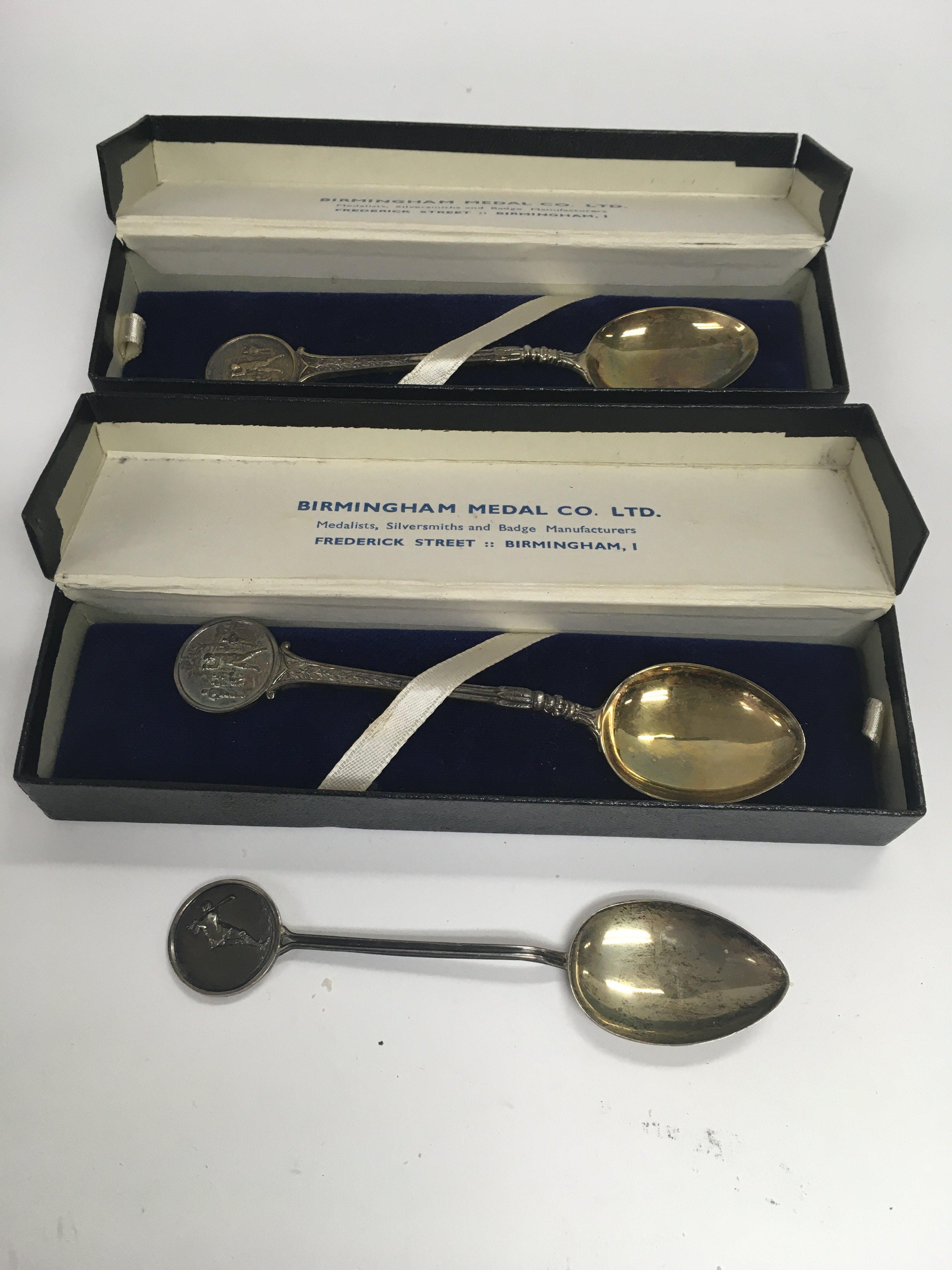 3 silver hallmarked golf spoons two boxed. Approx weight 40.70 grams.