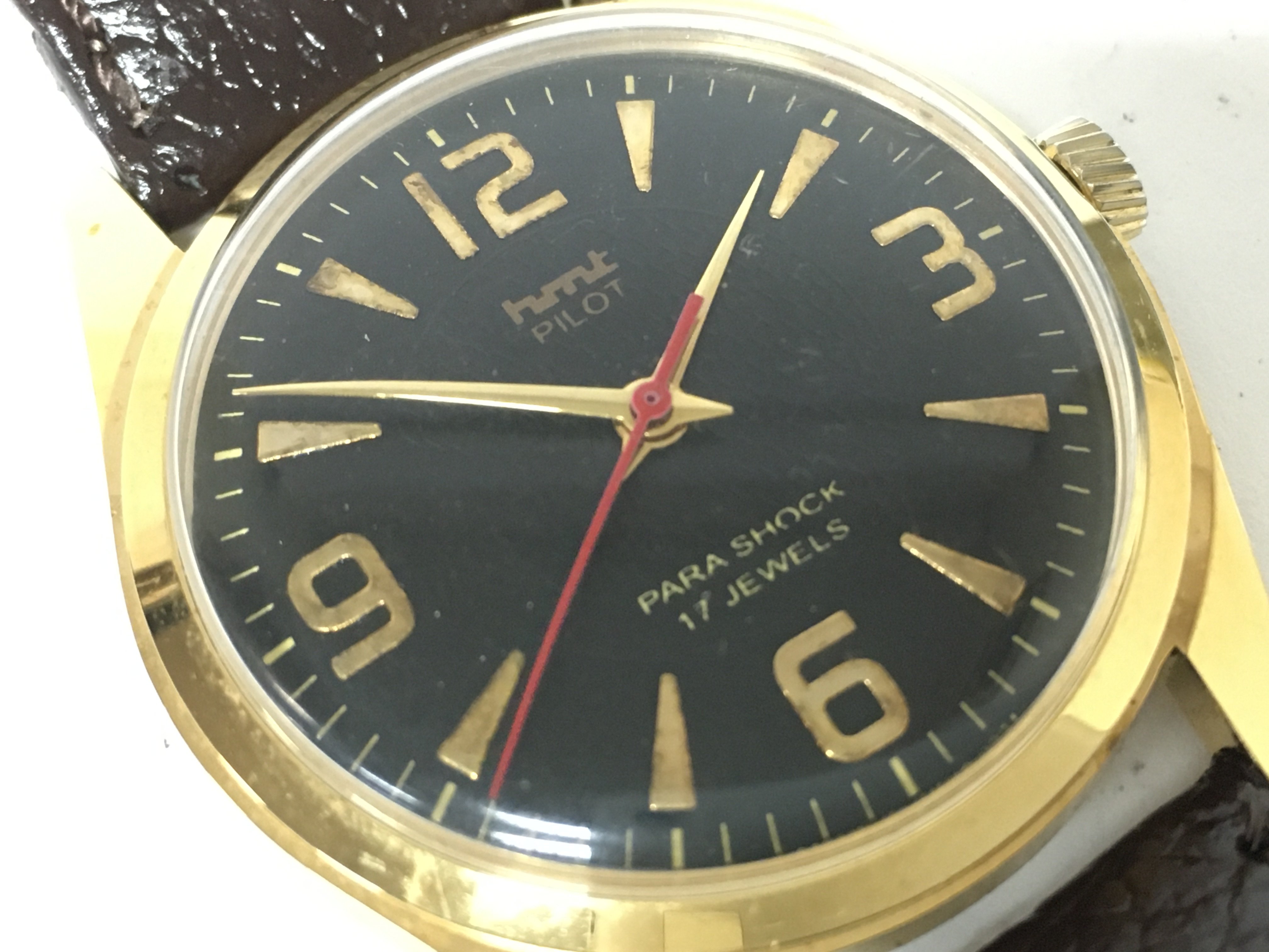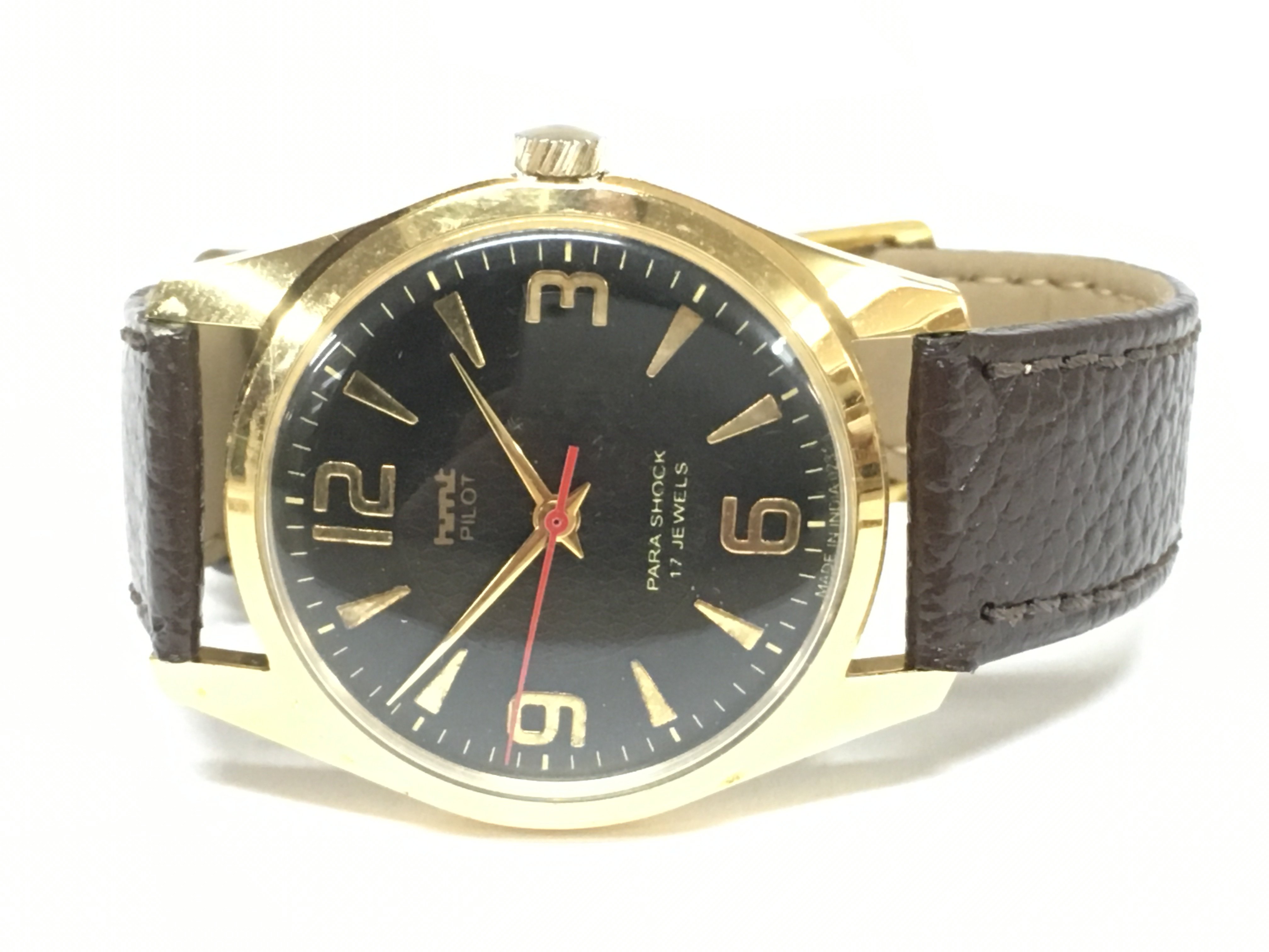 A vintage HMT pilot Manual wind watch, 36mm case, seen working. Postage category A