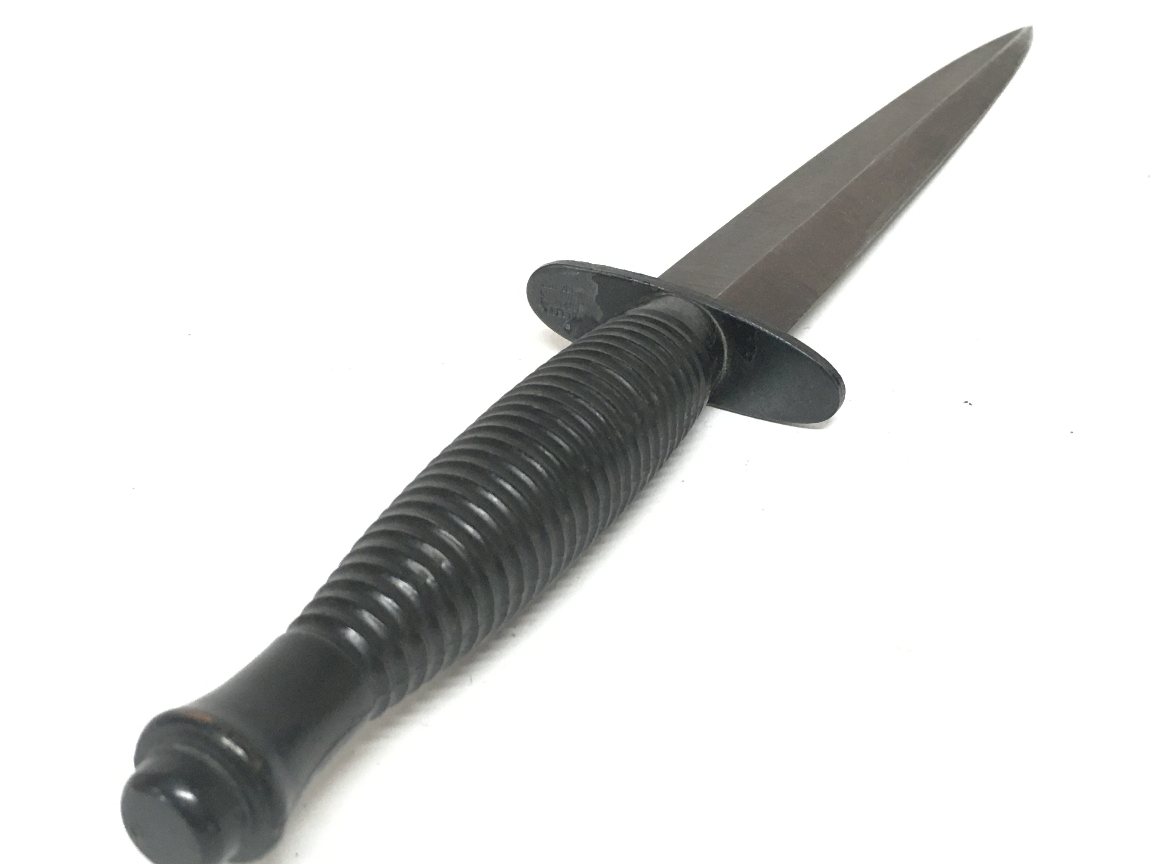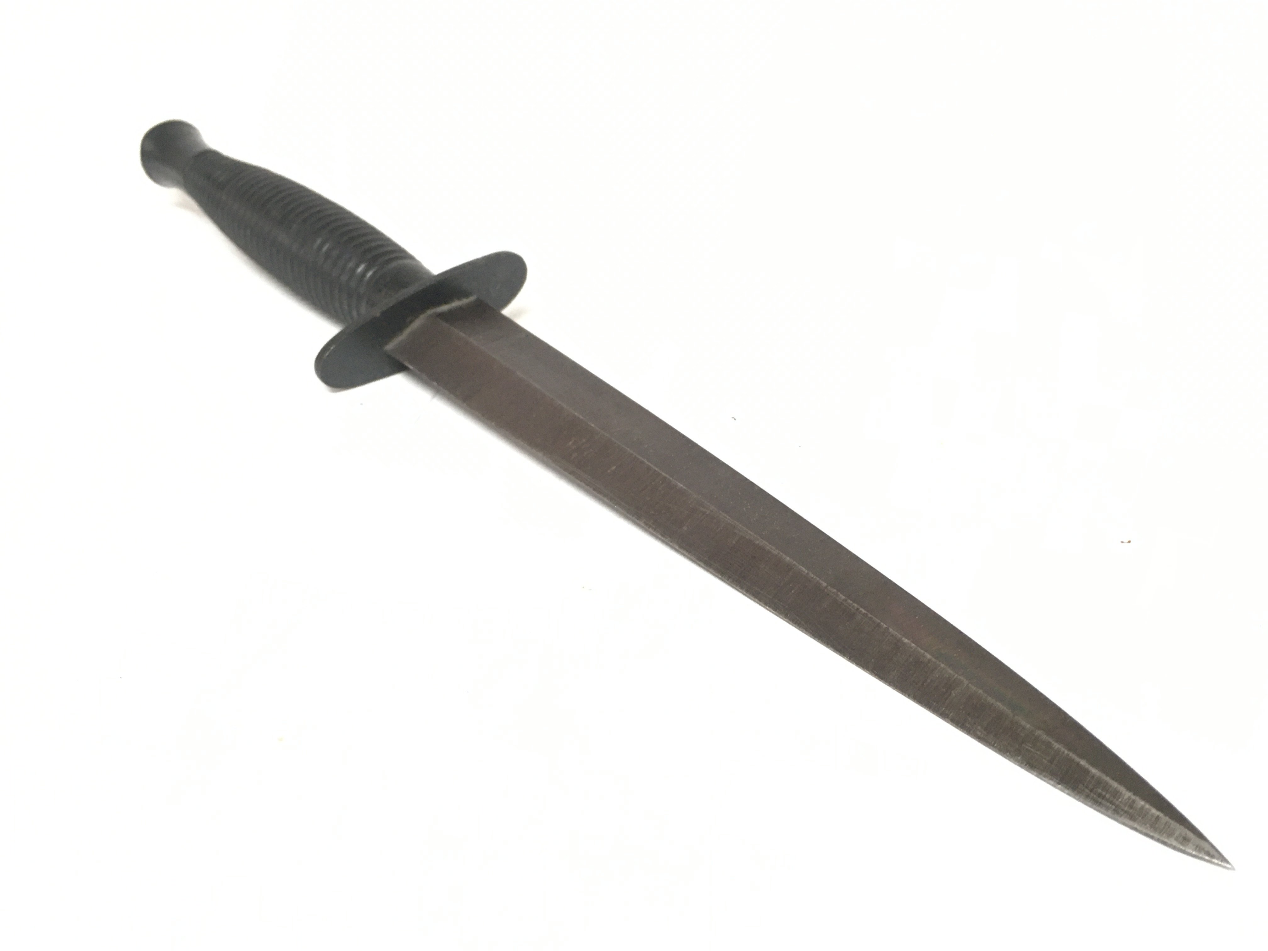 A vintage Fairbairn Sykes design commando knife by William Rodgers Sheffield. Blade 18cm long, total knife 30cm long. This lot cannot be posted