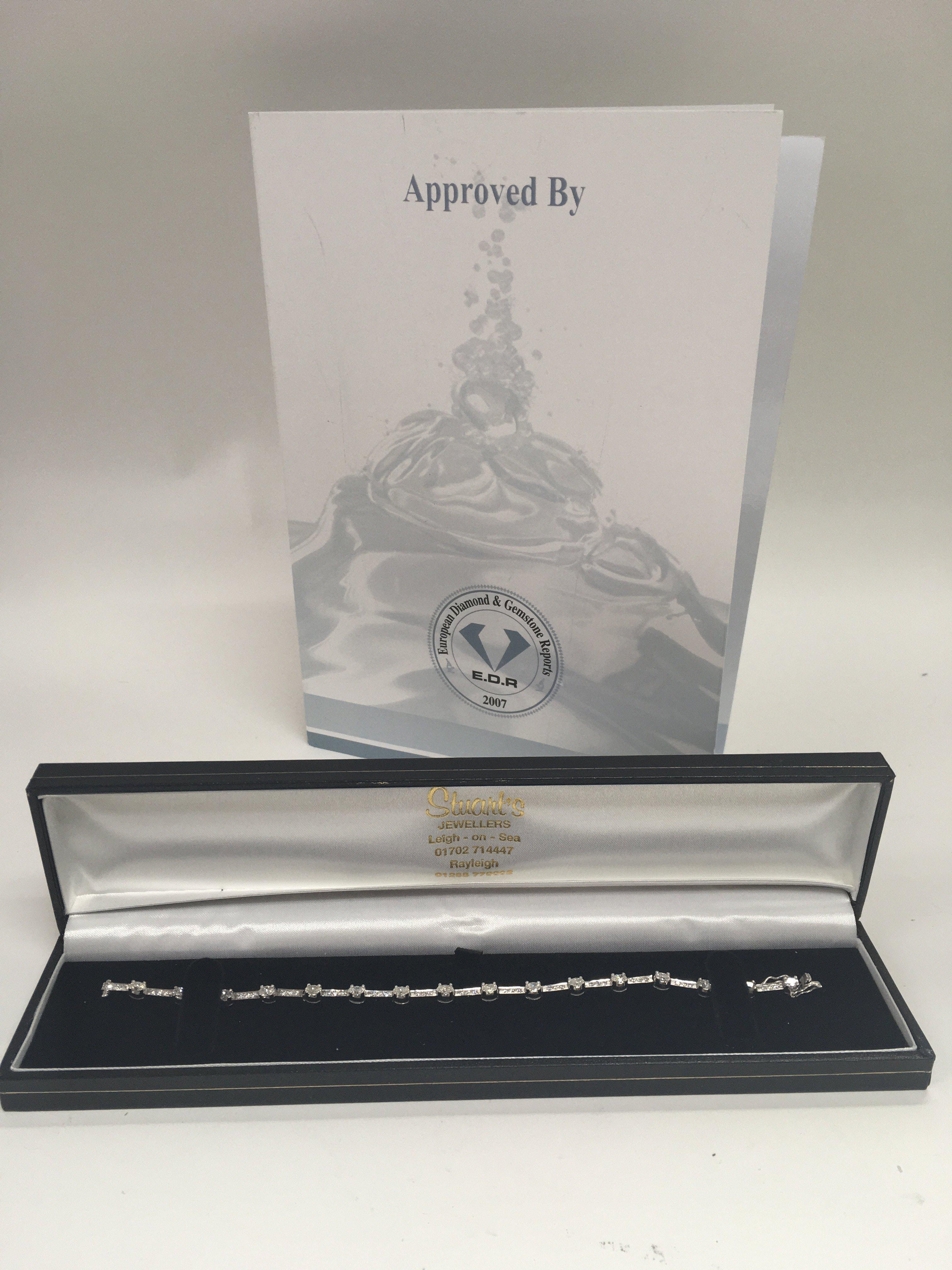 A natural diamond set line bracelet with a certificate. Set with oval and round brilliant cut diamonds, total approx diamond weight 2.80cts. Graded G-H/SI.