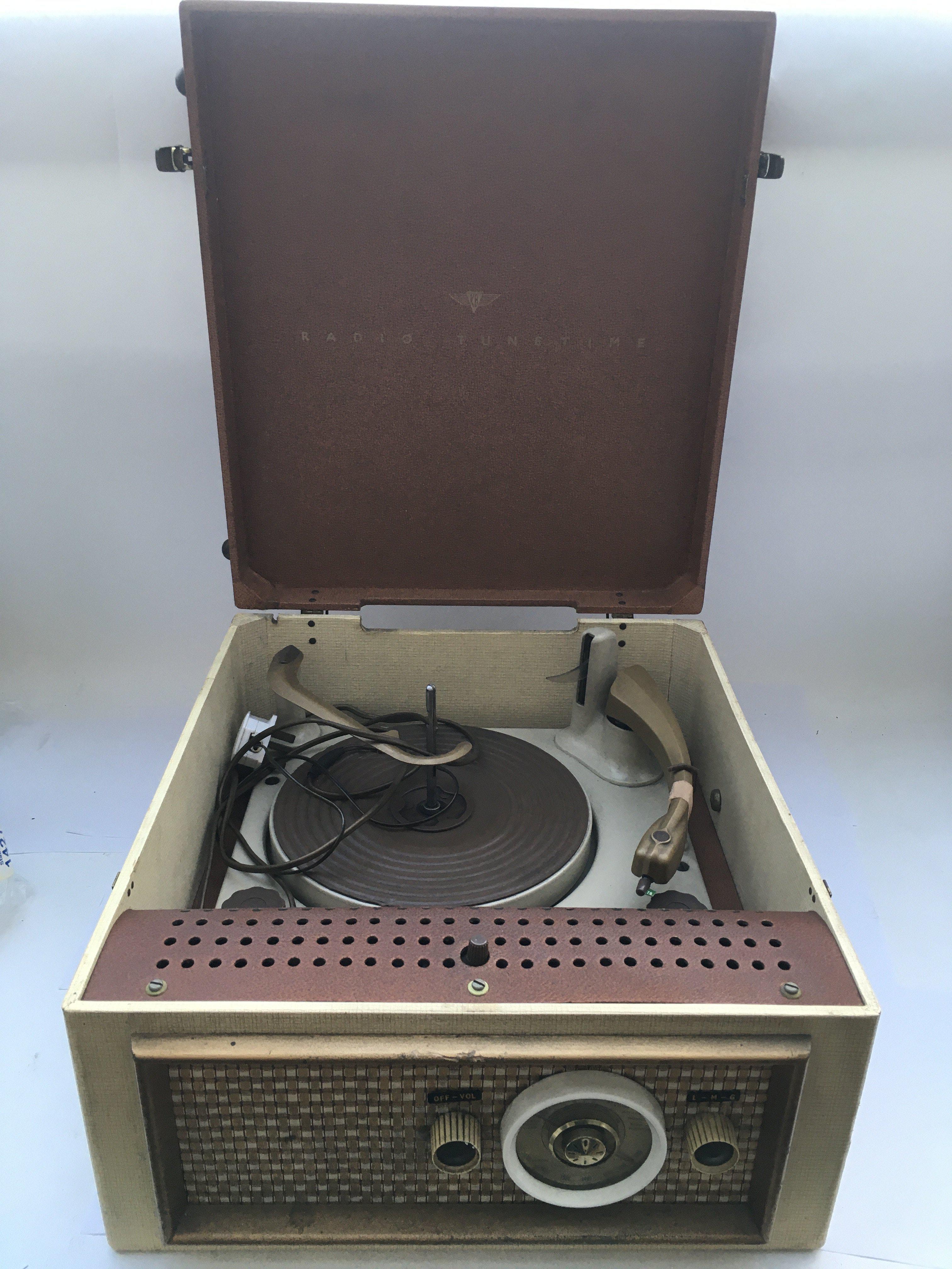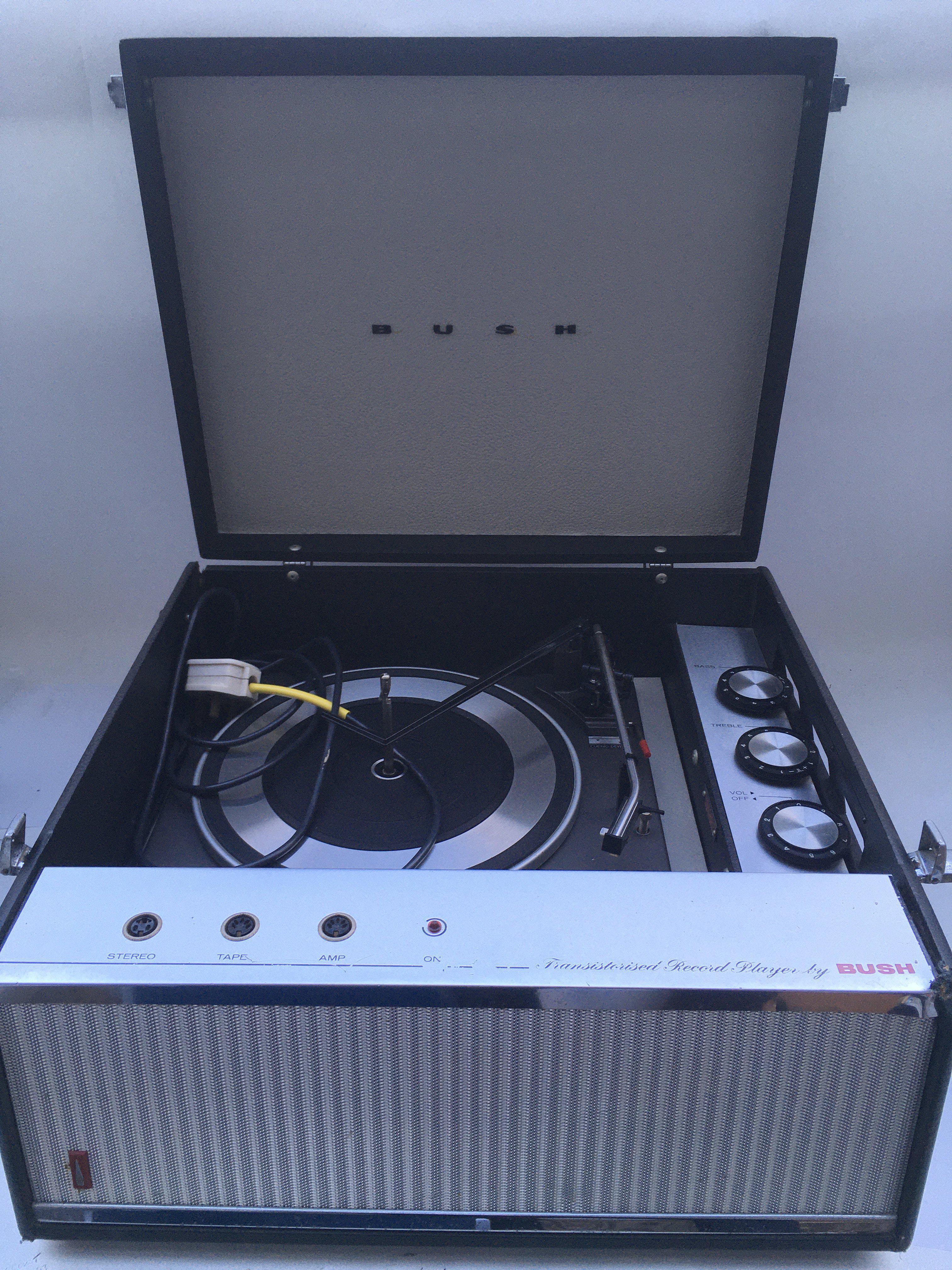 Two vintage portable record players comprising a circa 1960s Bush example and a KB radio tune time model (2).