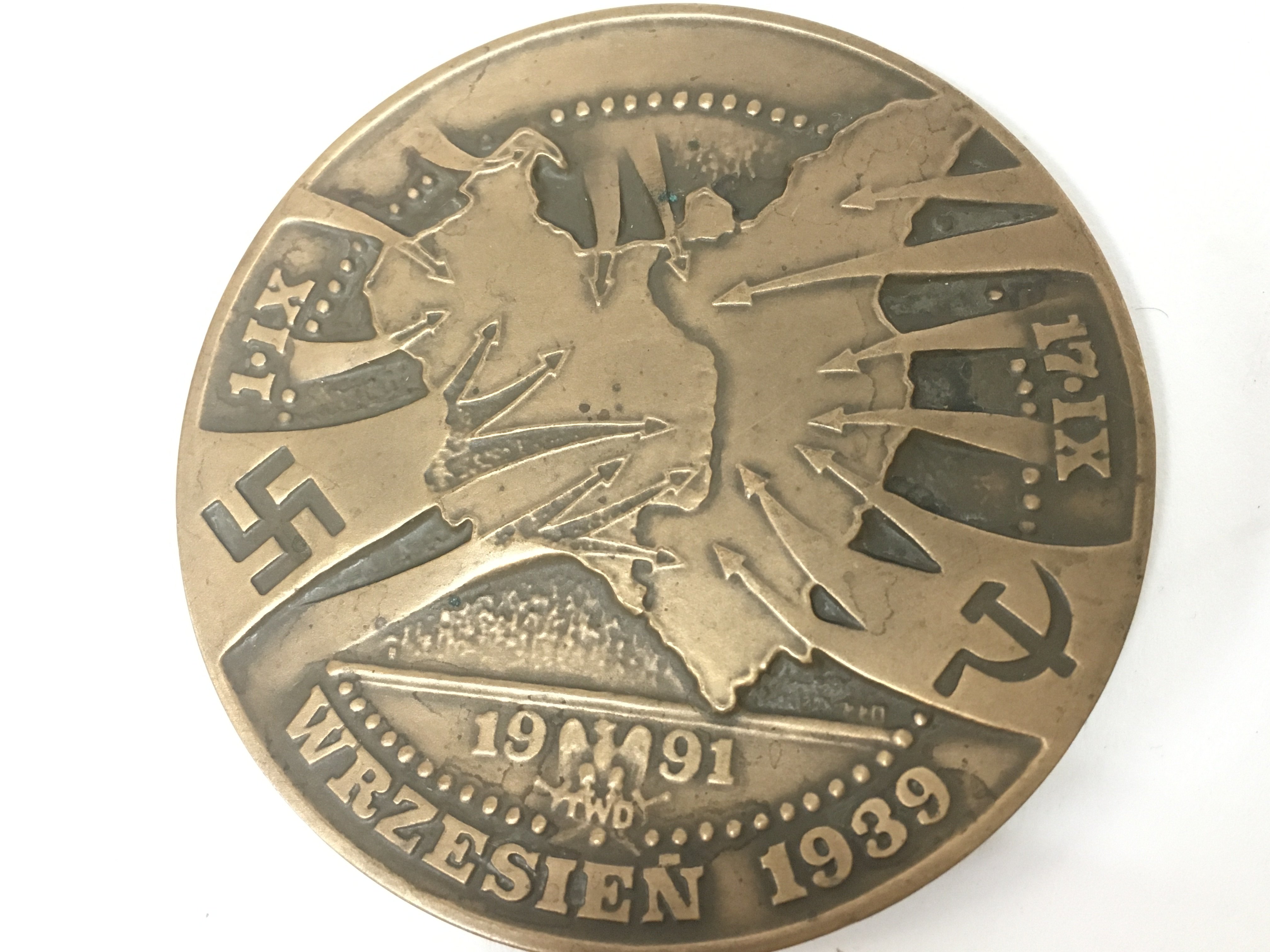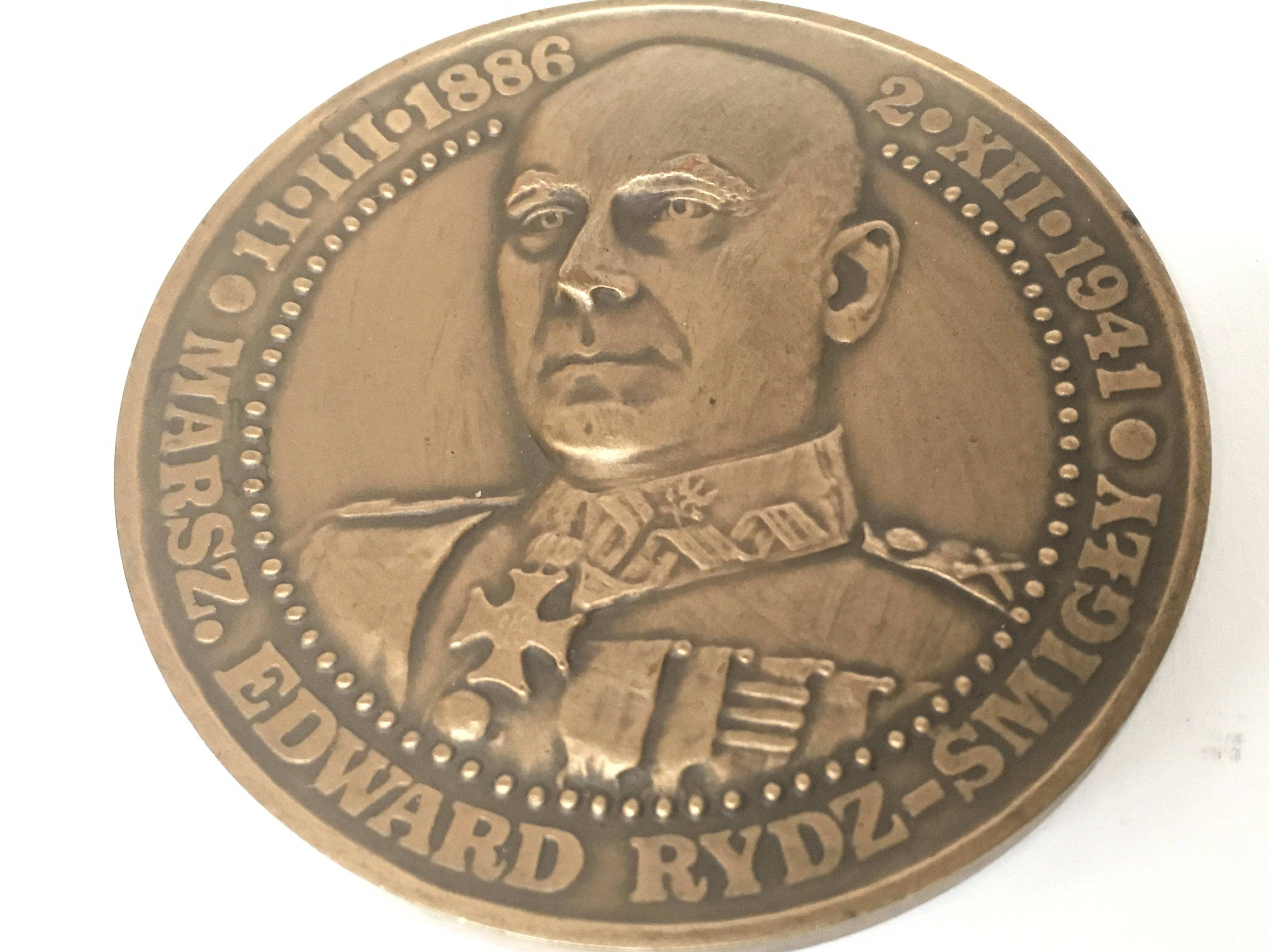 A 1991 Commemorative Polish Bronze Medal for Marshal Edward-Rydz-Smigly, Political Leader tasked to organise the resistance to the German Invasion in 1939, 70mm Diameter, Weight 132.74 Grams. Postage category A