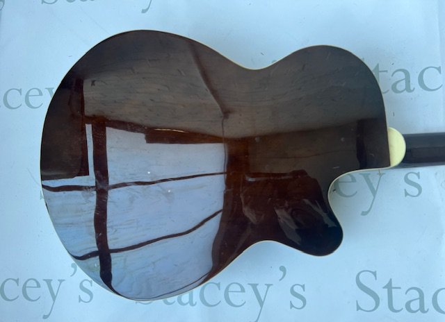 A left handed Eastcoast Electro Acoustic Guitar with inbuilt pickup and preamp. In good overall condition with some light wear to the back and edge wear to binding. No Case