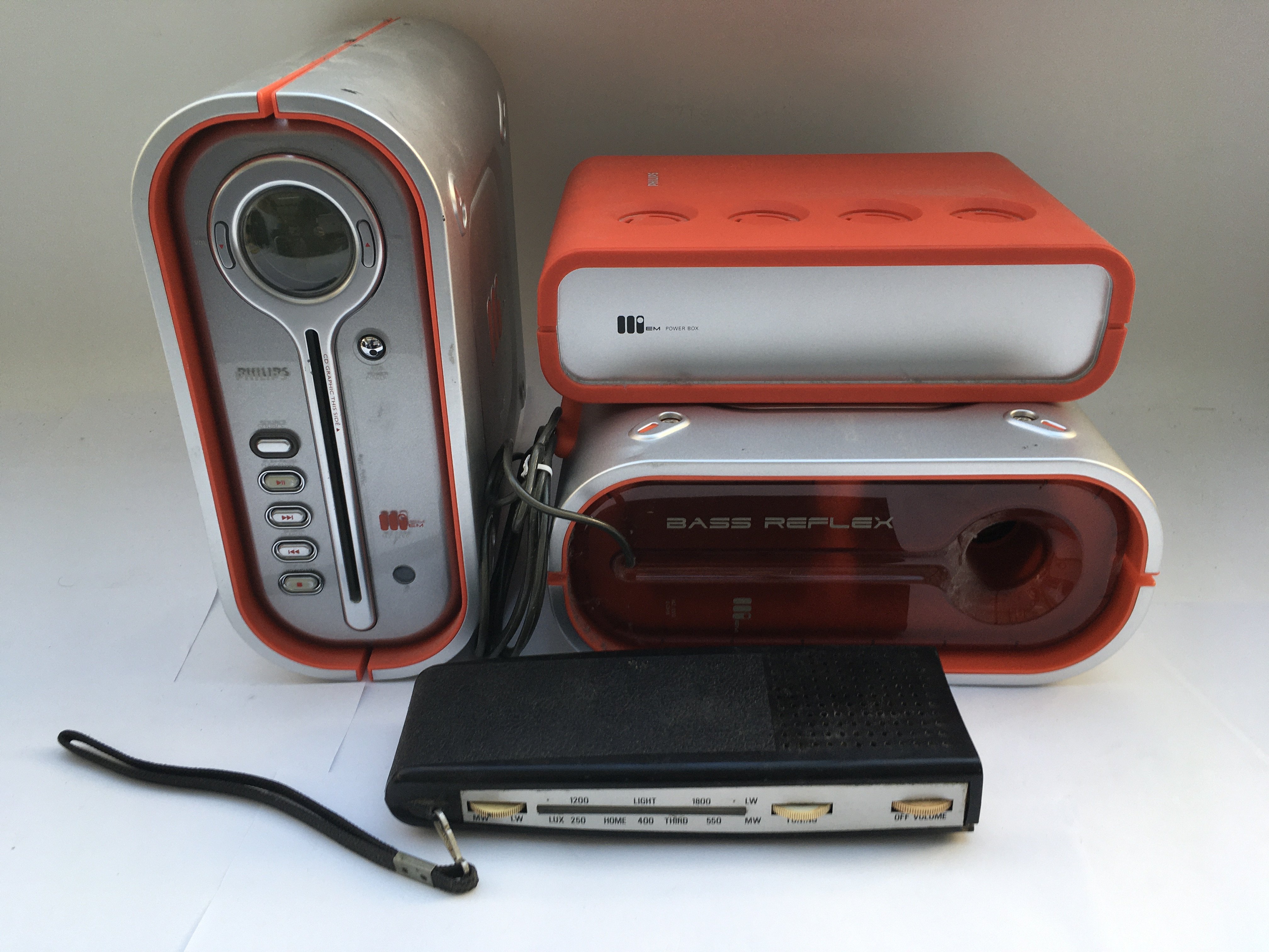 A Steepletine SRP025 record player, a Philips EM micro system etc.